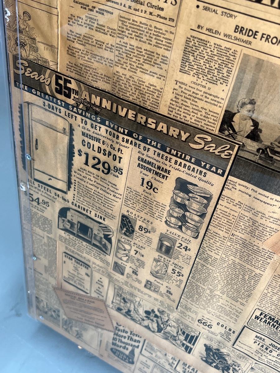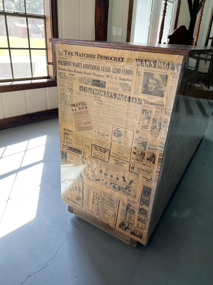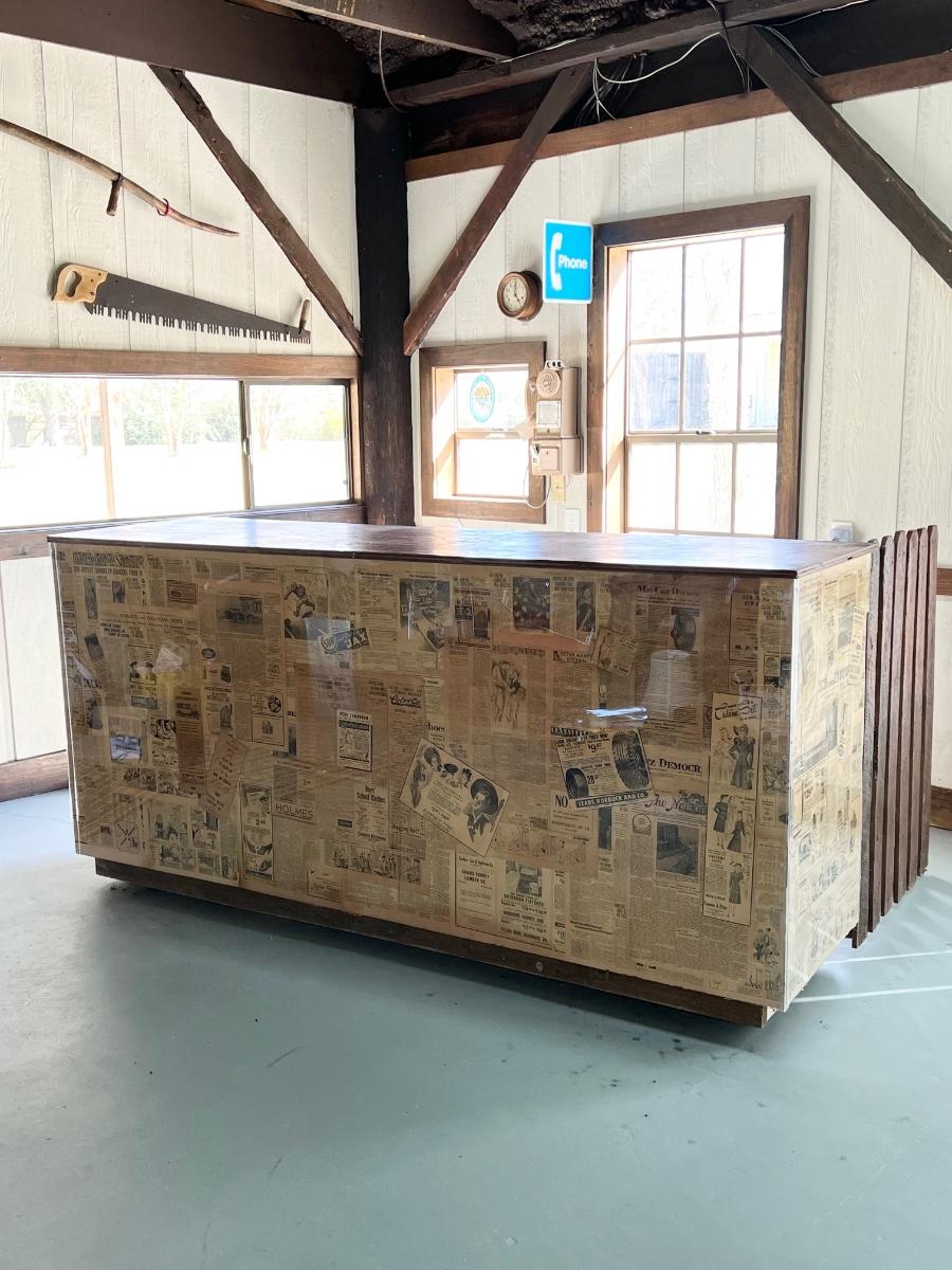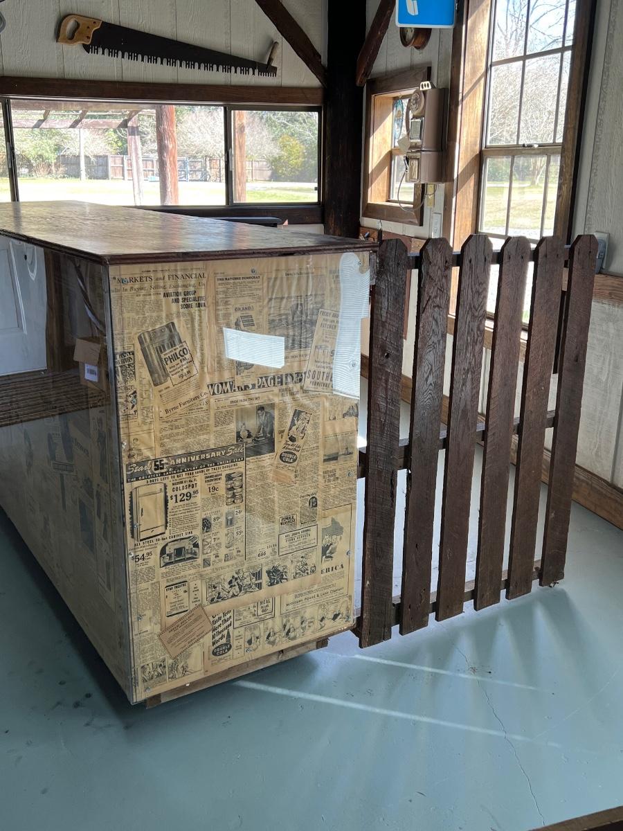 Wood Bar Wrapped In 30’s & 40’s Authentic News Papers