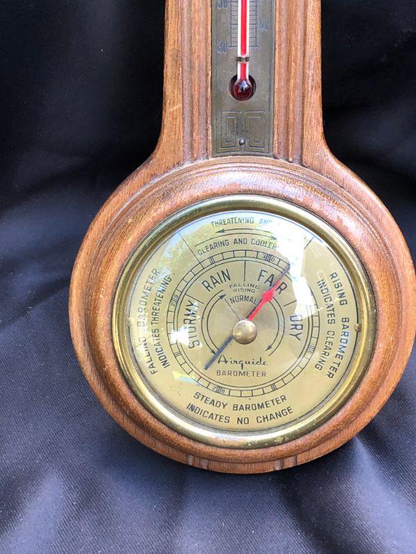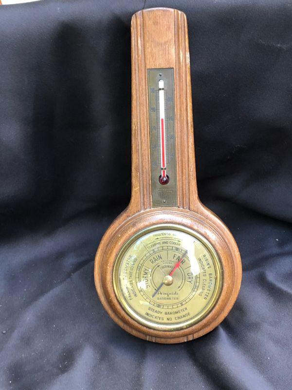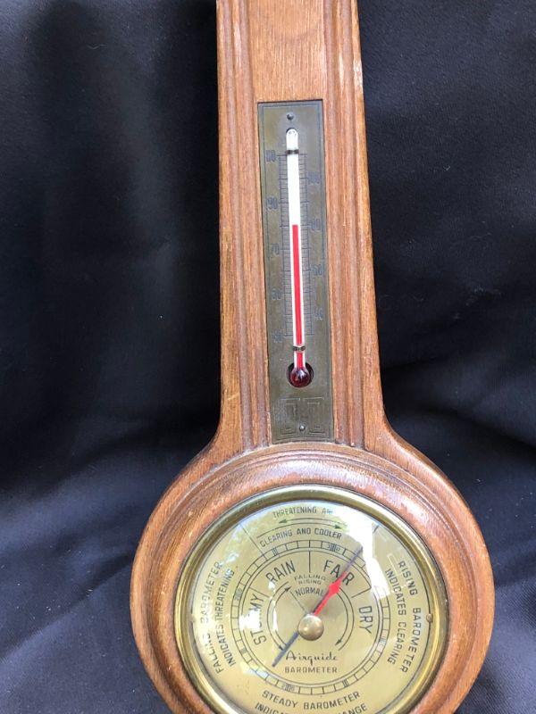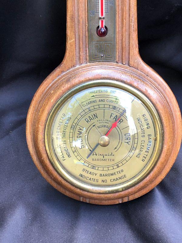 Vintage Air Guide Wood Brass Wall Mounted Barometer/ Thermometer. 12"