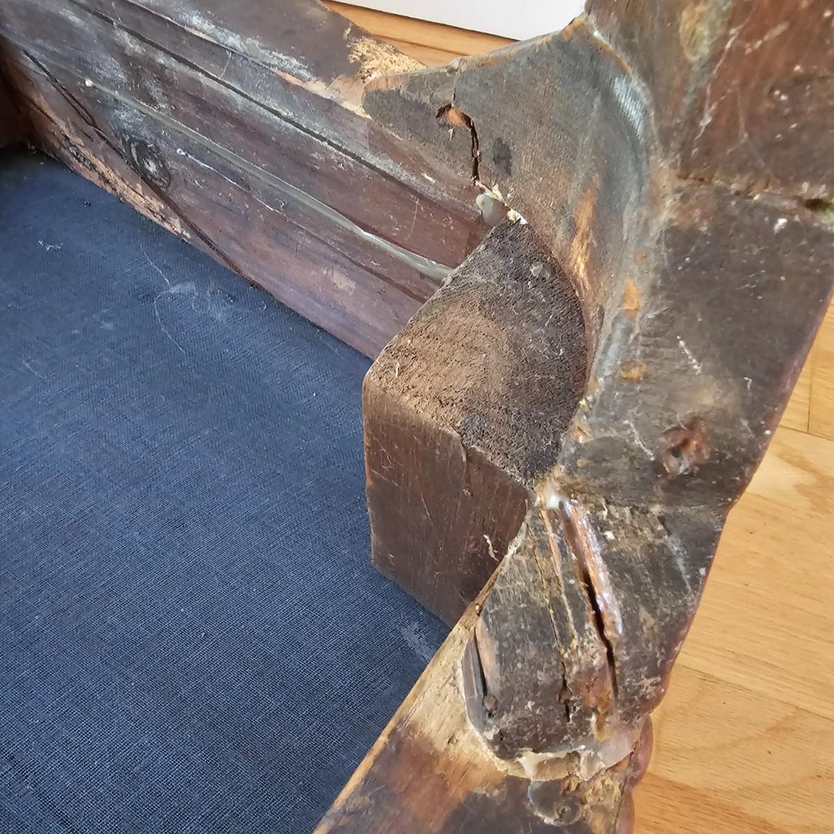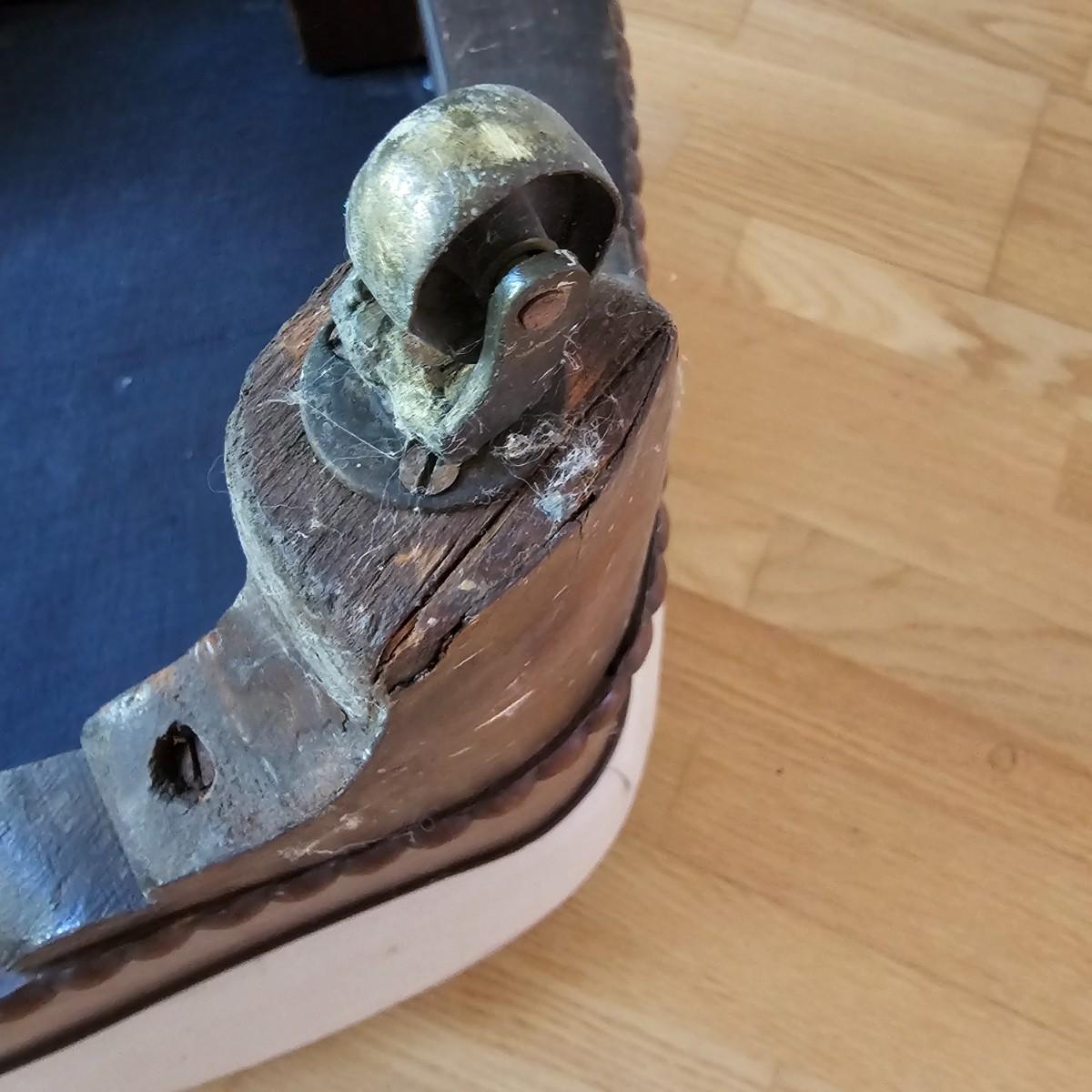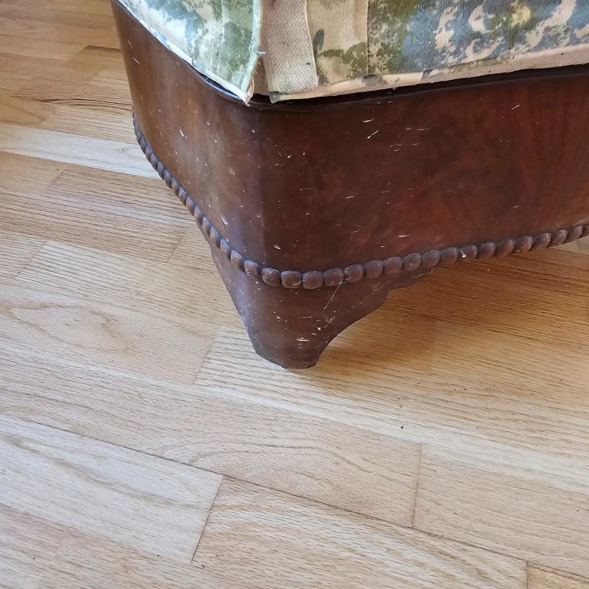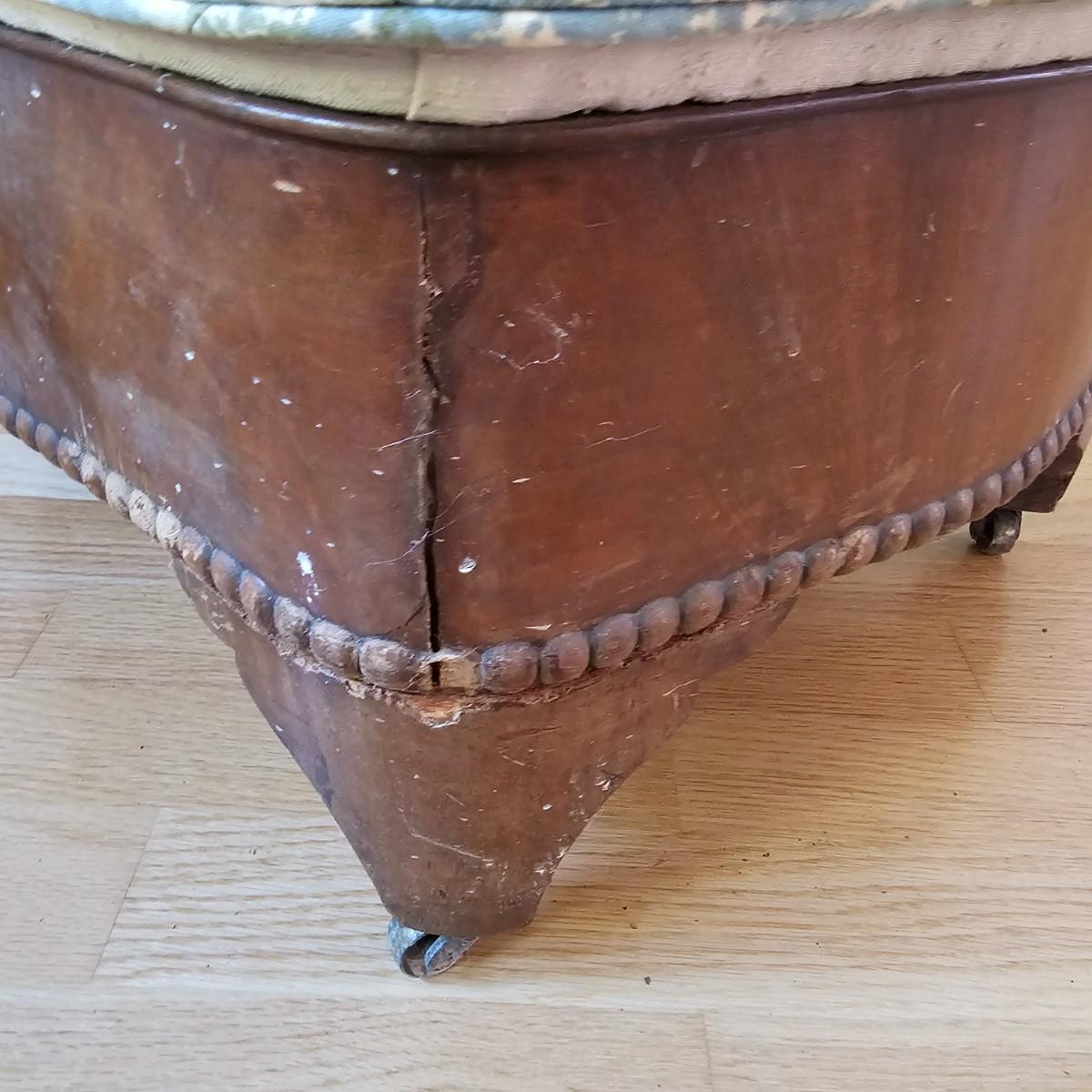 Square shape ottoman with needlepoint top and wood base. Seat is adorned with flowers and background, also includes a slip on cover piece. Ottoman measures 21.5" x 20" x 18"H. Wood base has four corner legs with metal wheel casters. Some of the legs appear to have had repair. See photos for details. Local pickup only.