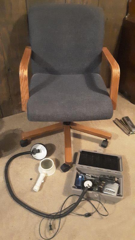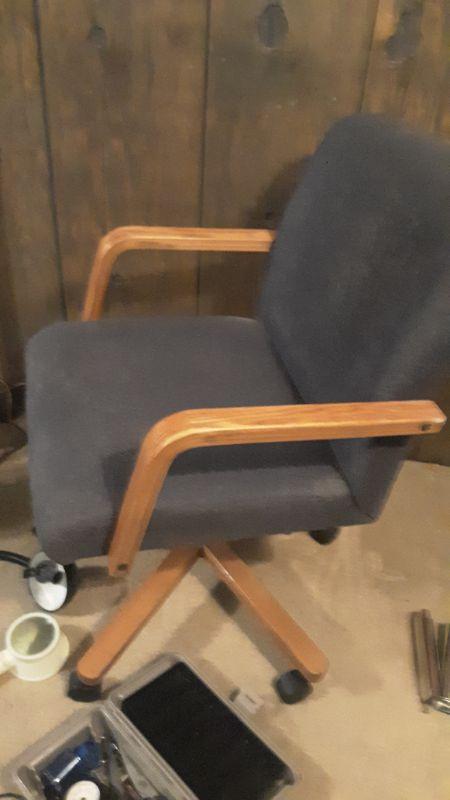 LOT 121 WOOD BASED DESK CHAIR & OFFICE SUPPLIES