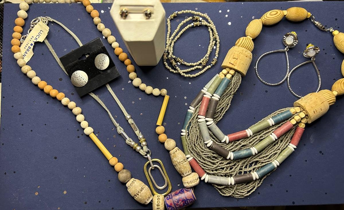 The earrings are clip ons & stamped pewter. The dangles are also clip ons.