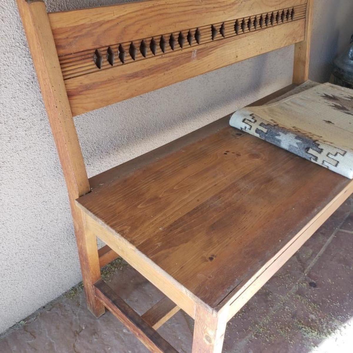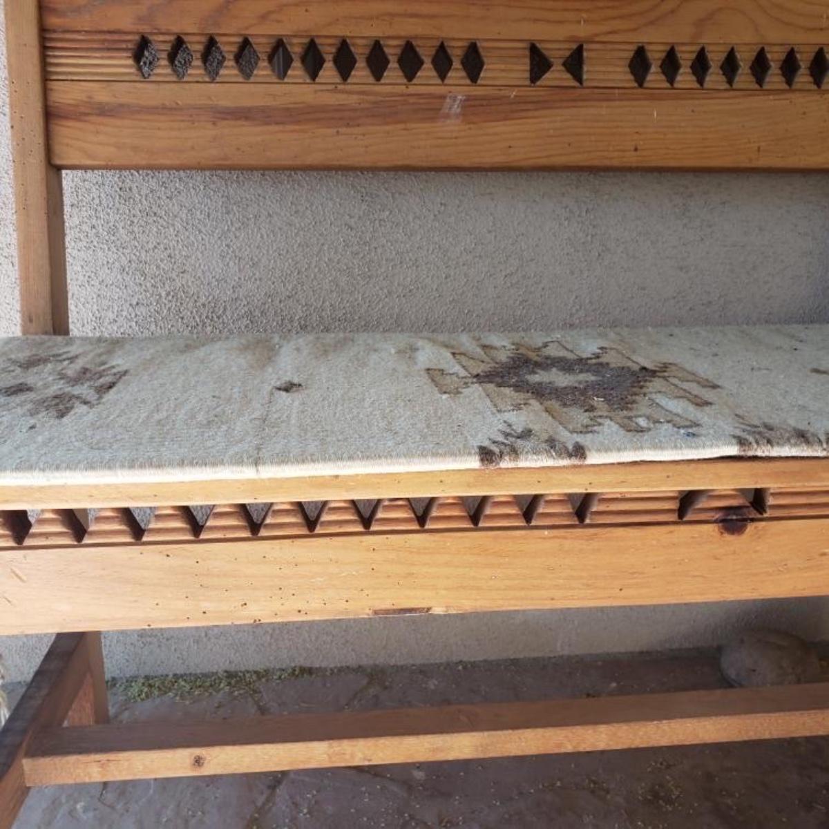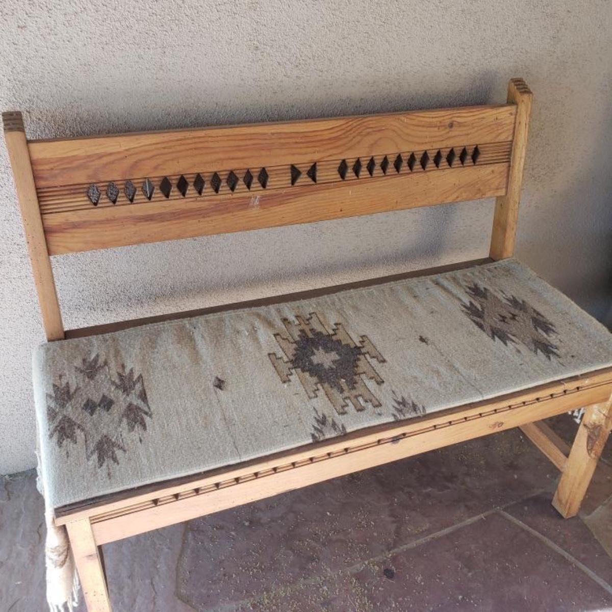 Mexican Wool Blanket. Very nice southwest pine bench, in great condition. 43” L x 34” H x 18” D