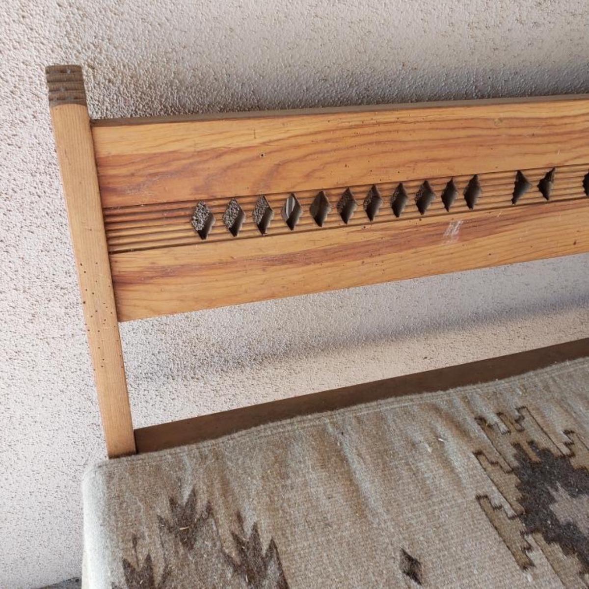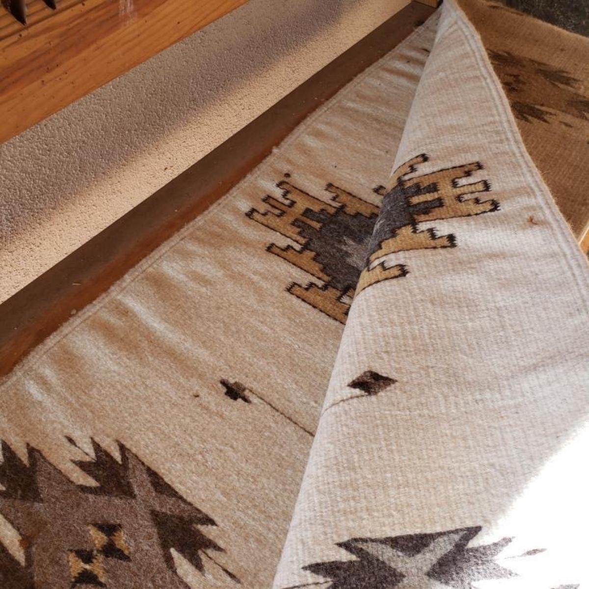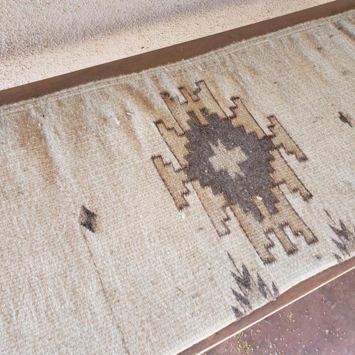 Mexican Wool Blanket. Very nice southwest pine bench, in great condition. 43” L x 34” H x 18” D