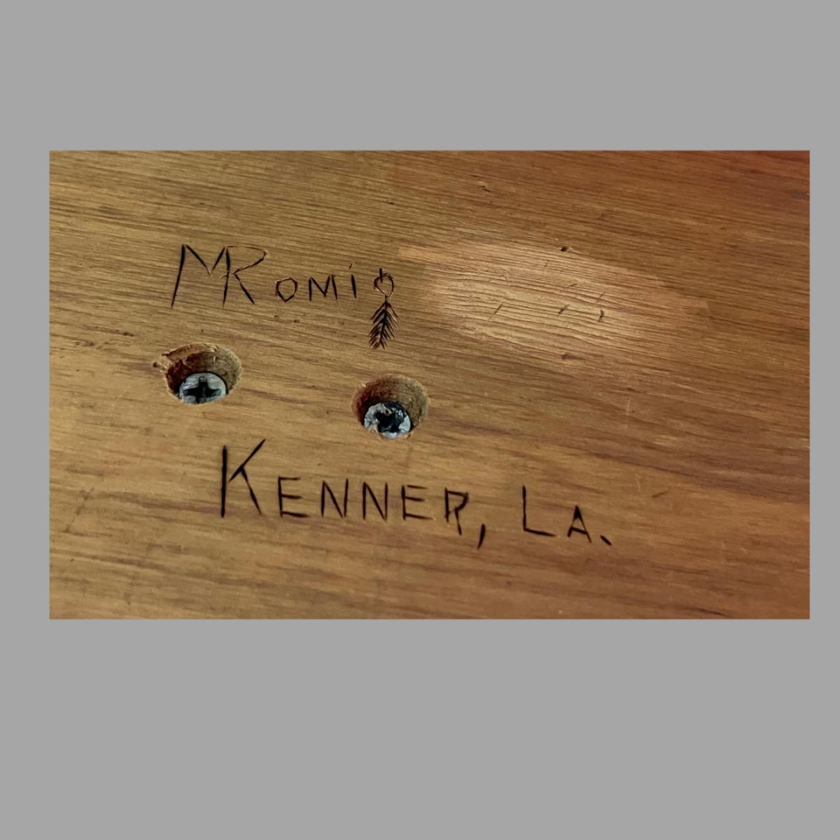 This piece is a stunning wood sculpture signed by M Komi of Kenner. It measures 15 x 21