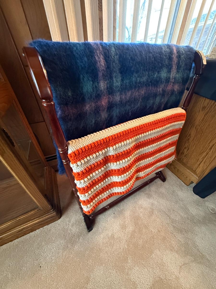 Wood Blanket Rack/Stand w/2 quilts/blankets as shown