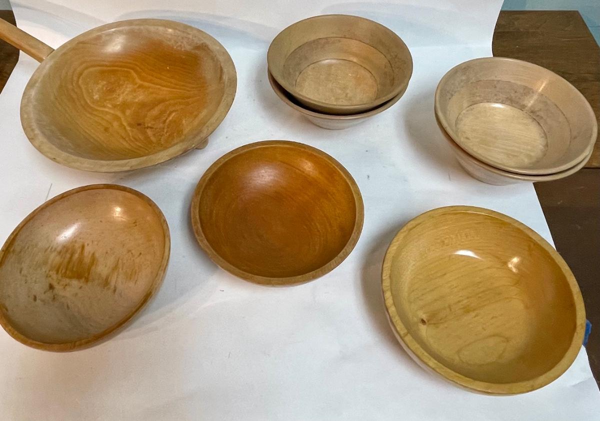 Lot of Wood Serving Bowls several types Chase Japan, Woodpiper, Etc.
