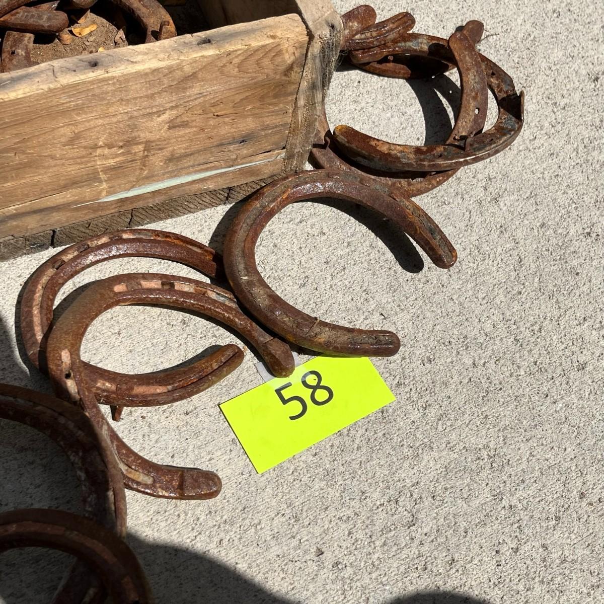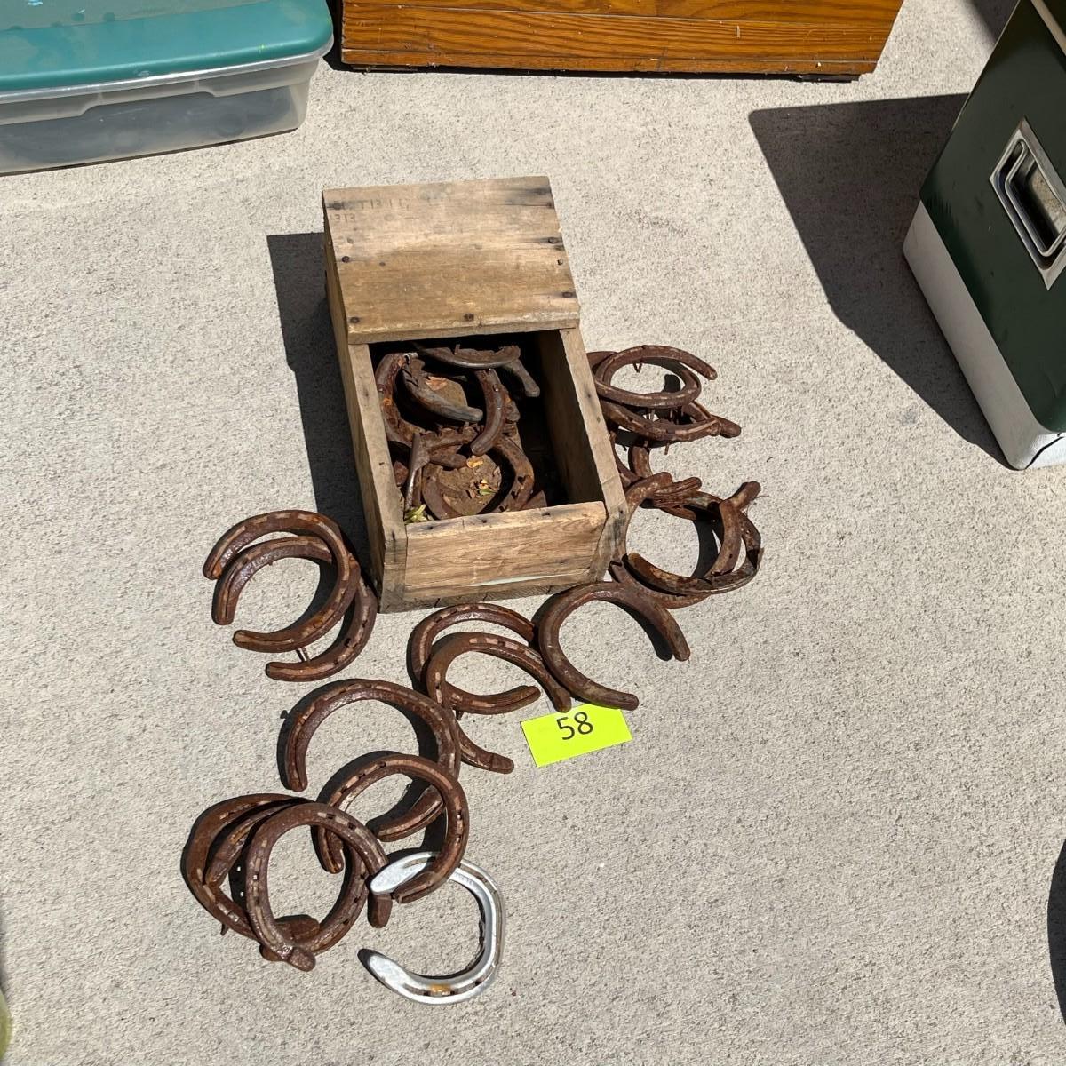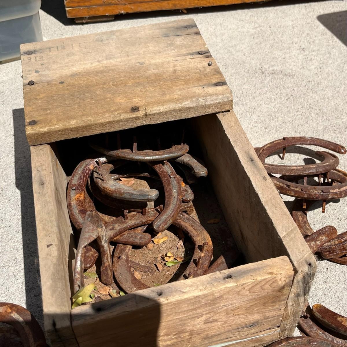 Wood Box full of horse shoes