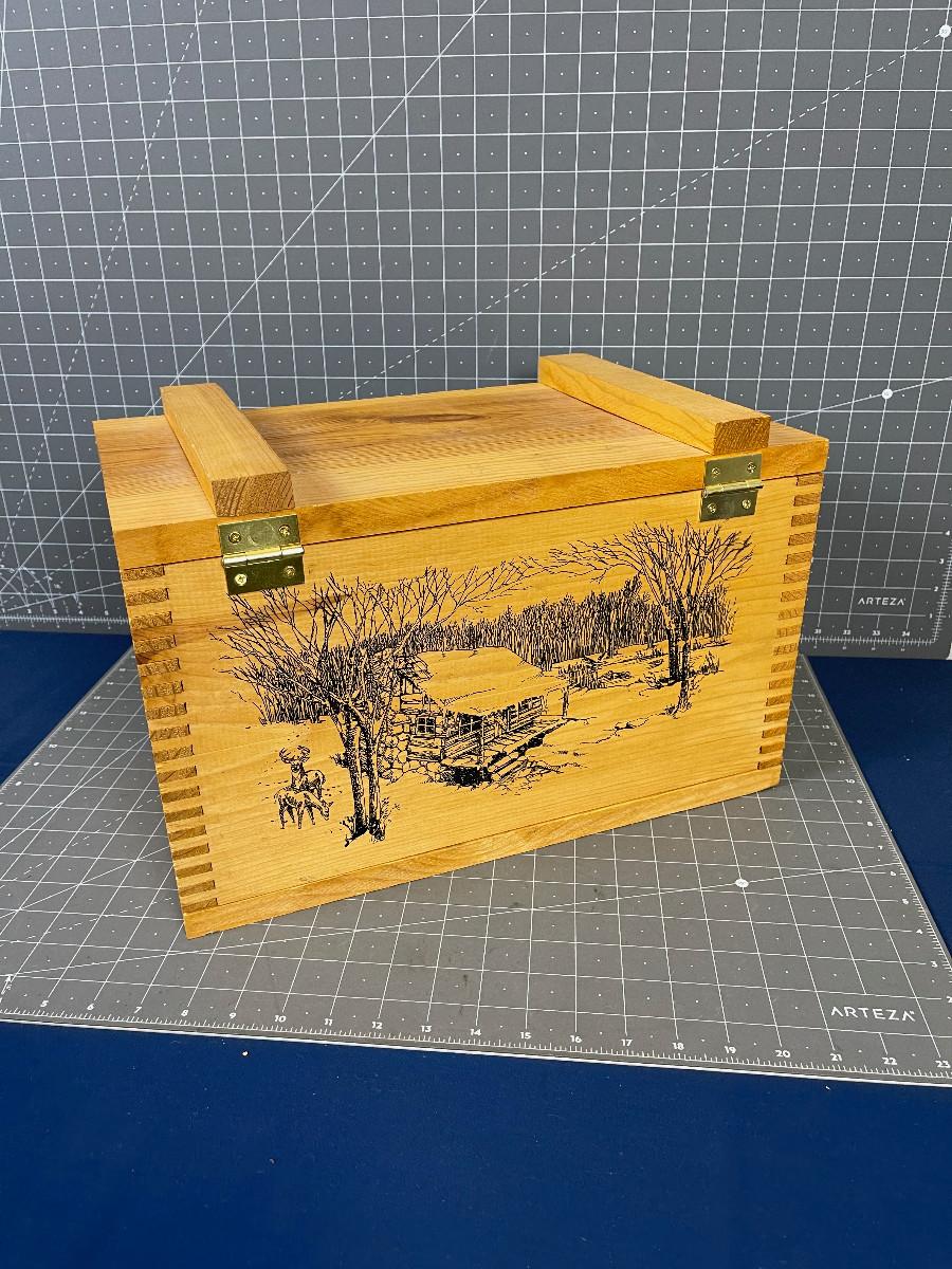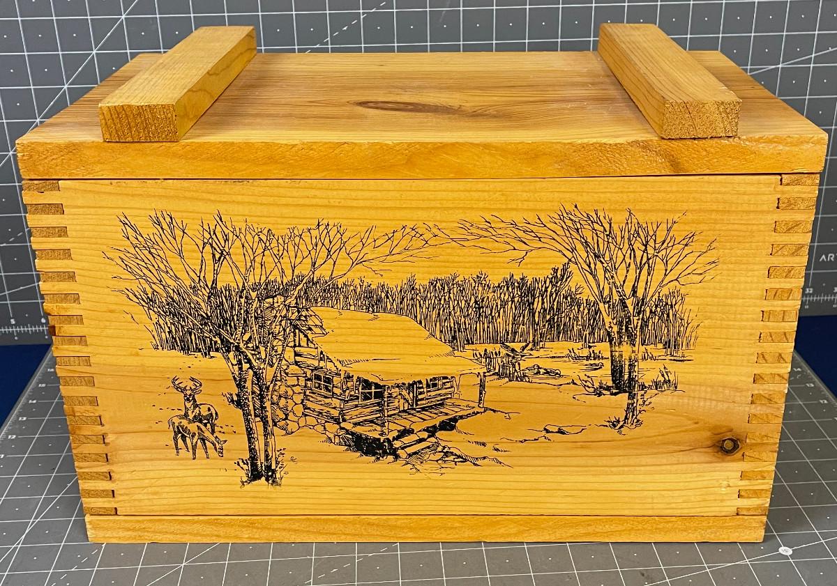 Wood Box with Etched Scene Cabin in the Woods