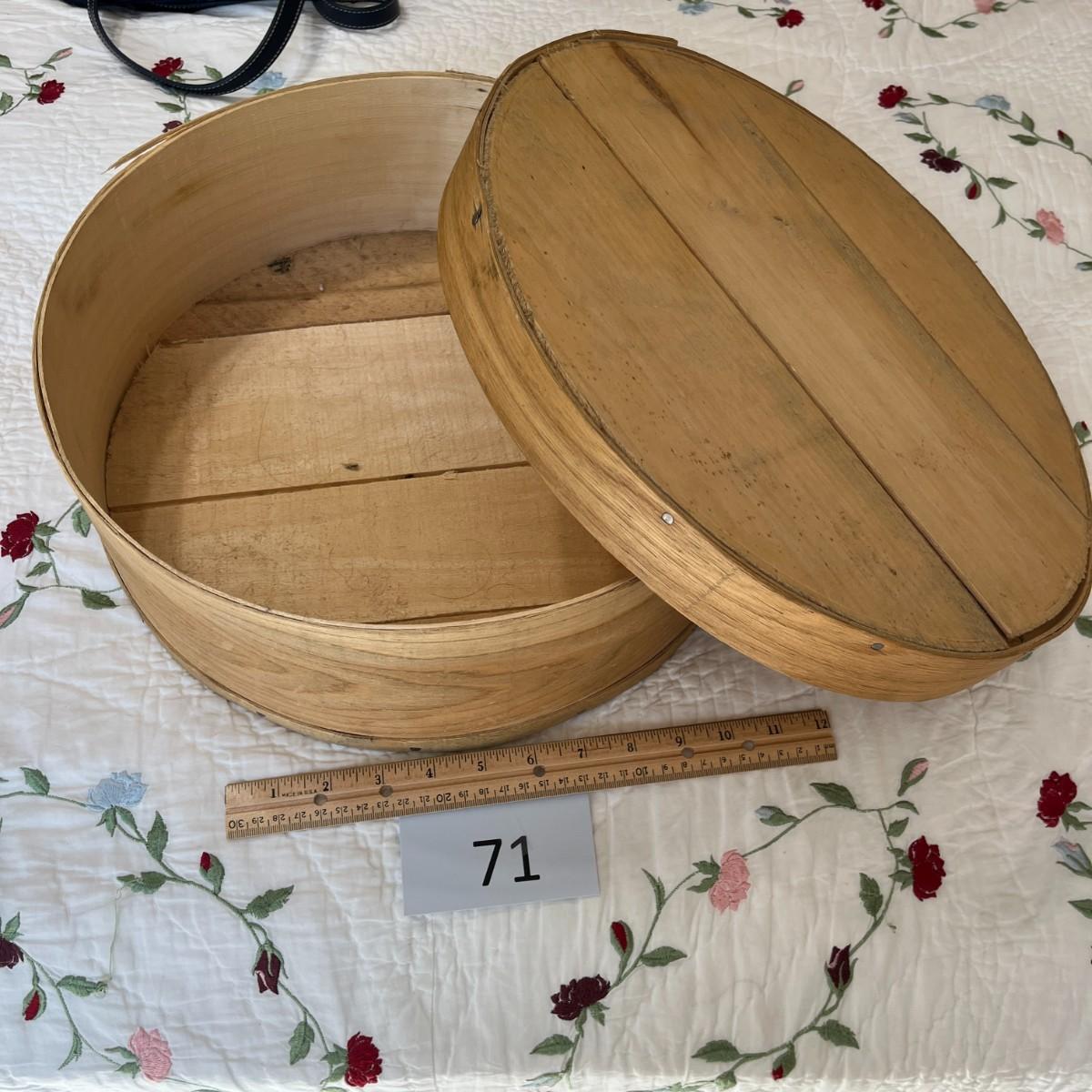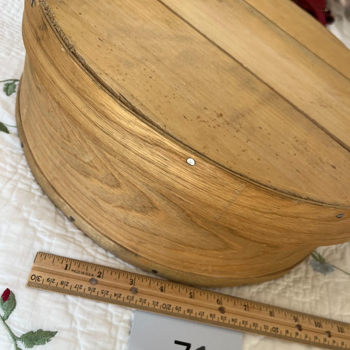 Round wood box with lid, Shaker style. Not sure if authentic.