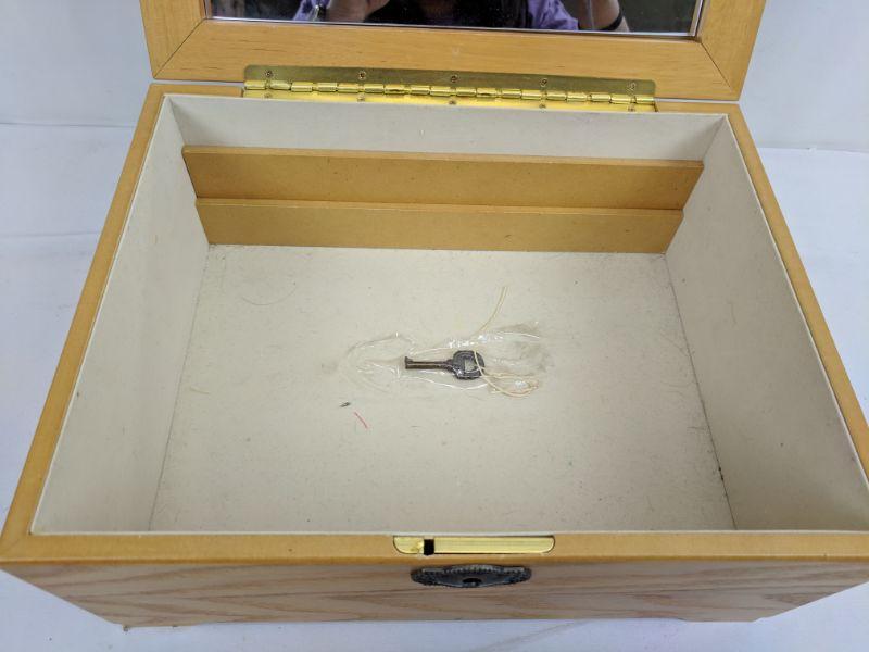Wood Box with Mirror, 13" x 10" x 6", Includes Key