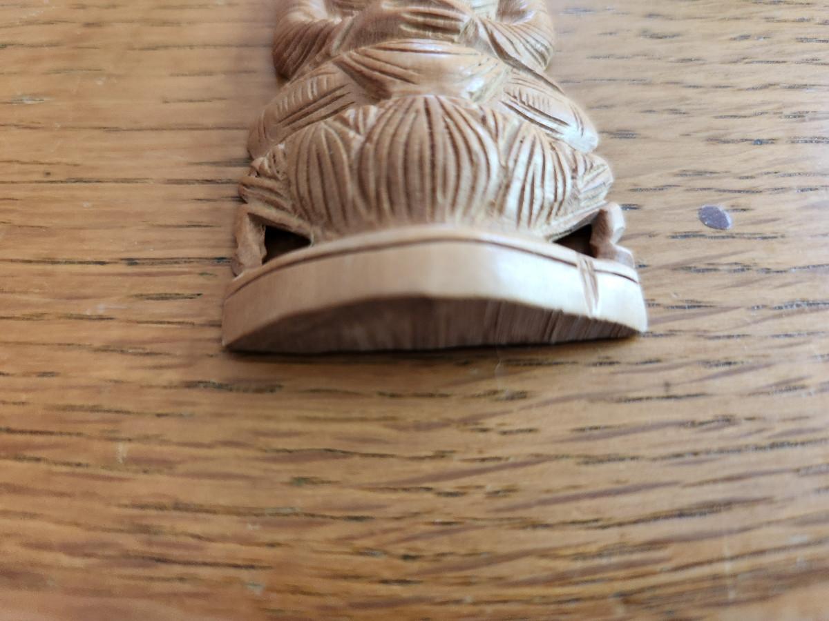 This auction lot is for a Wood Buddha Statuette. This small item was most probably a tourist prize, something small to have to remember a beloved trip to Southeast Asia or Indonesia. Wonderful souvenir or collector's item. Measures about 3-inches by 1.5-inches.