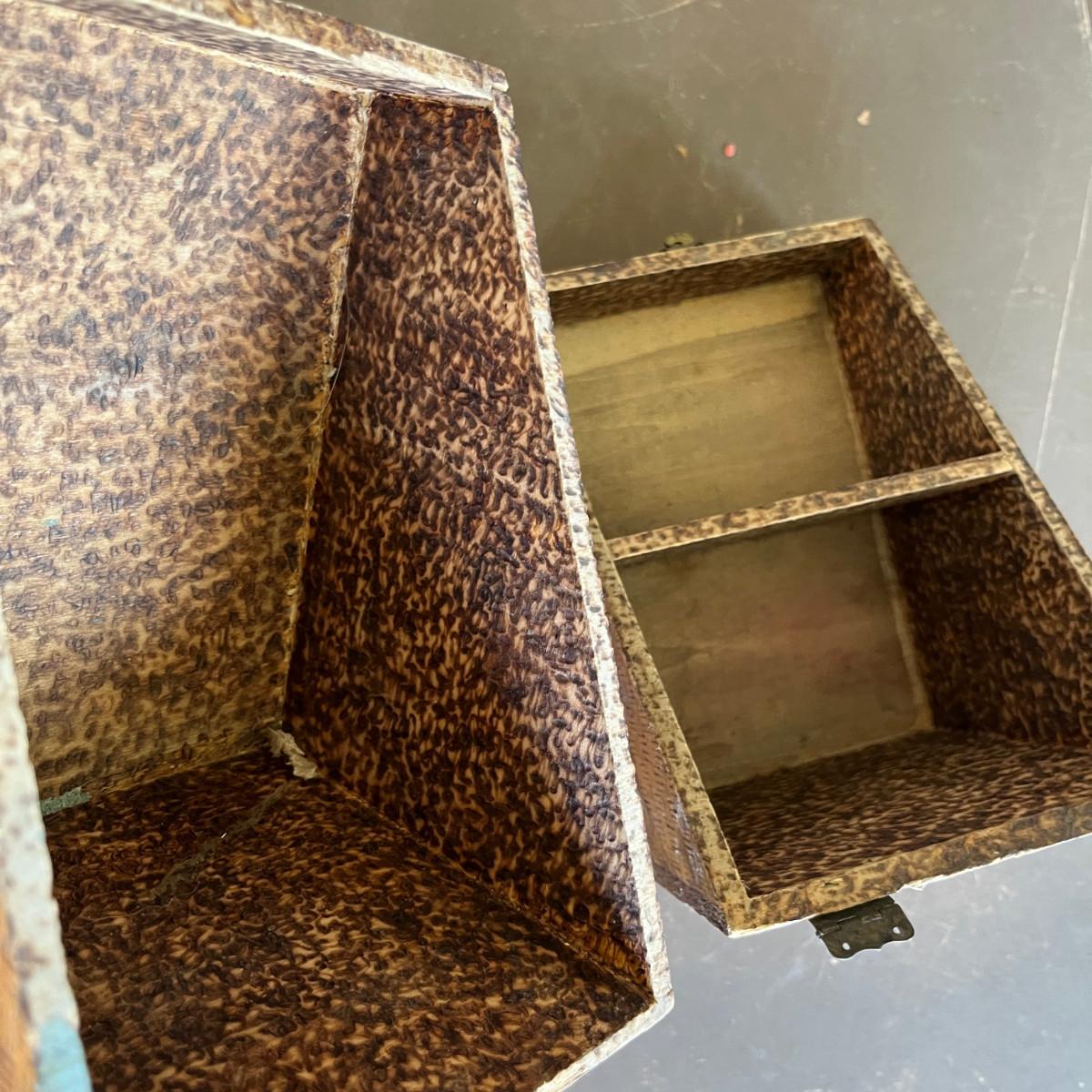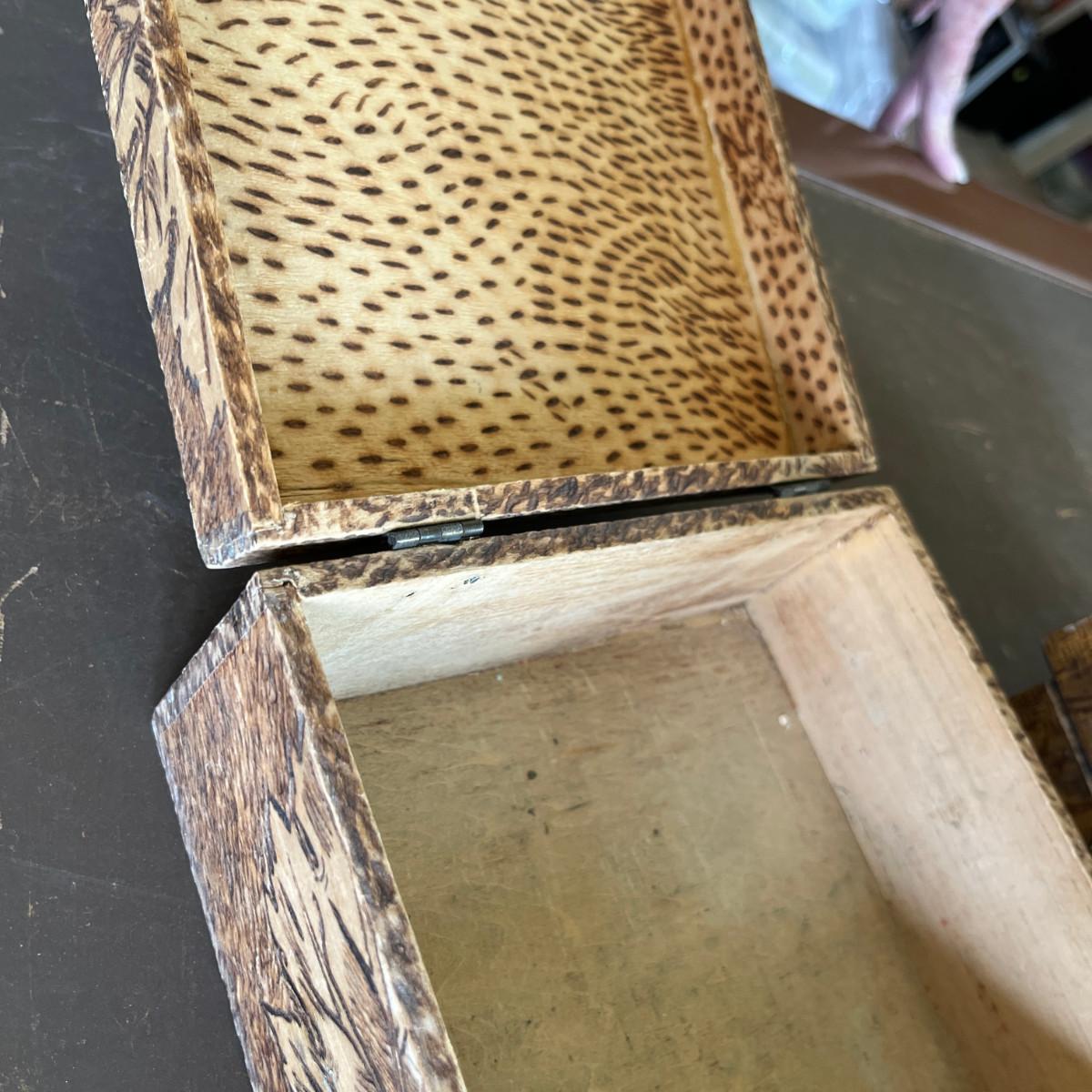 The angle cut box doesn't have hinges. Both quite old! Small sized.