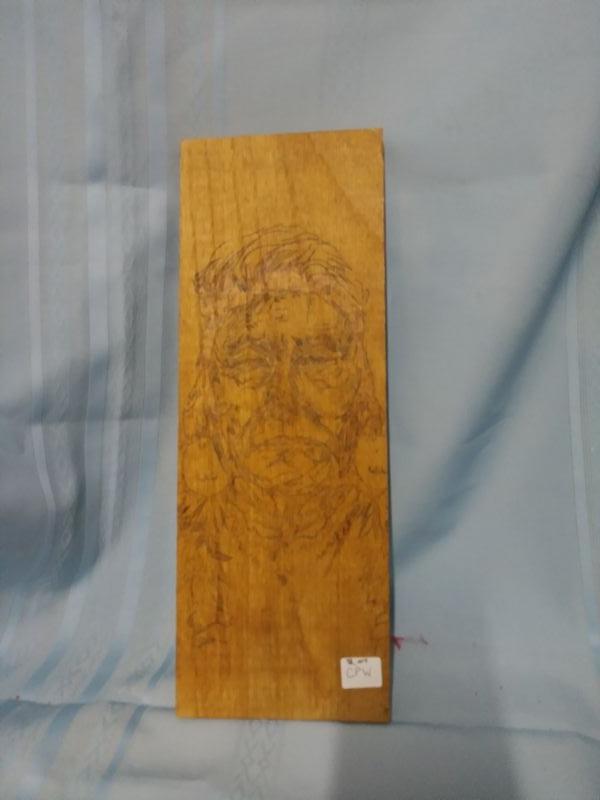 Wood Burned Native American Portrait 5"W x 13 1/2" H