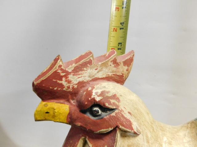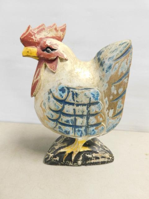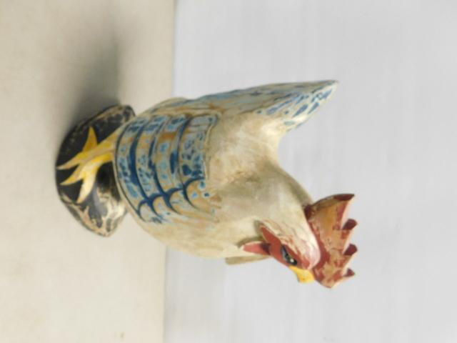 Wood Carved Blue Tone Rooster 13"