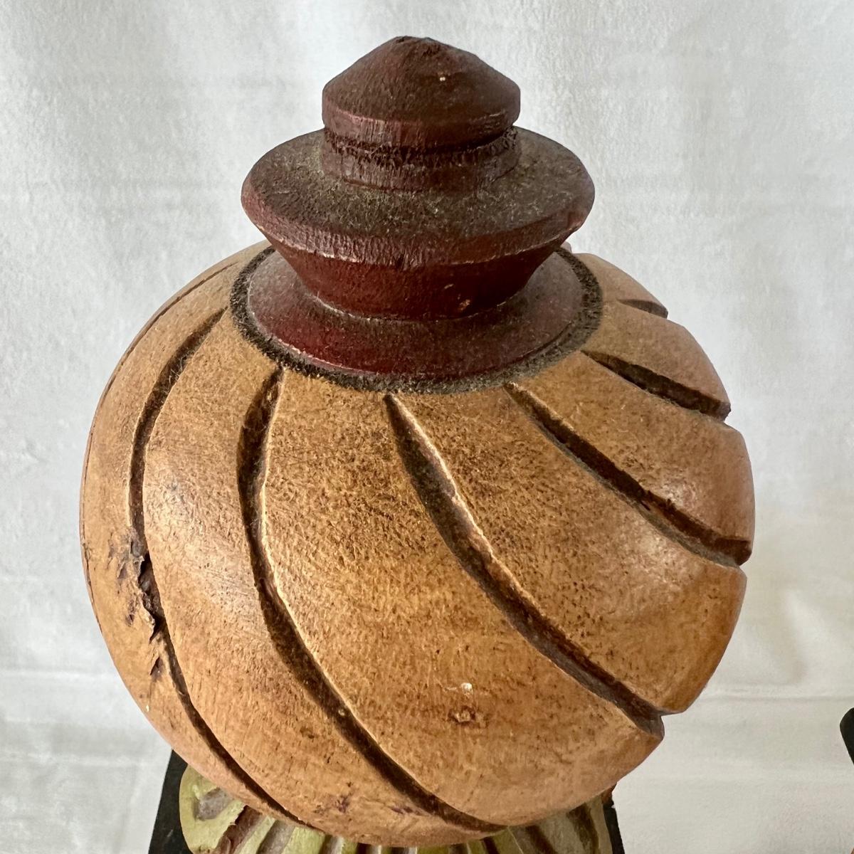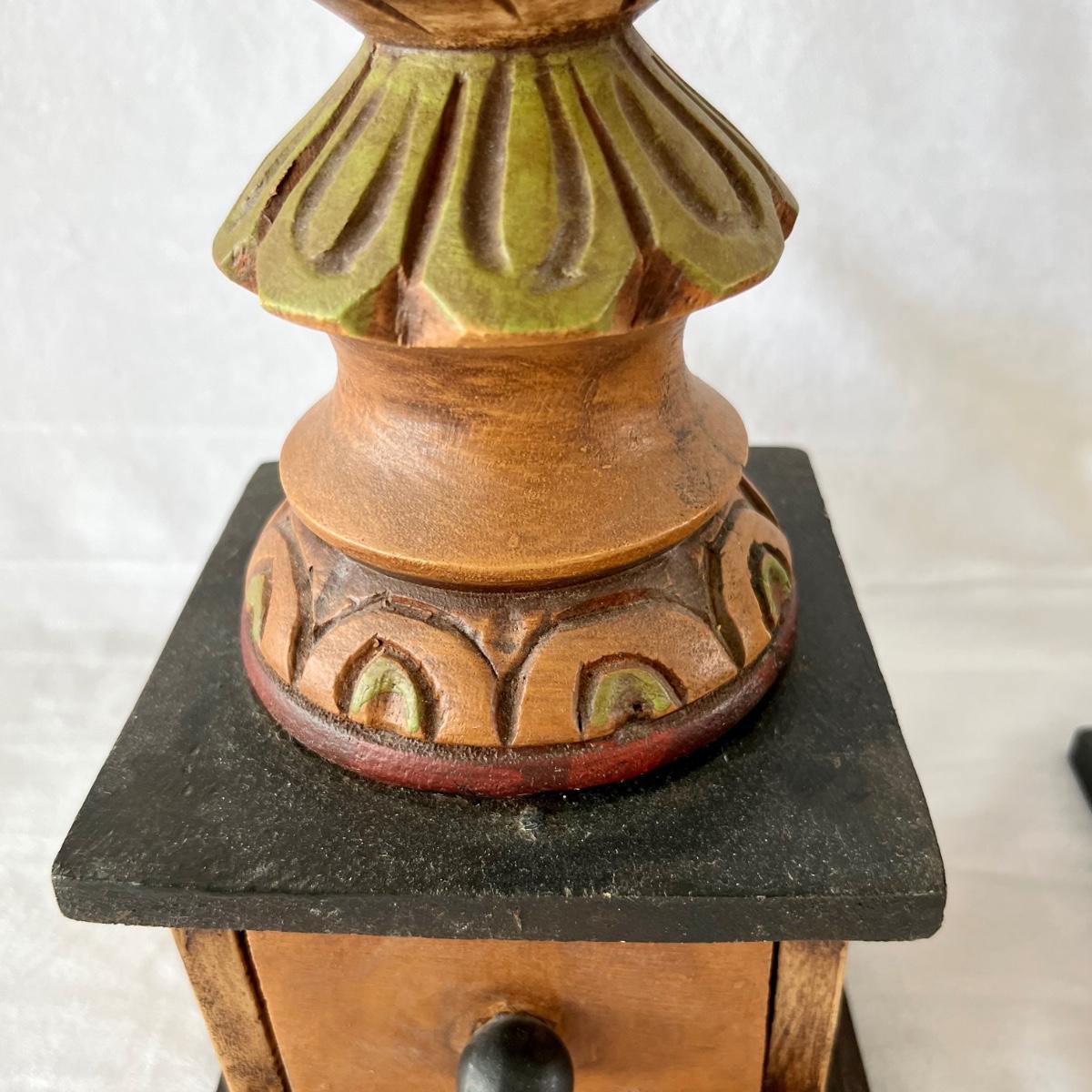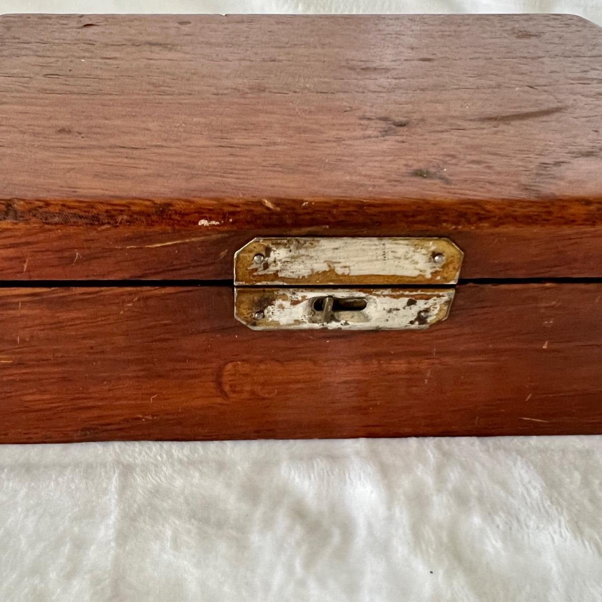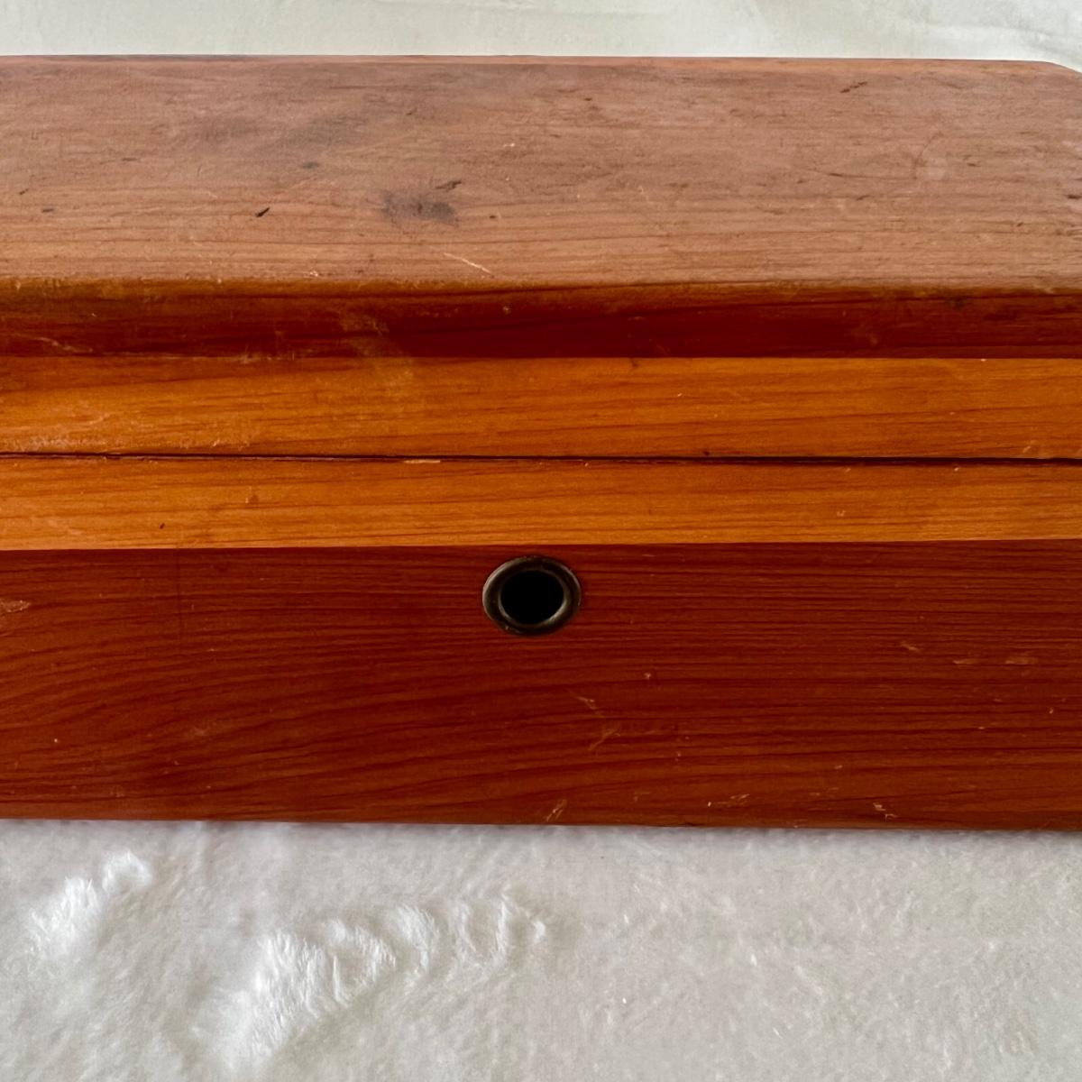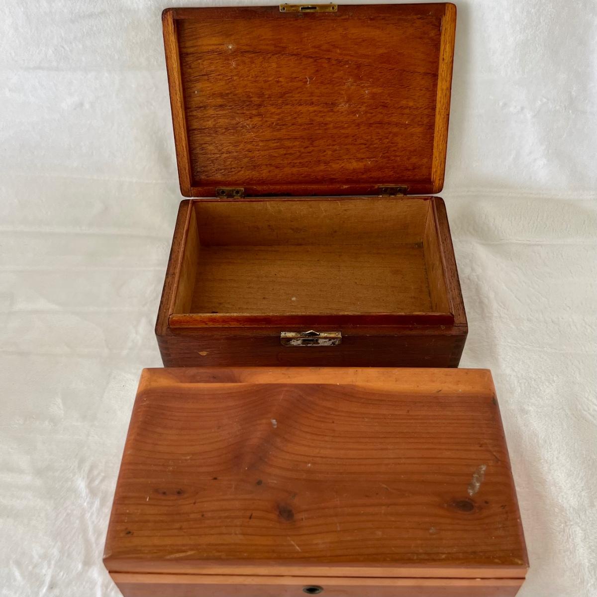 Two decorative wooden bookends with green & burgundy accents. Bookends meas. 15"h. Larger wood box meas. 9"x6"