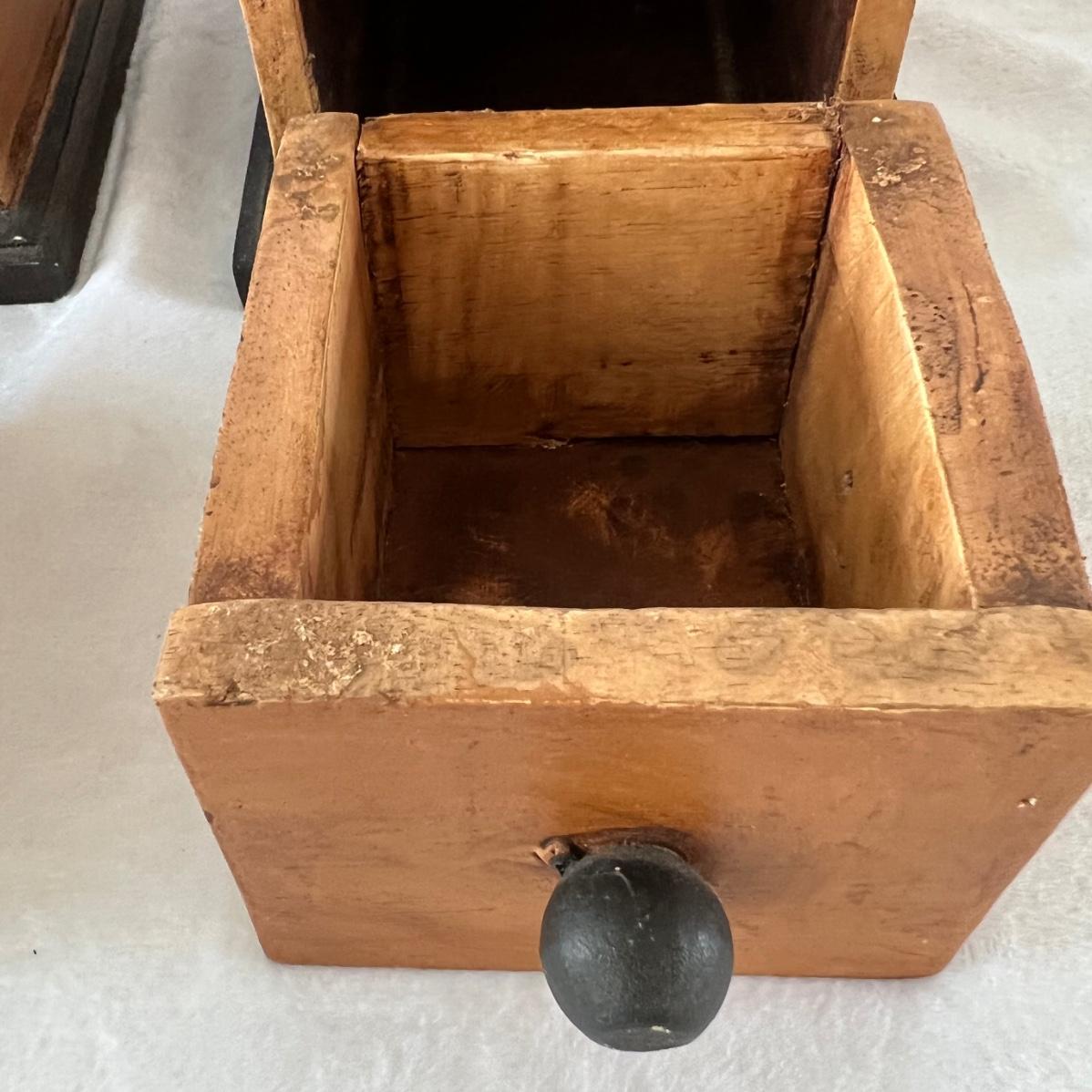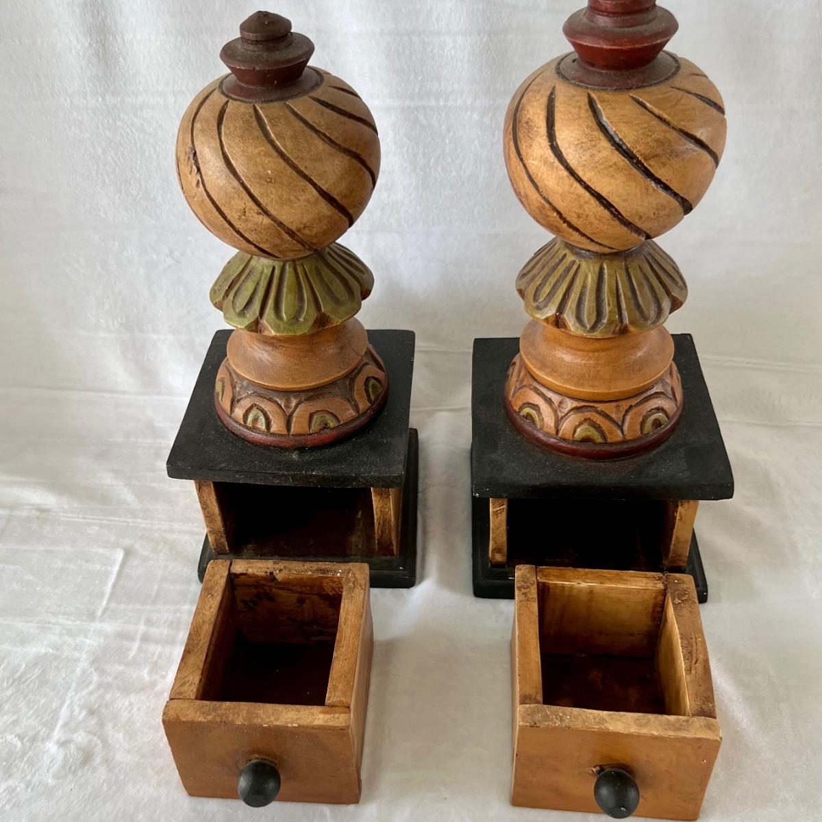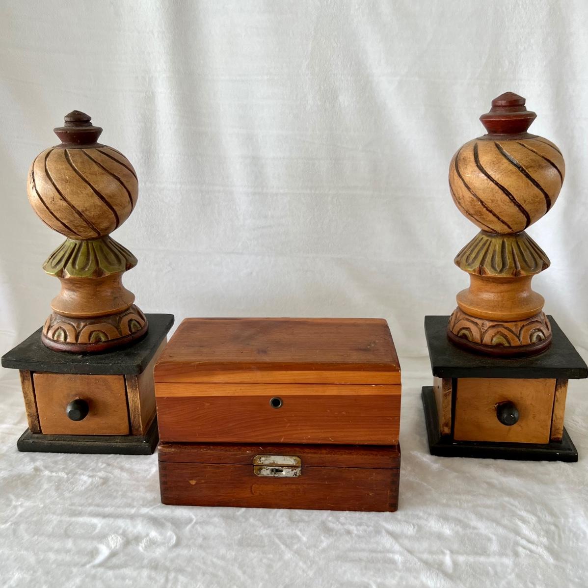 Wood Carved Bookends with Two Wood Boxes  (D-JM)