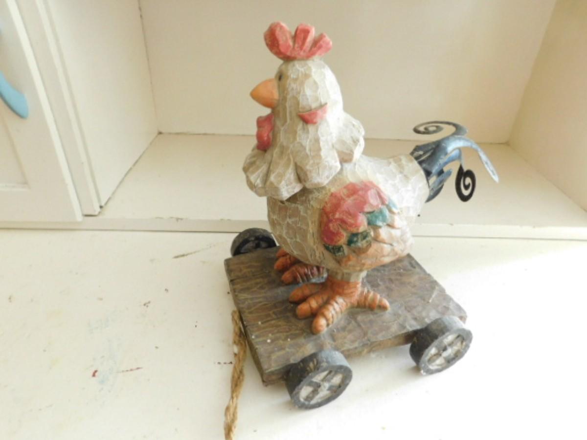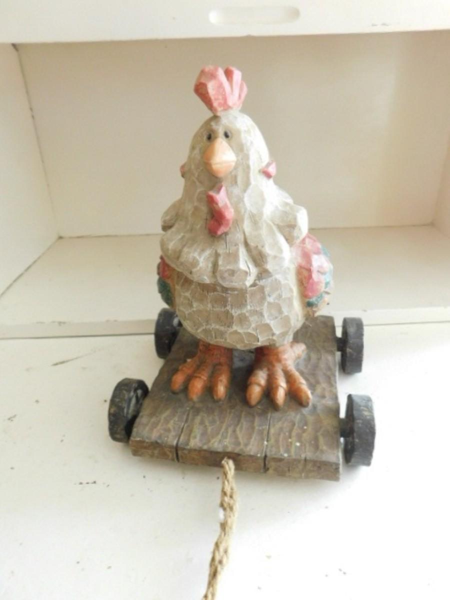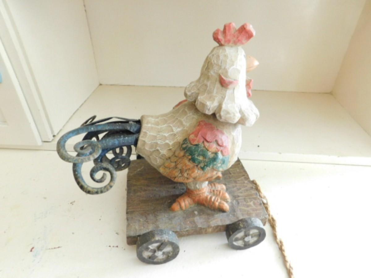 Wood Carved Chicken on Pull Wagon