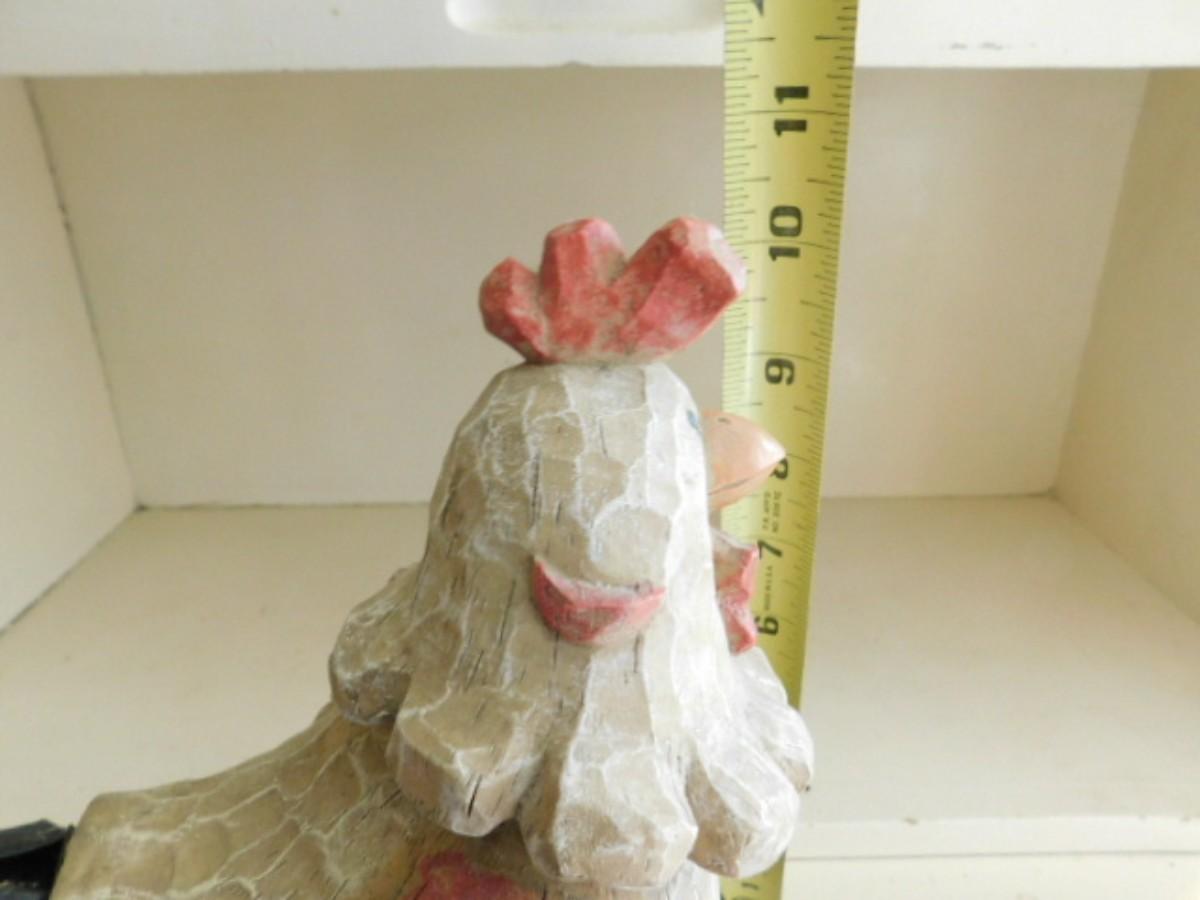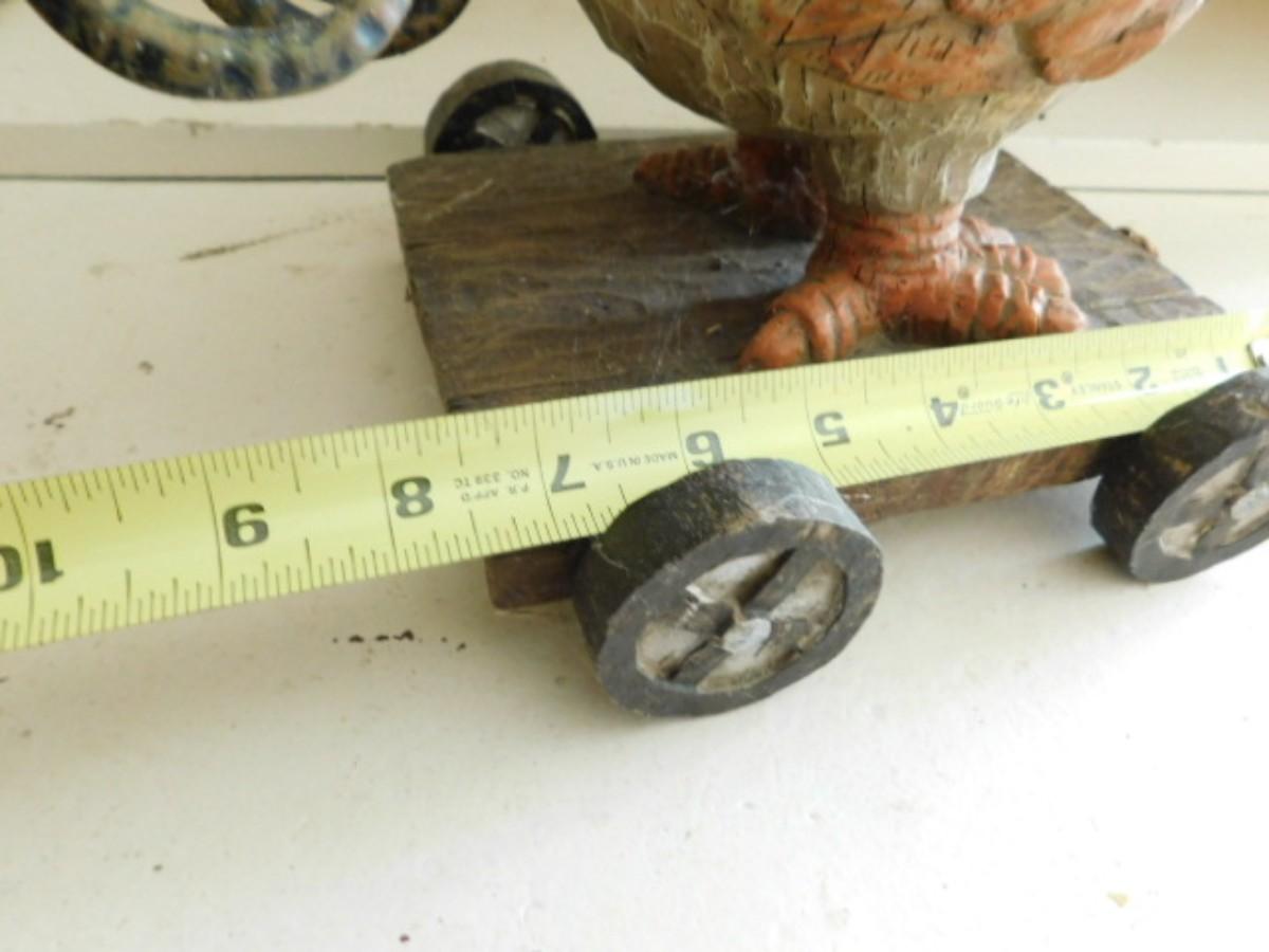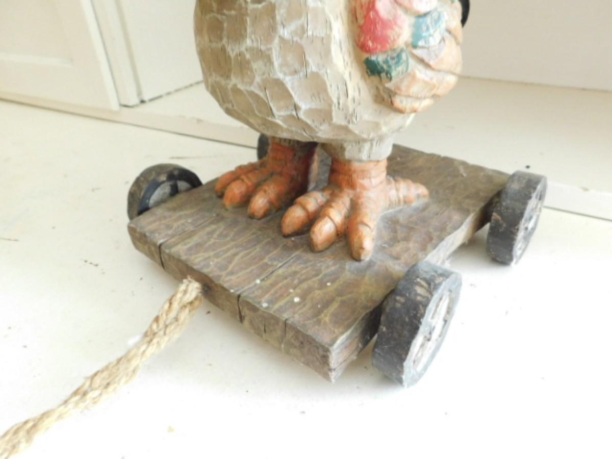 Wood Carved Chicken on Pull Wagon