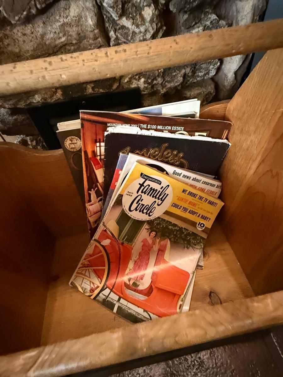 Wood Magazine Rack with Duck Image / Vintage Magazines