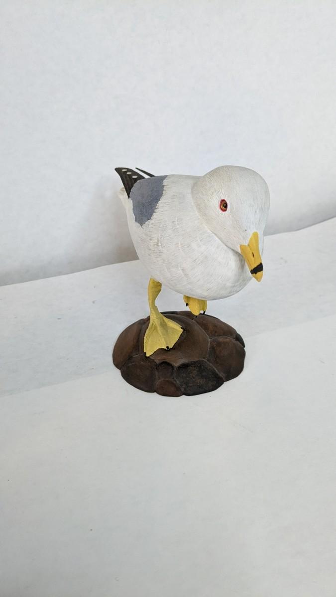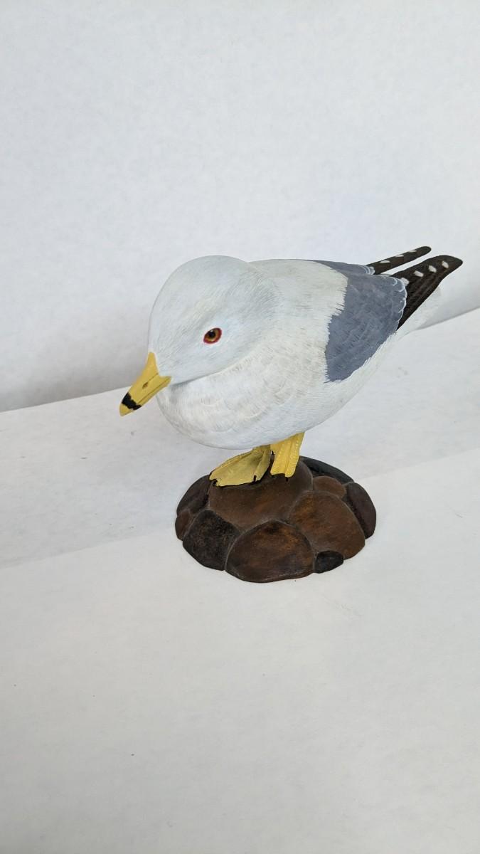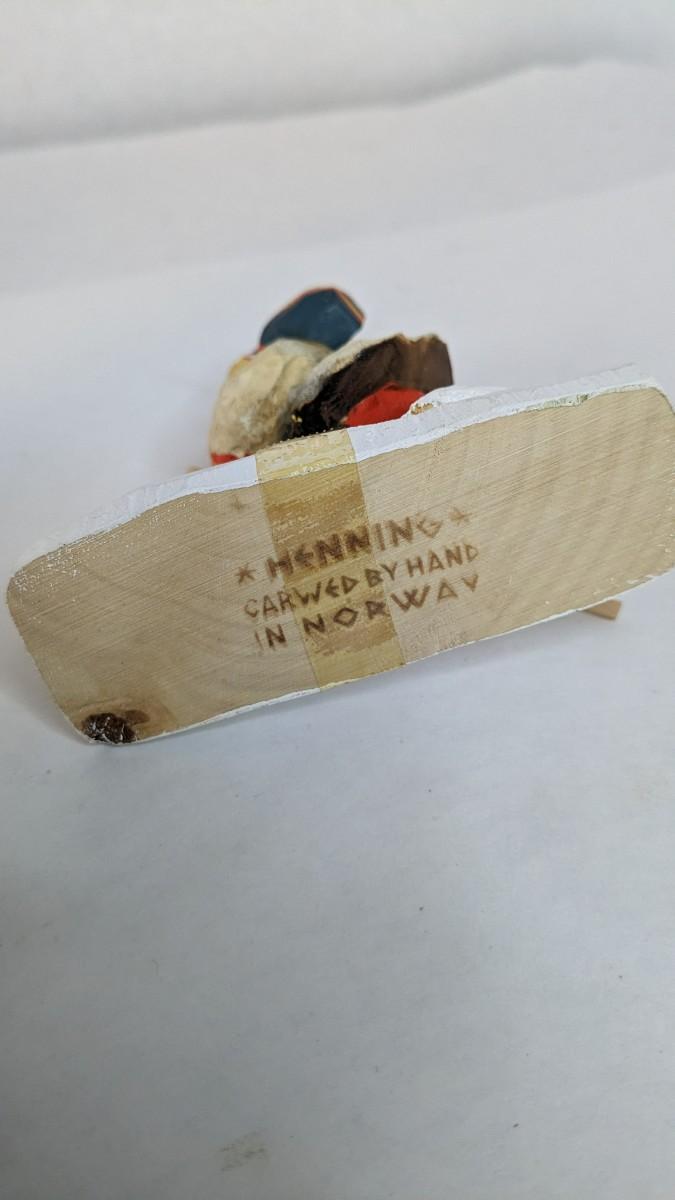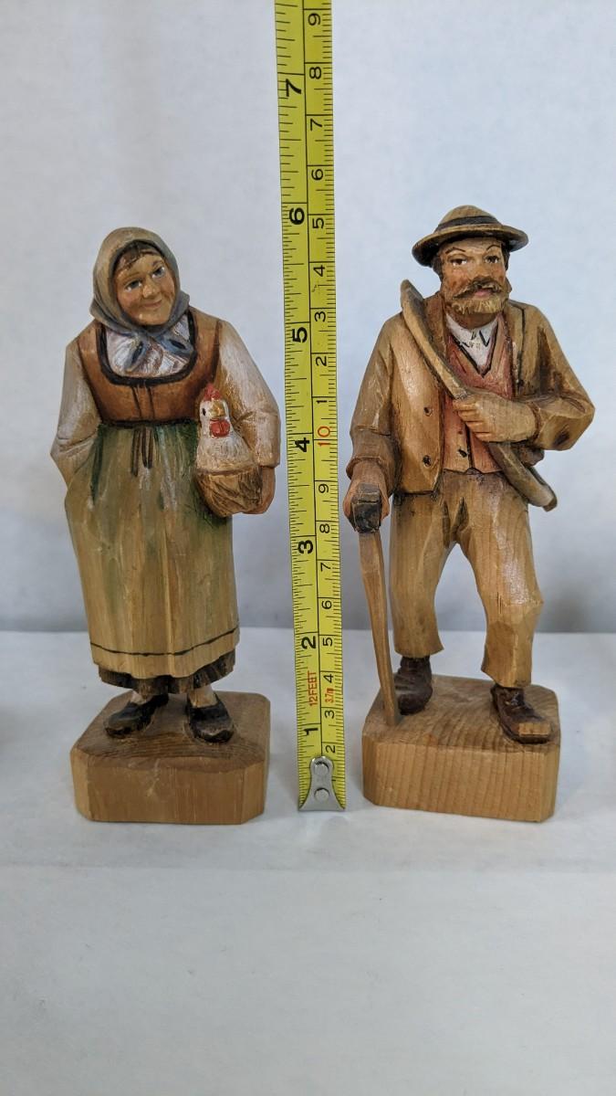 Includes three P. Maeder Lucerne wood carvings from Switzerland, a piece from Henning, Norway, and a beautifully crafted wood gull by Larry A. Witt. All pieces are in beautiful condition for age with no broken or missing parts noted and are just really neat