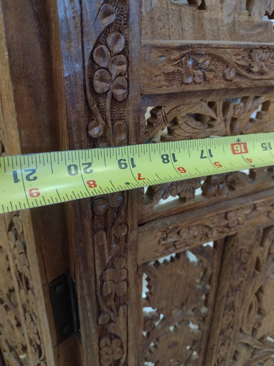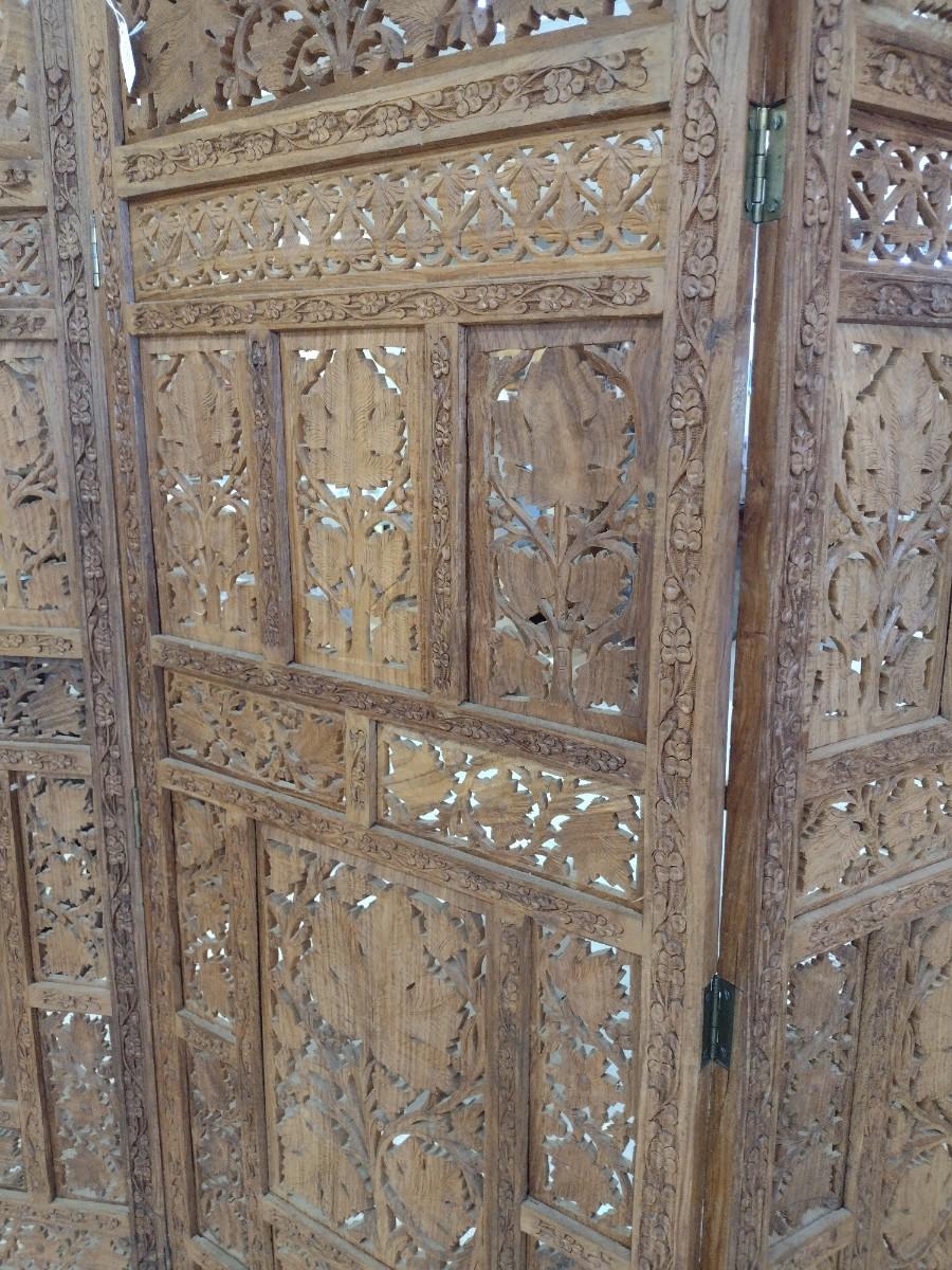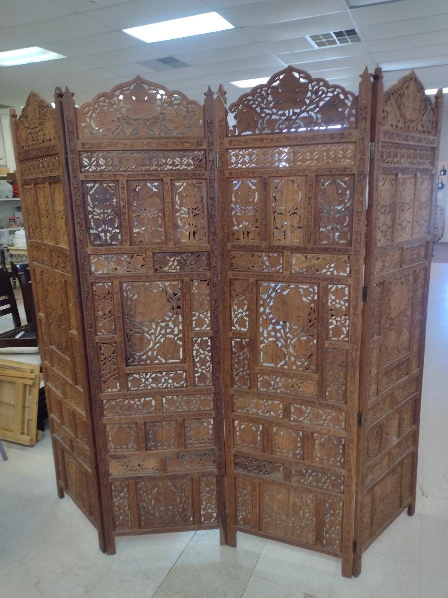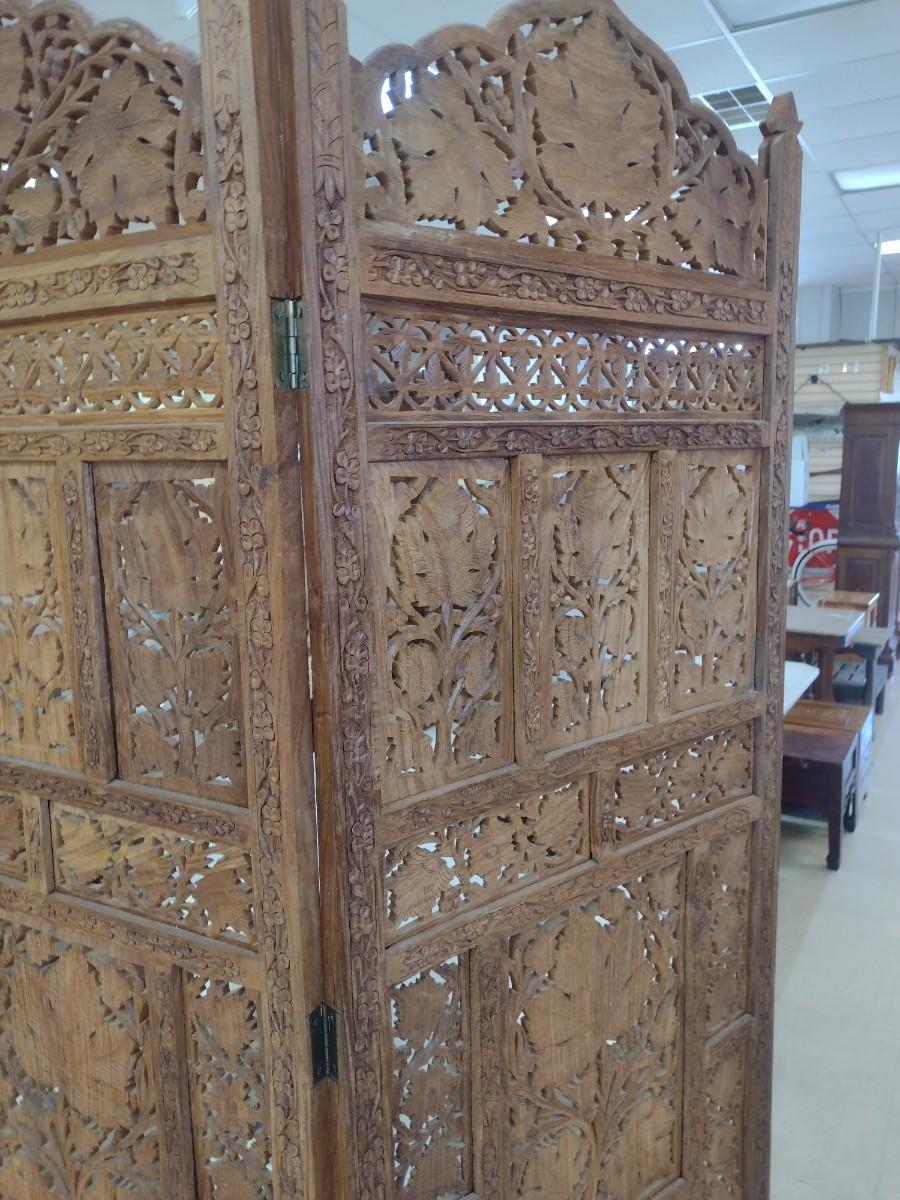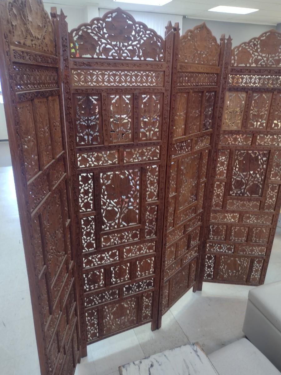 Wood Carved Four Panel Room Screen