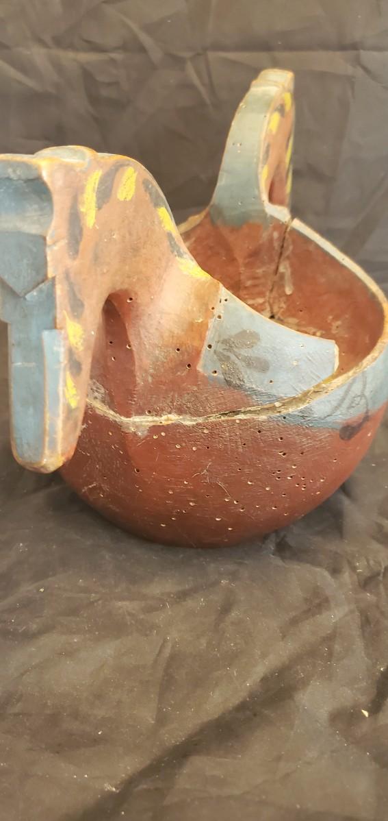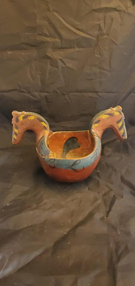 Wood Carved Horse Bowl, its been broken and fixed, from 1847