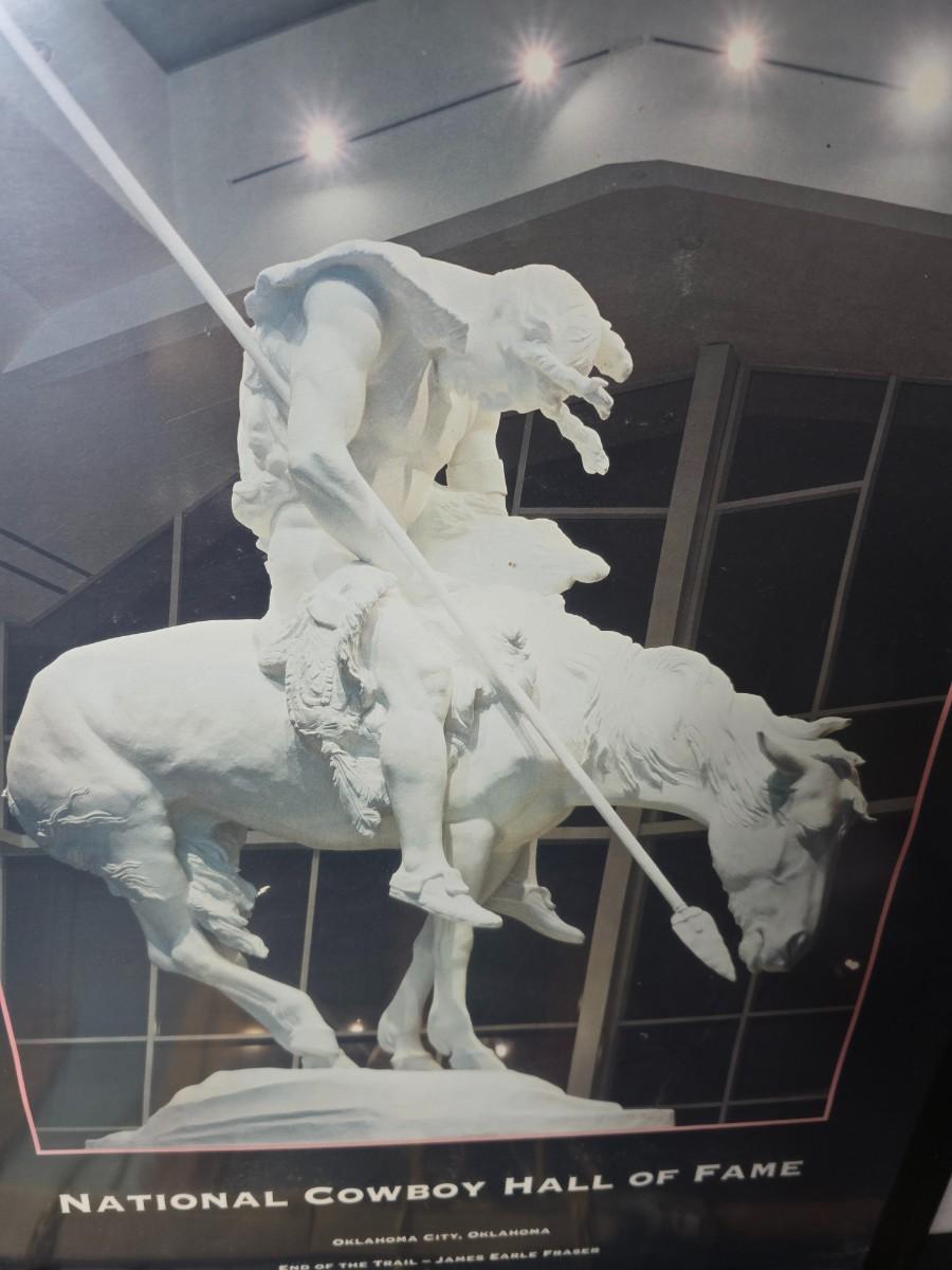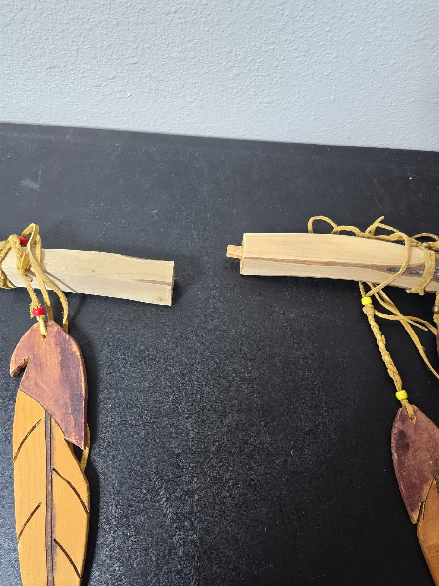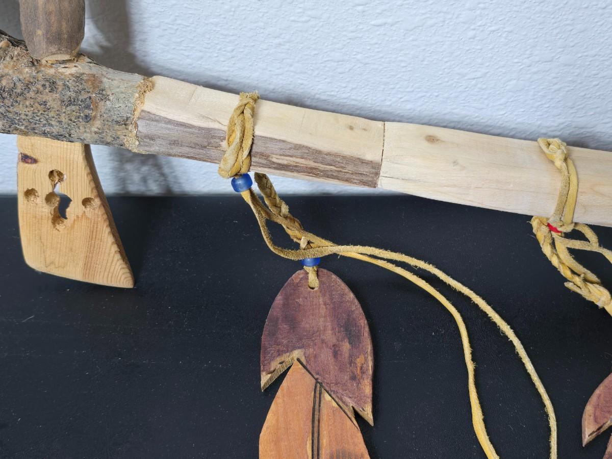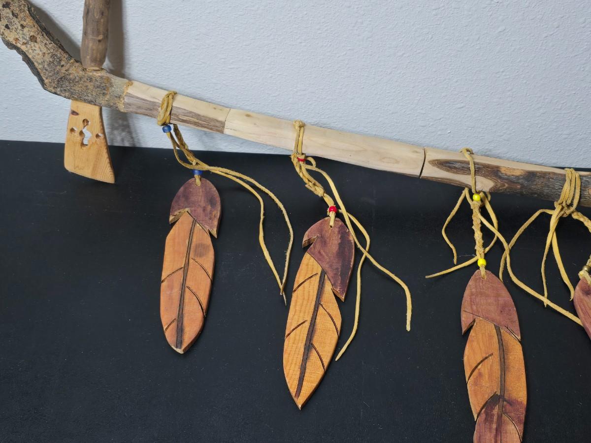 Wood carved Tomahawk pipe replica with a framed "The End of the Trail" by James Earle Fraser