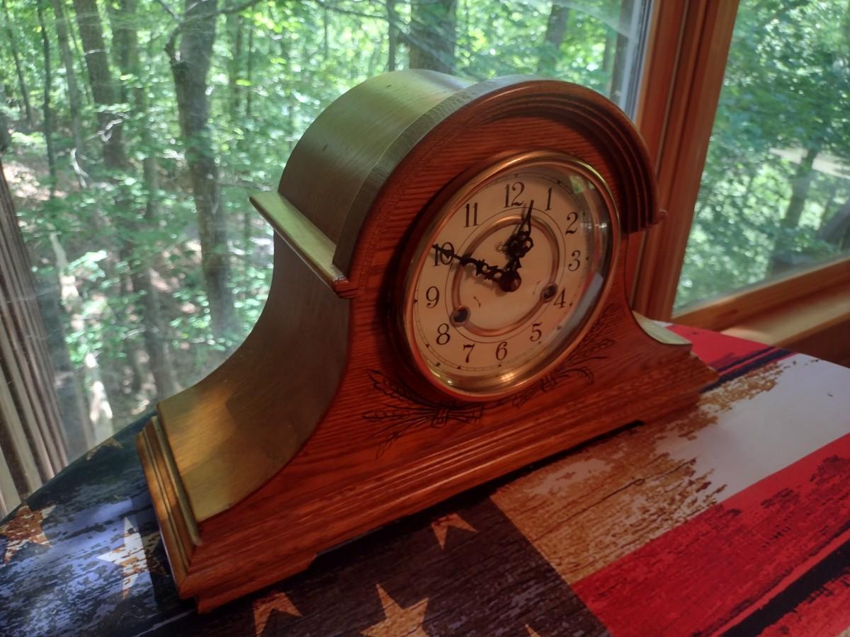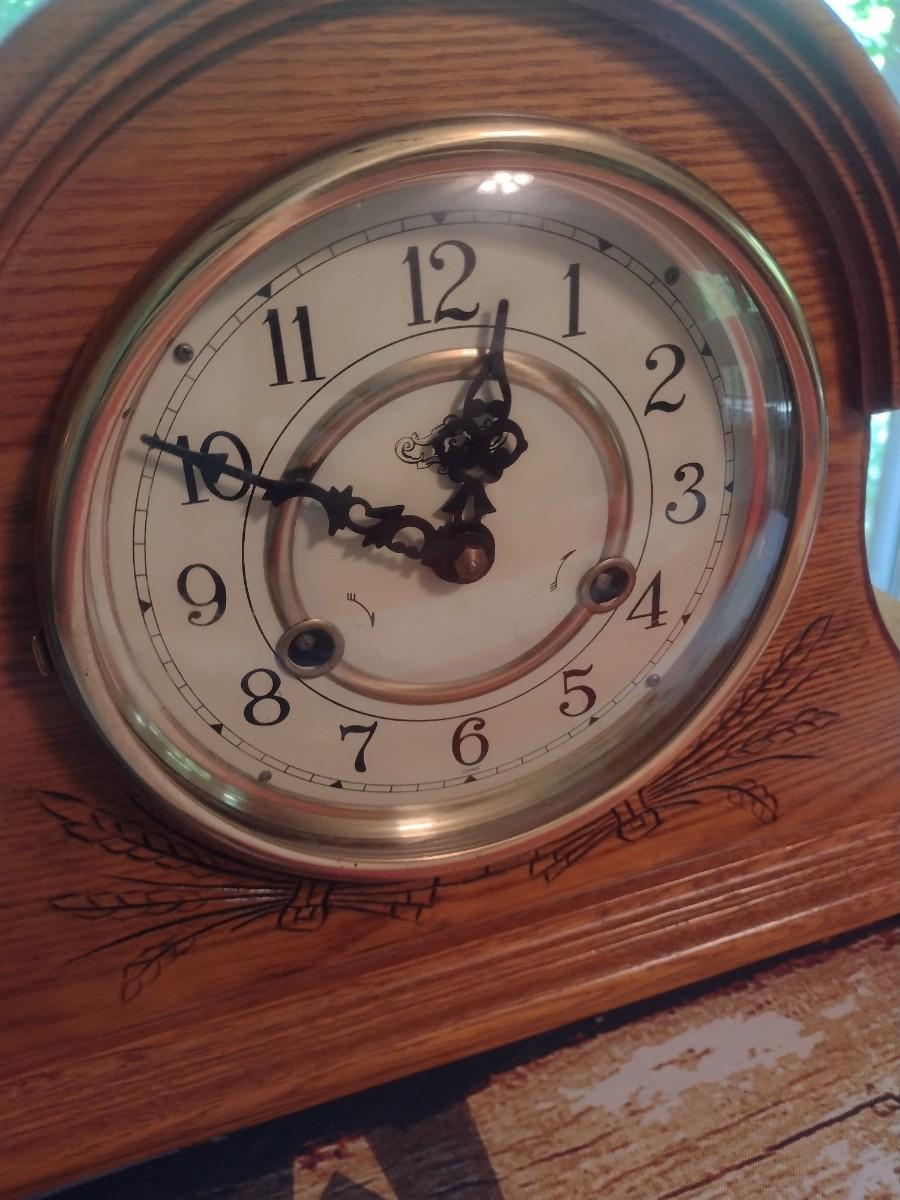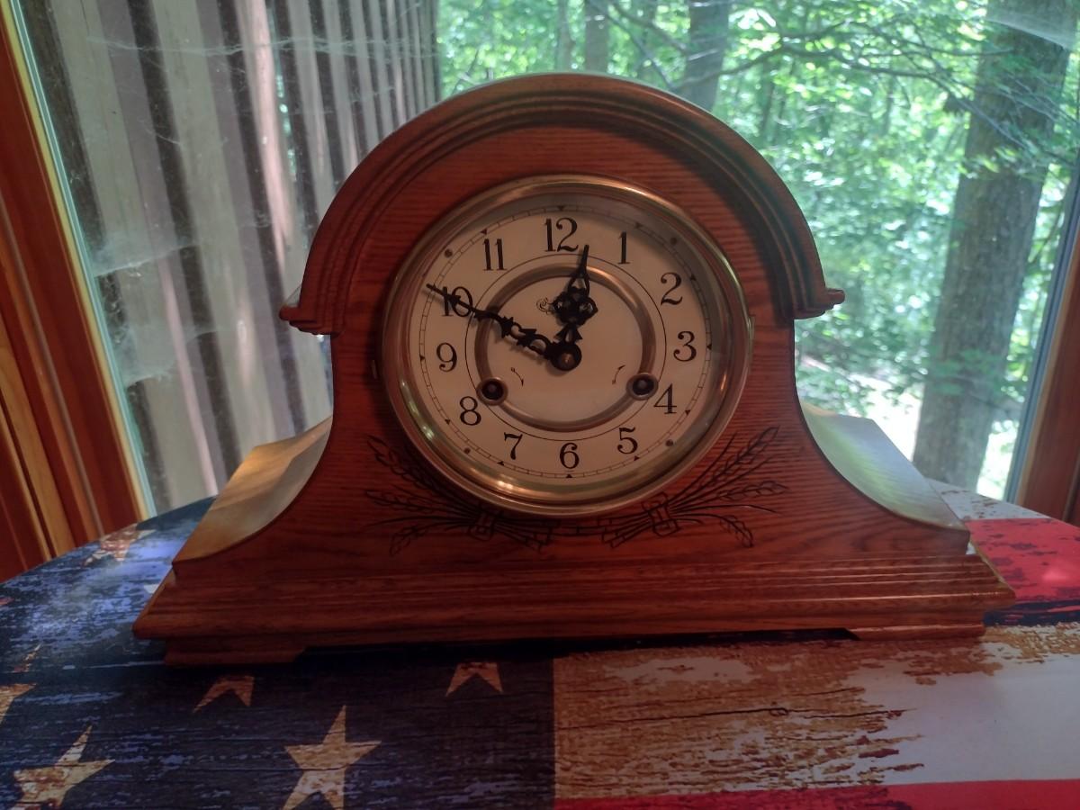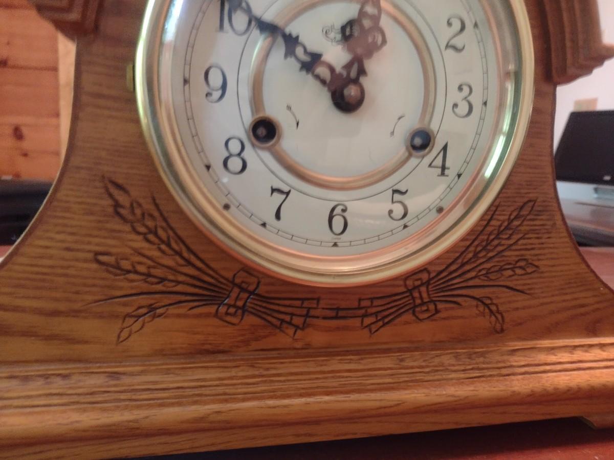 Wood Case Humpback Wind Up Chime Mantle Clock with Key