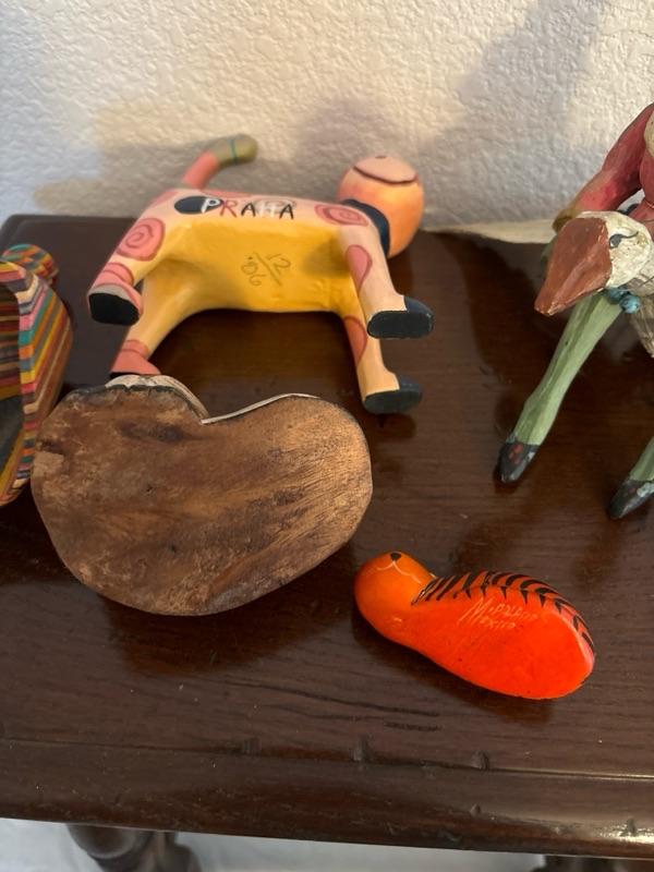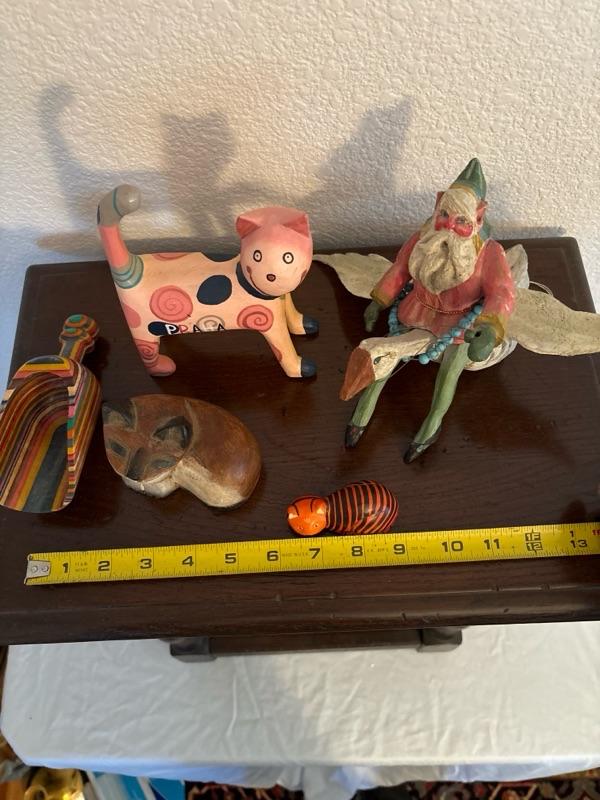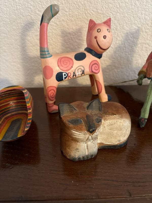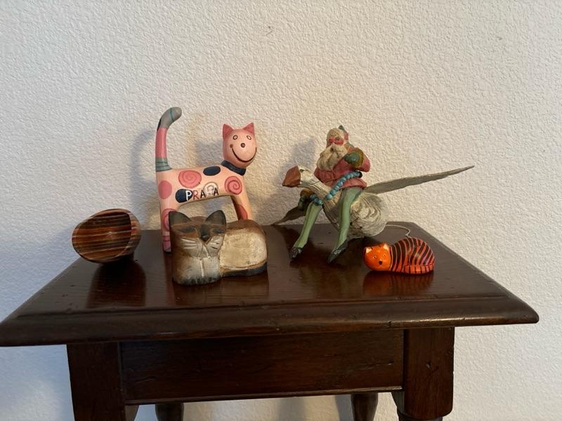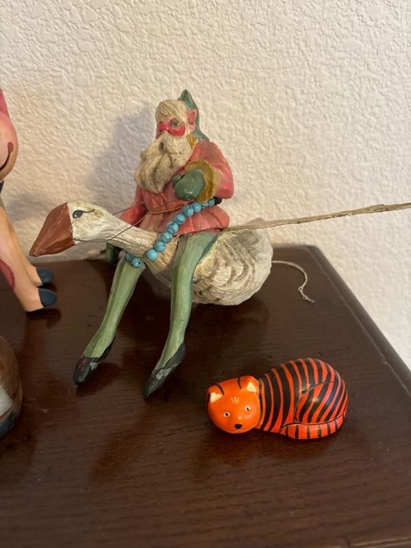 Lot 95 - House of Hatten Santa Elf on a Goose Ornament and Wooden Cats