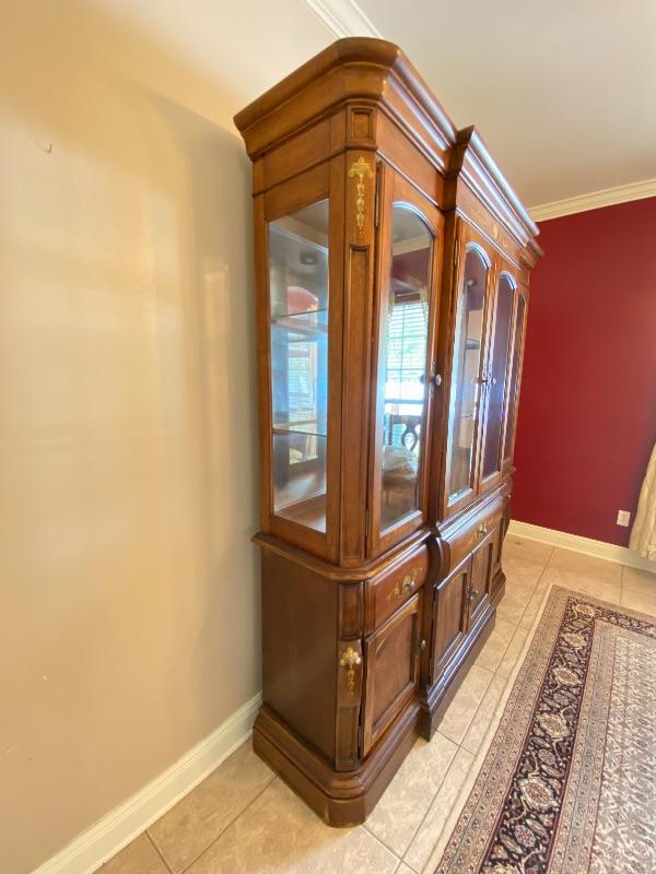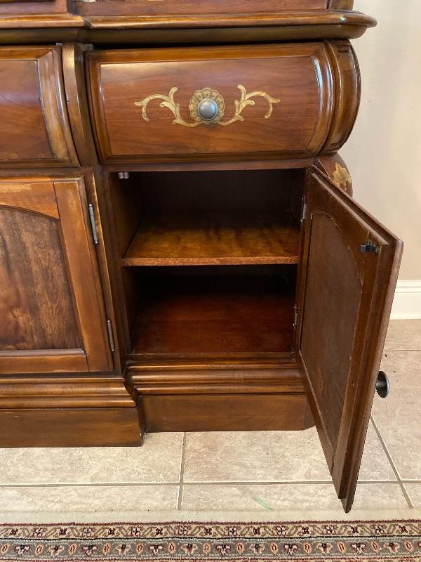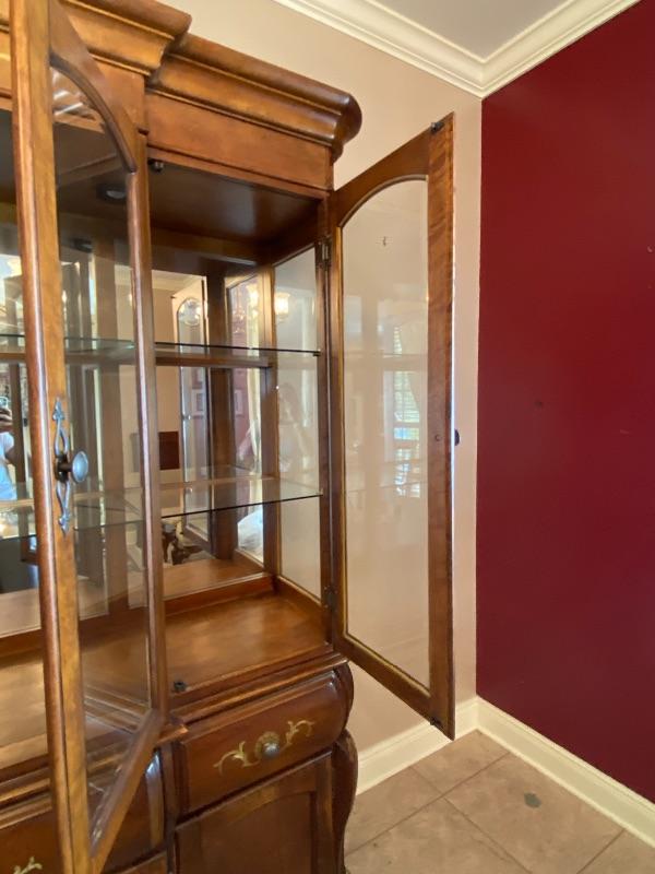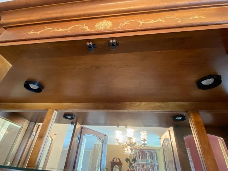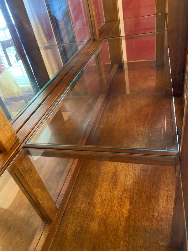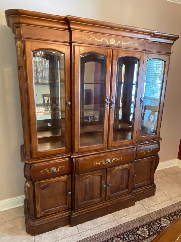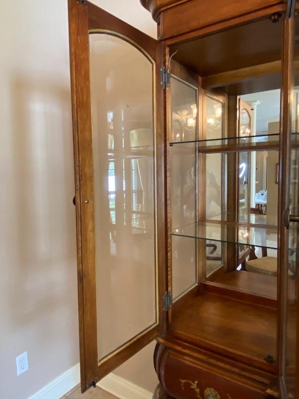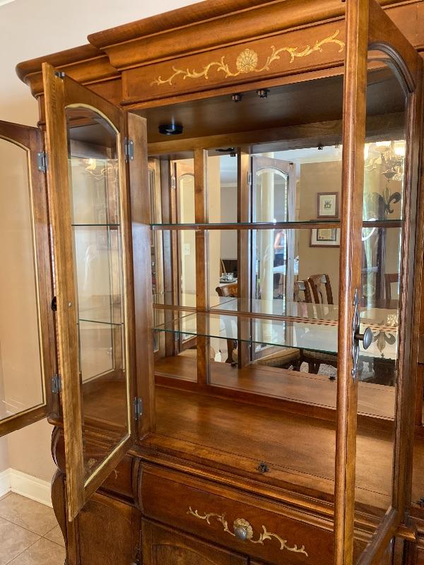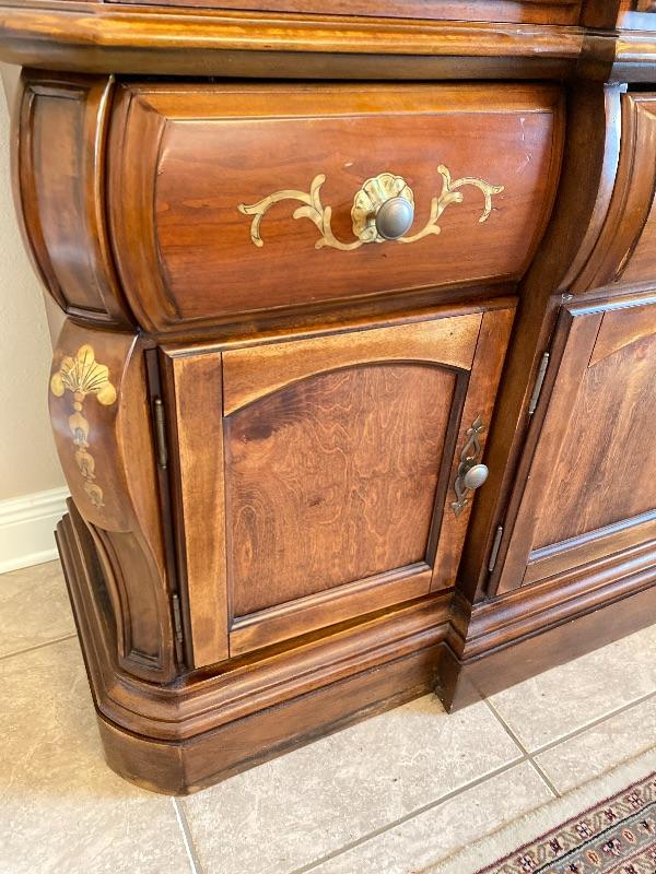 Lighted / 3 Drawers & Cabinets / 2 Glass Shelves / Mother of Pearl Inlay Design / 20” D x 71” L x 83” H