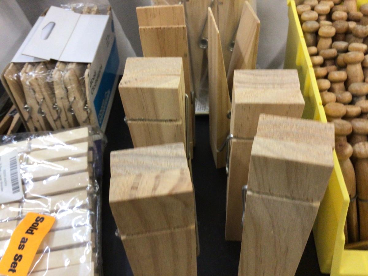You get vintage round wood clothes pin, regular wood clothes pins and large card holder wood clothes pins.