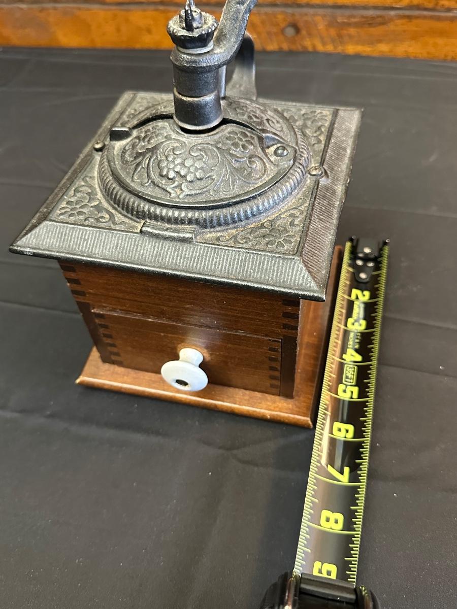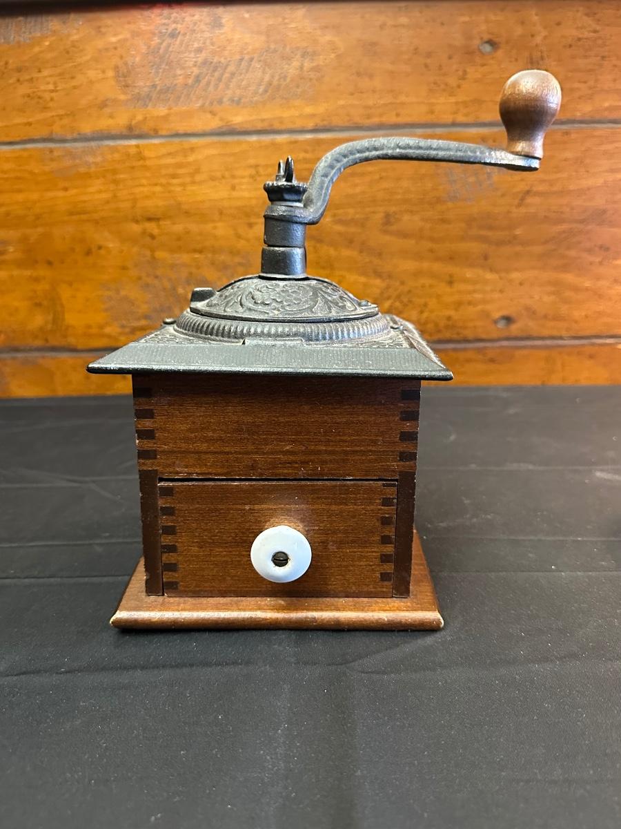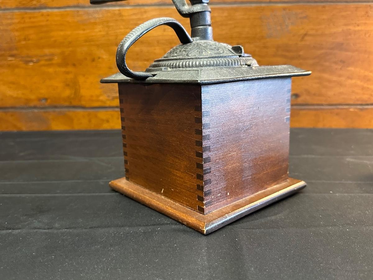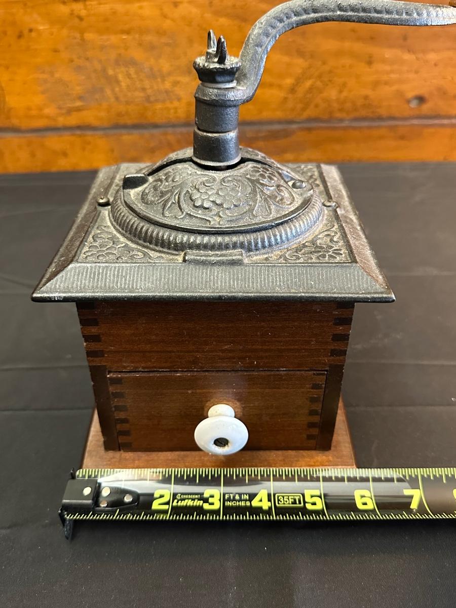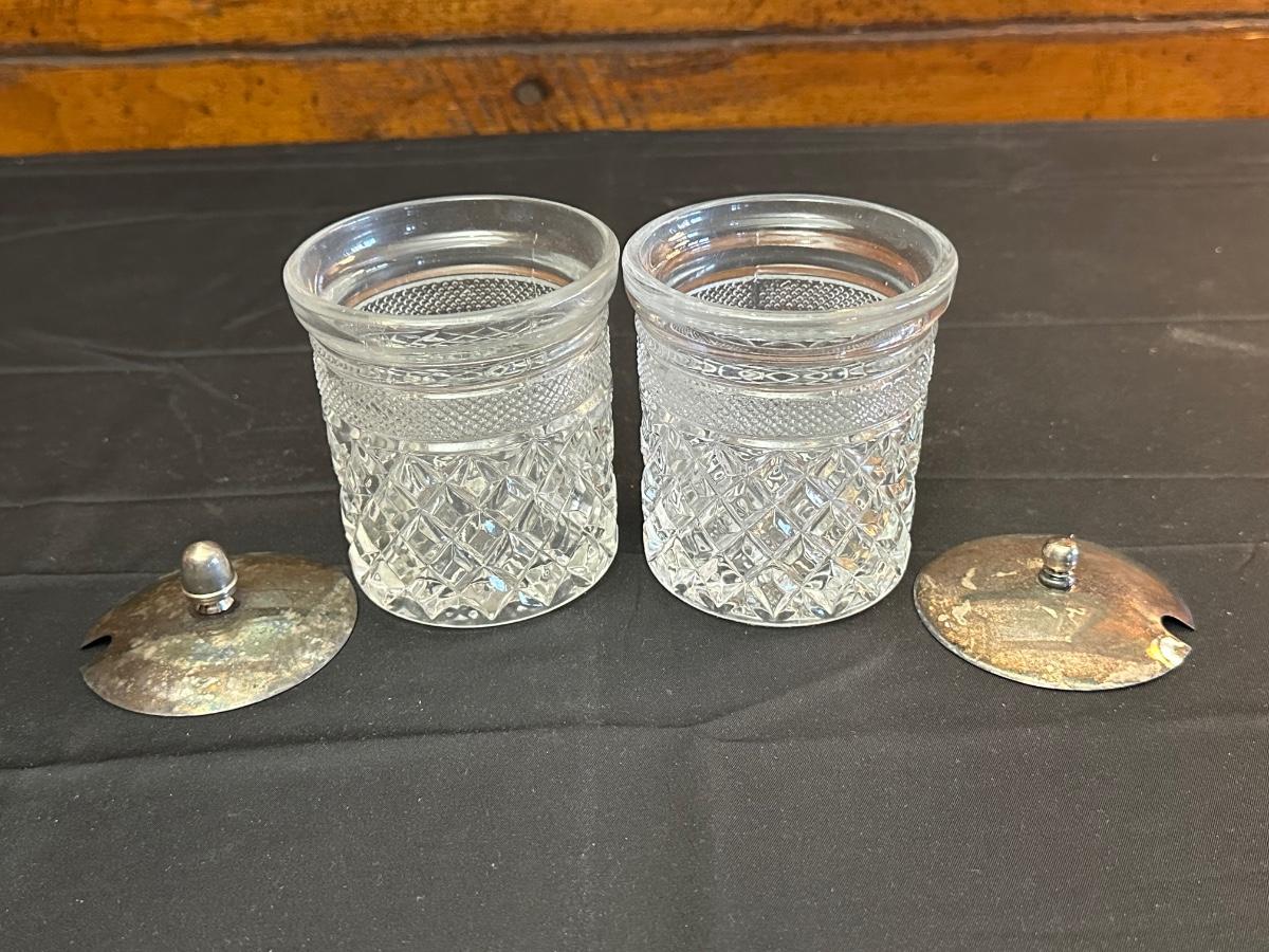 Wood Coffee Grinder and Two Crystal Sugar Glasses