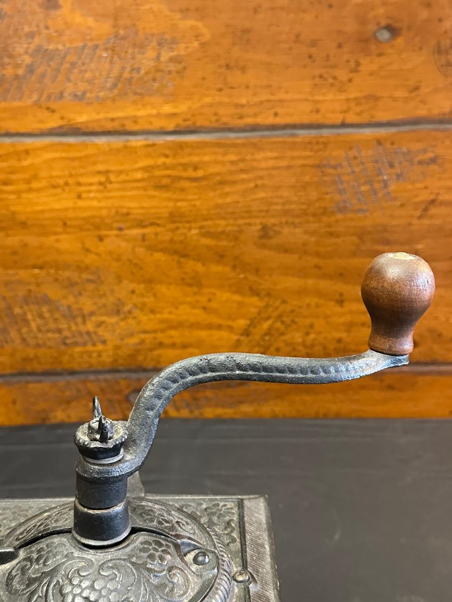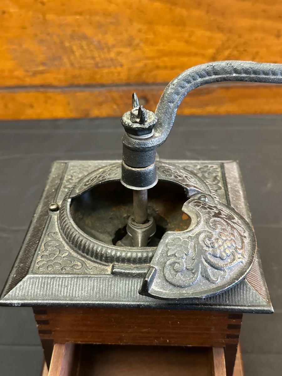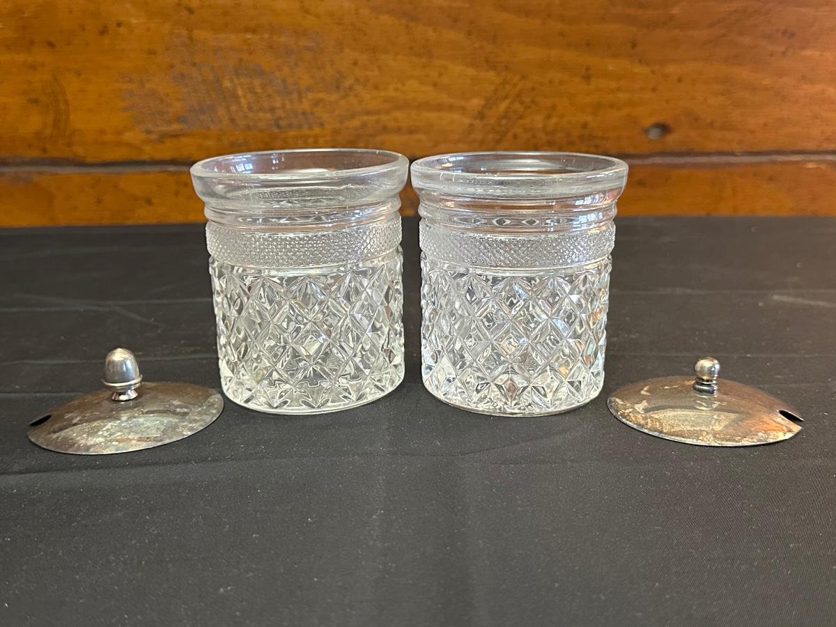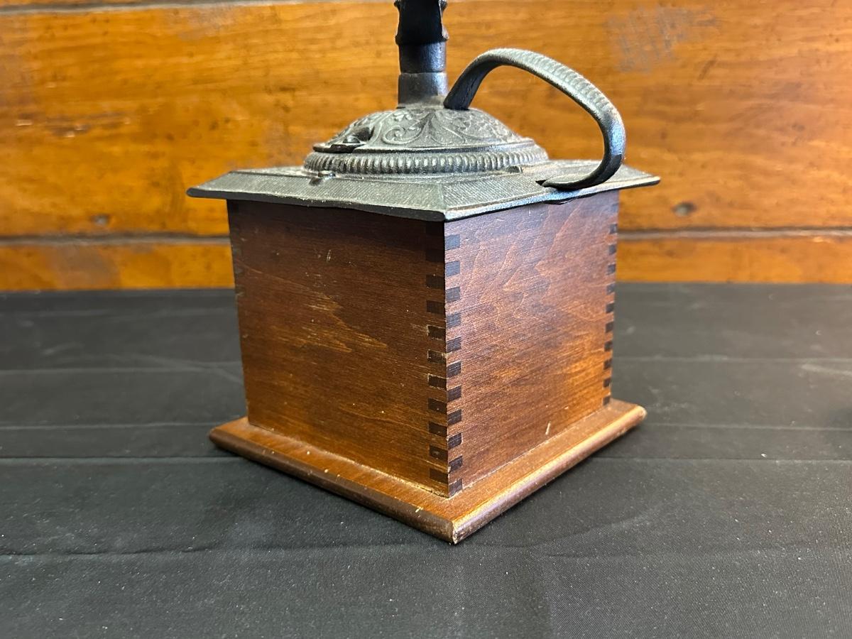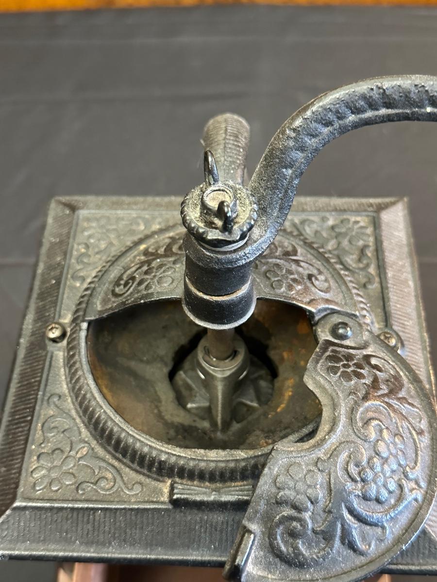 Wood Coffee Grinder and Two Crystal Sugar Glasses