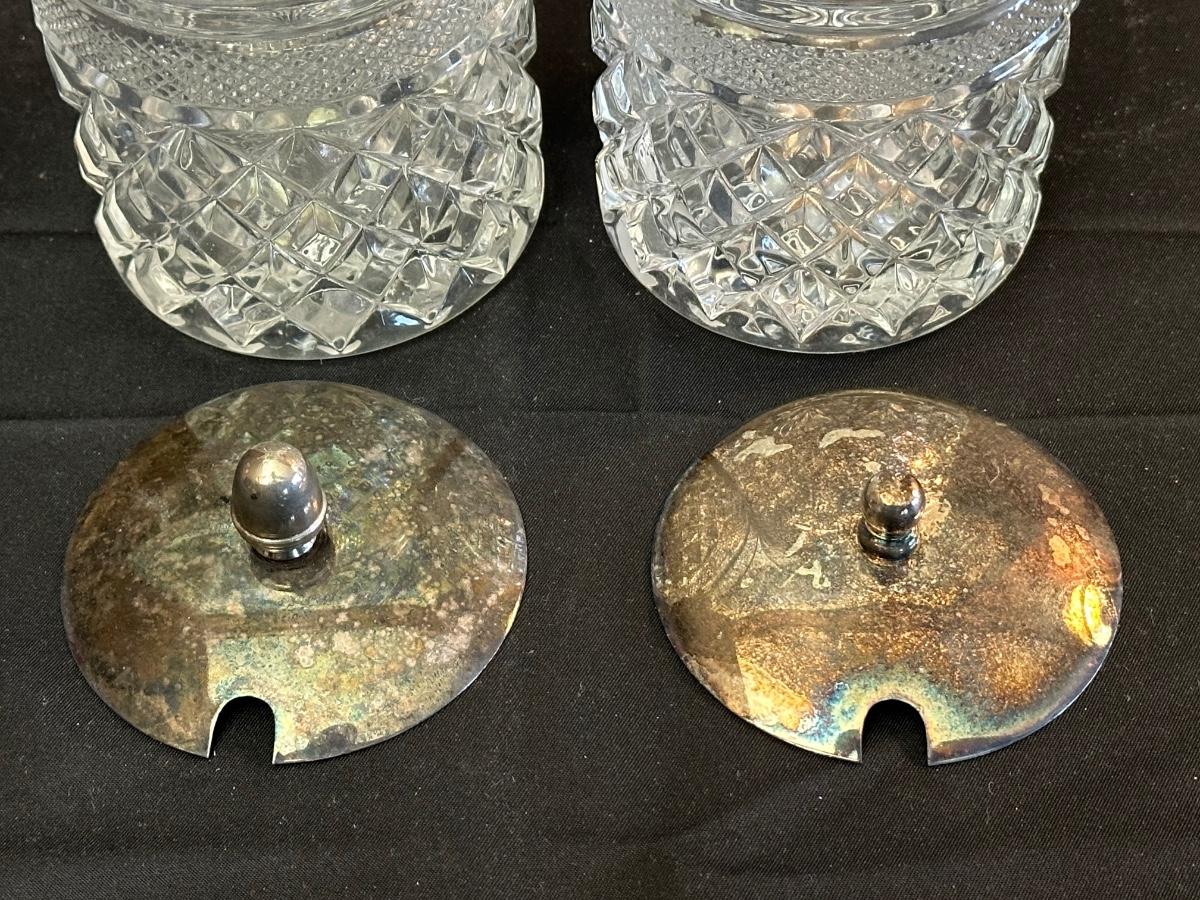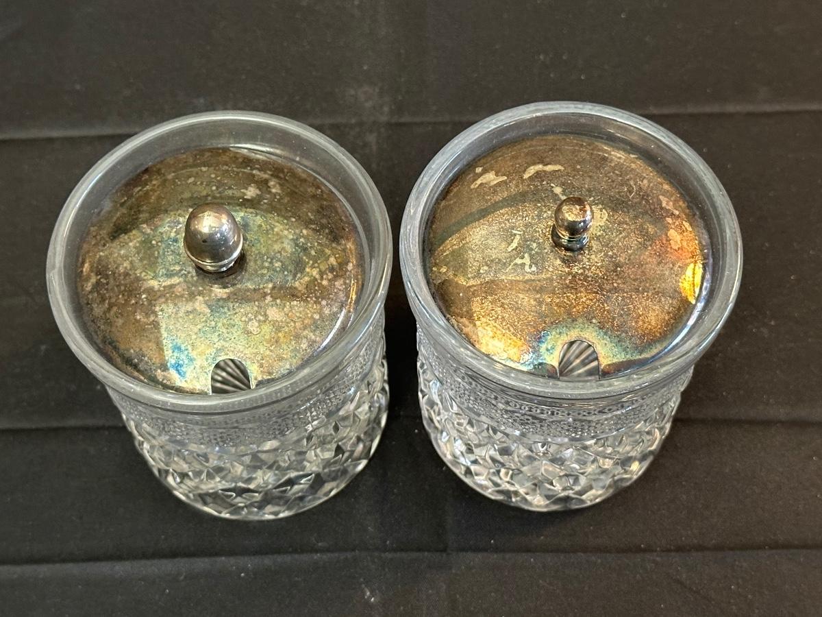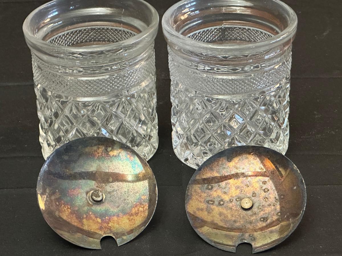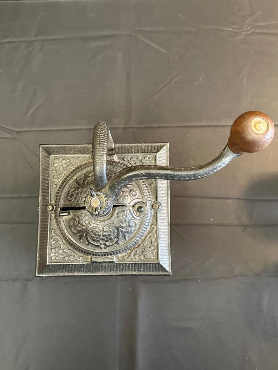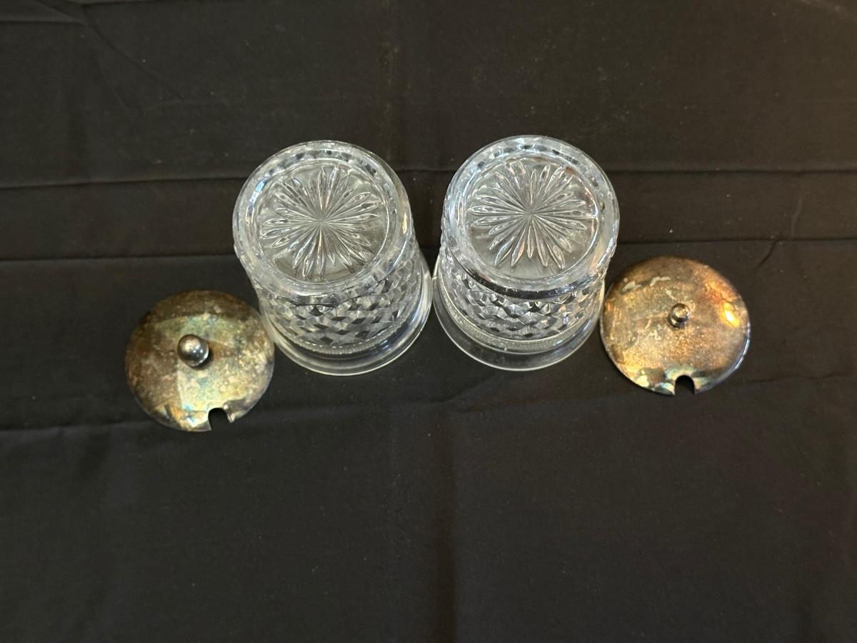 Wood Coffee Grinder and Two Crystal Sugar Glasses
