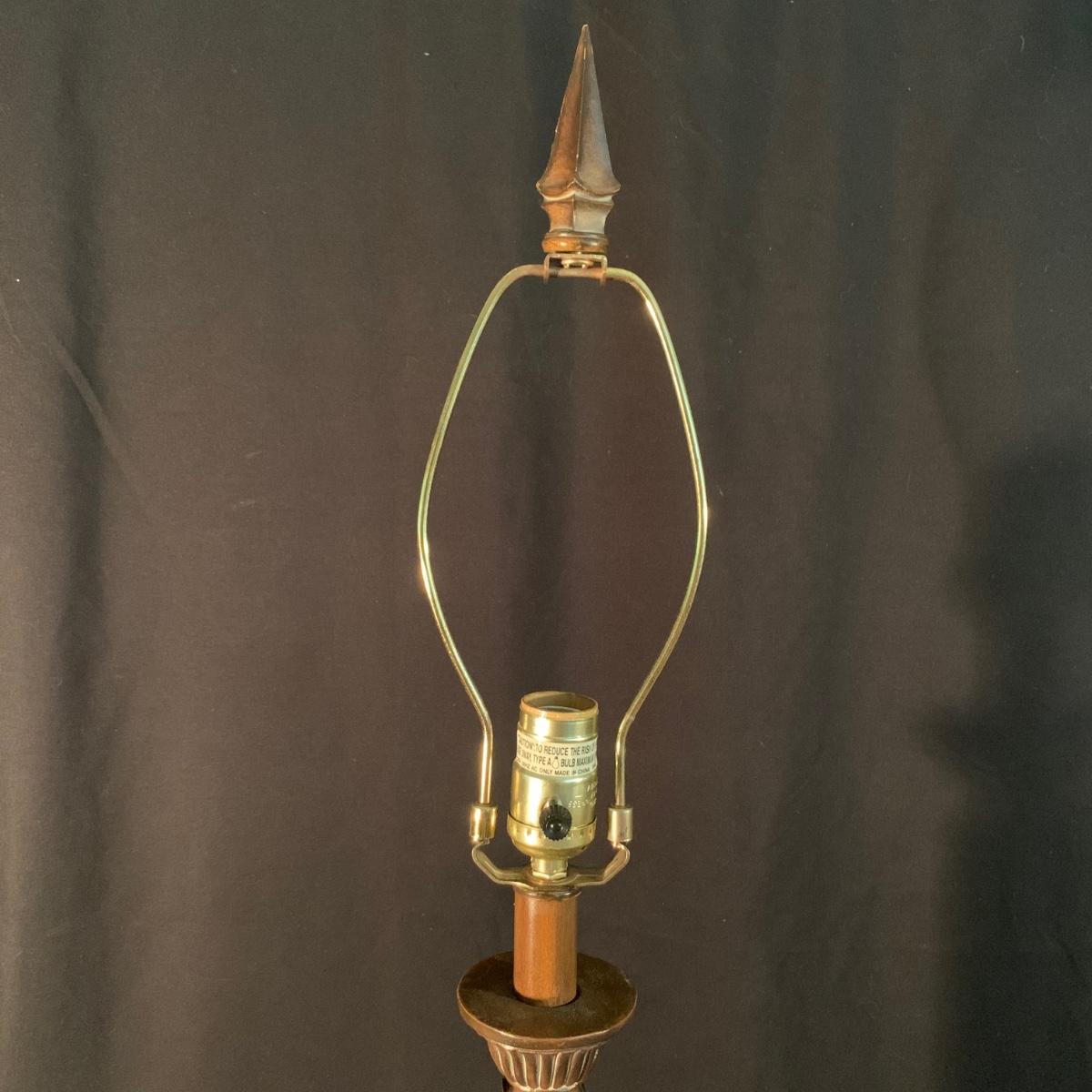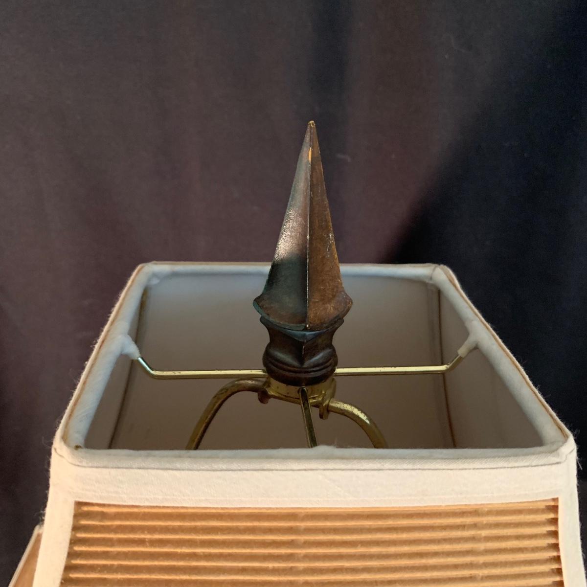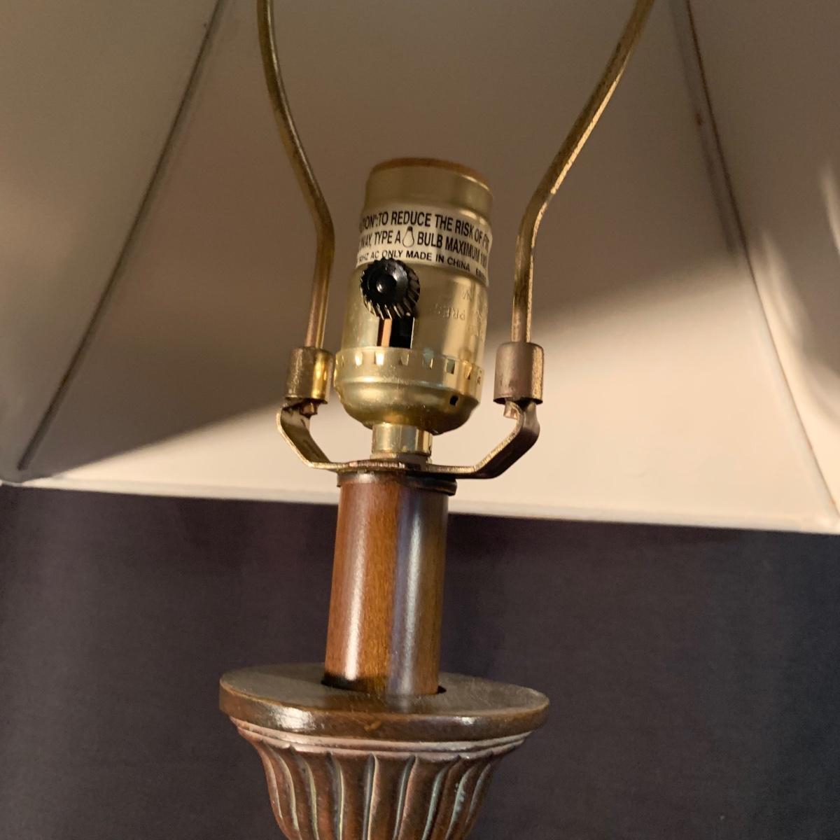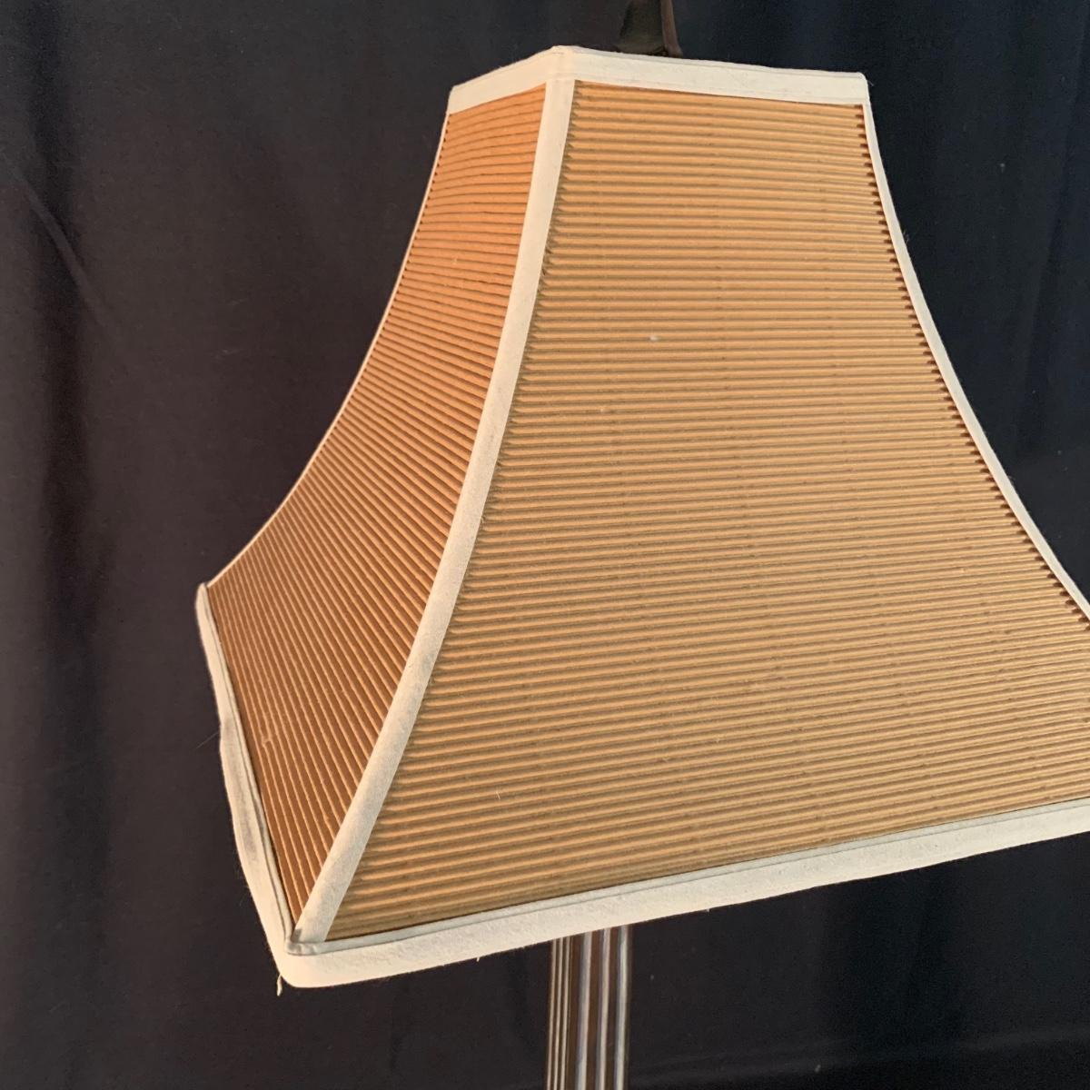 A pair of lamps with lamp shades. The lamps are in excellent condition and worked when tested. The lamp bases measures about 33in without the lamp shades, and are metal. Local pickup only.