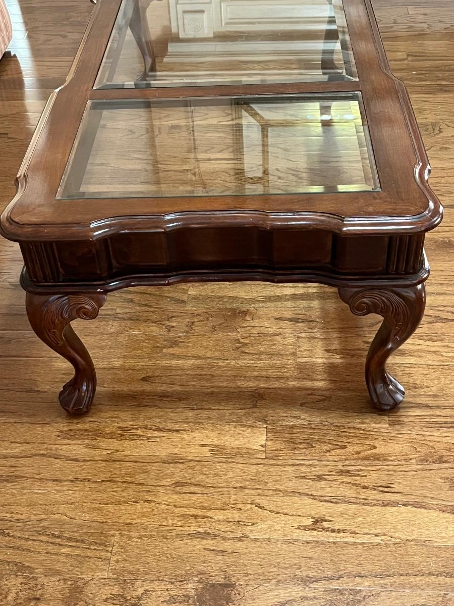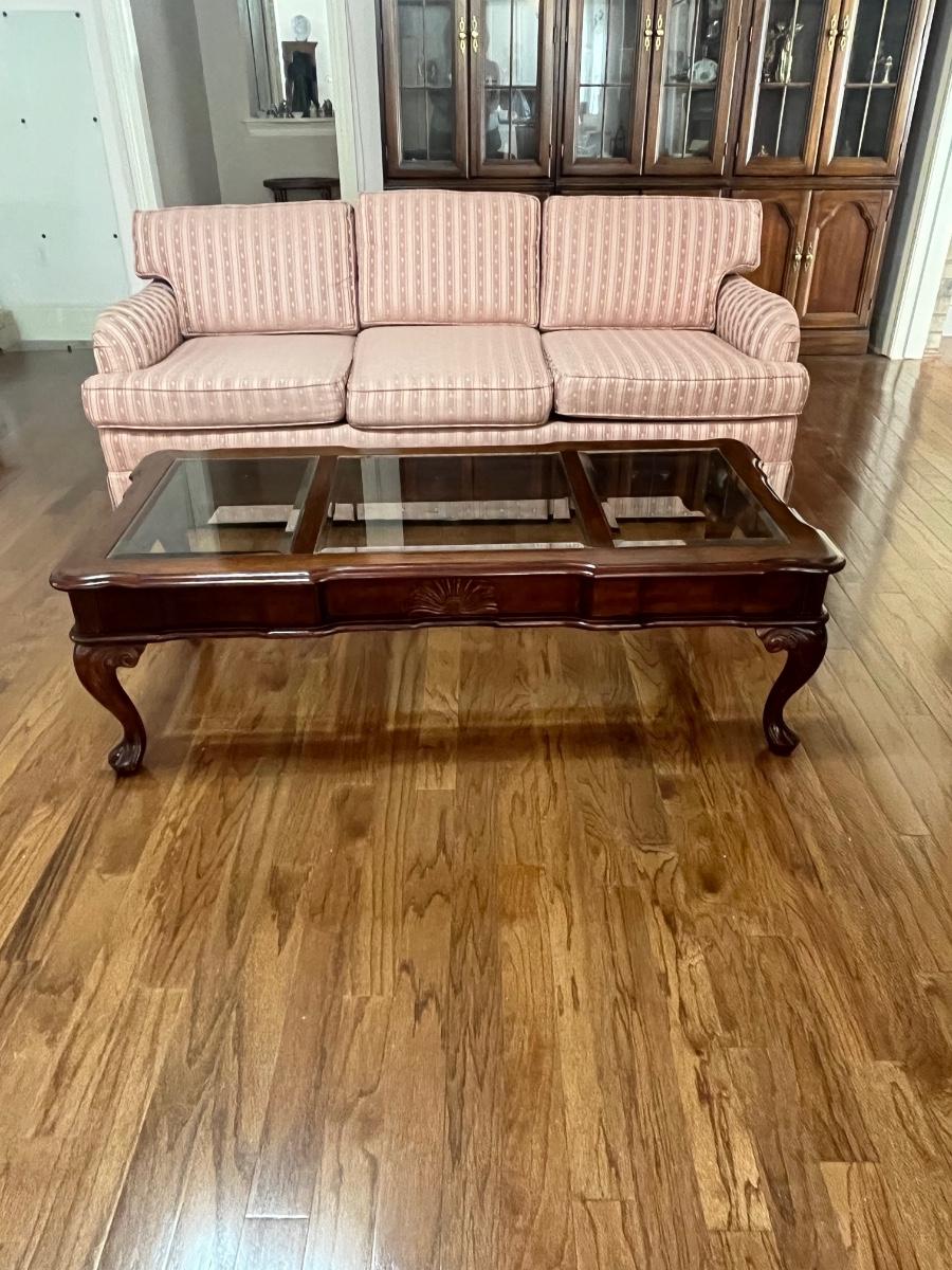 17” H x 54” W x 26.5” D ~ Glass has minor surface scratches on glass