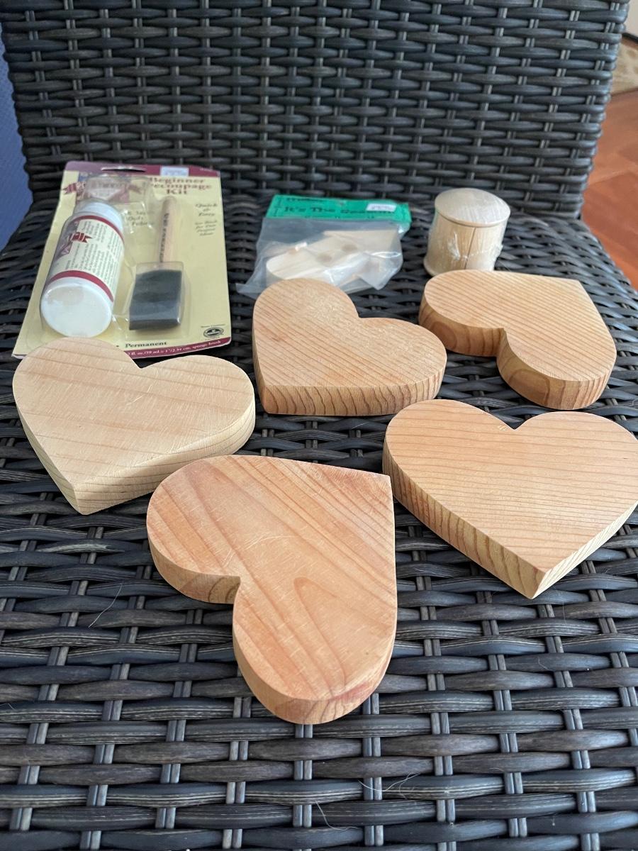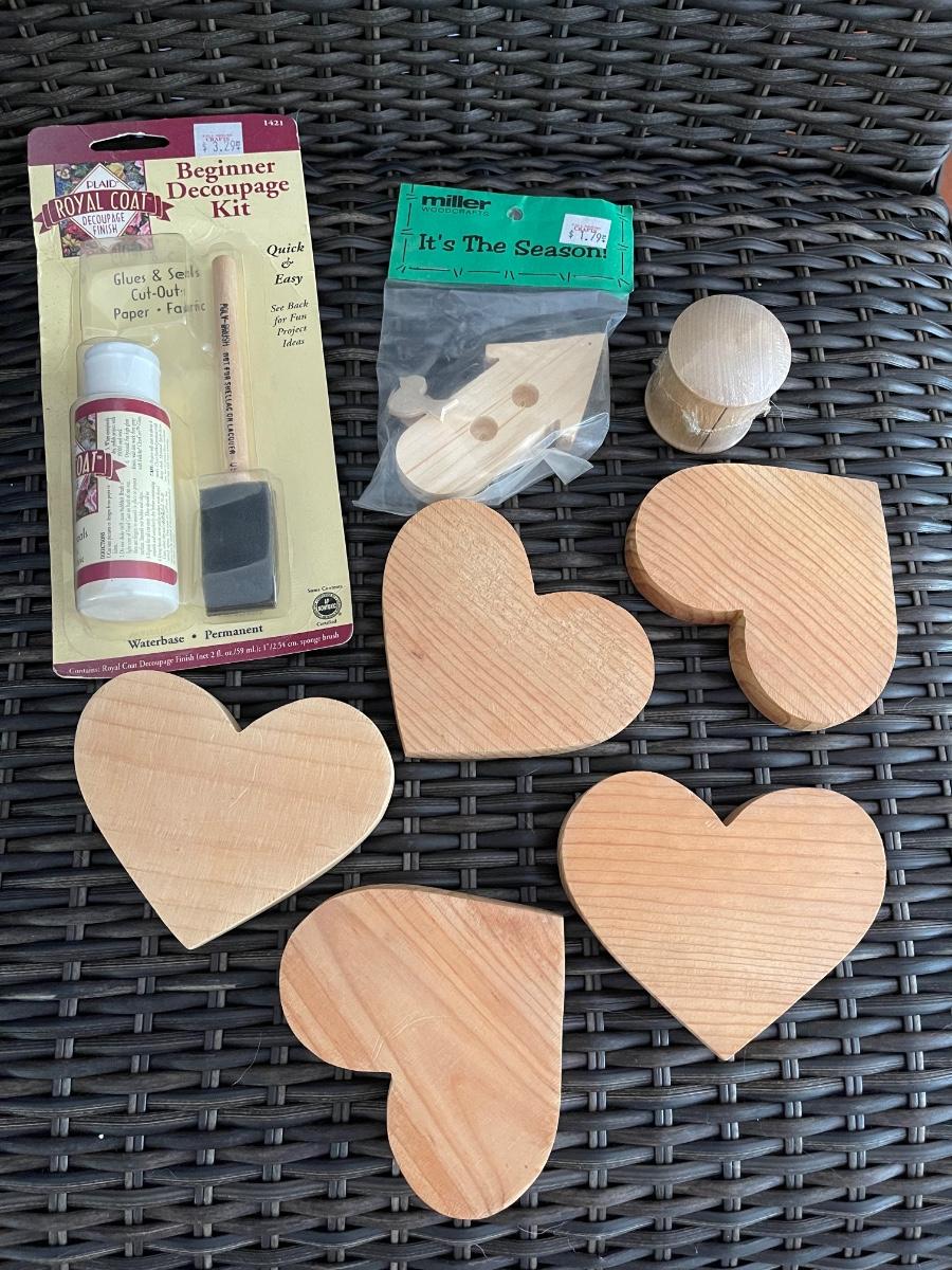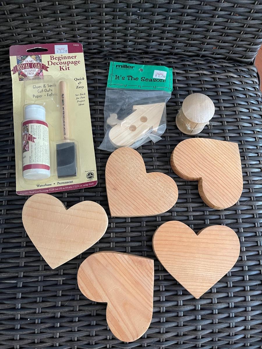 Wood Craft Hearts & Decoupage Kit. Good condition.