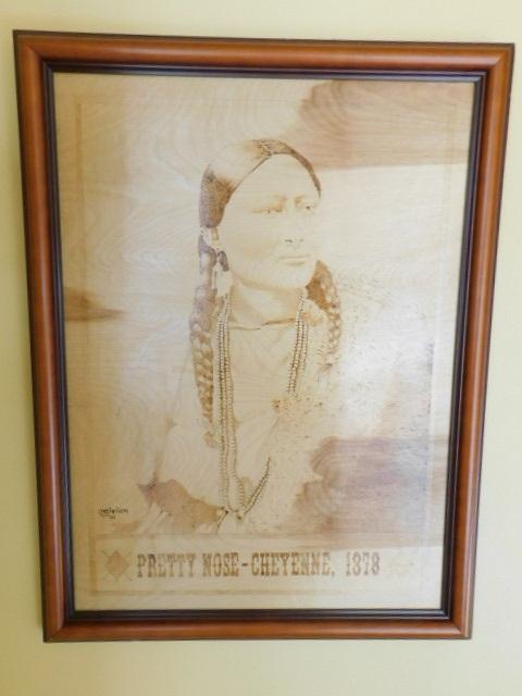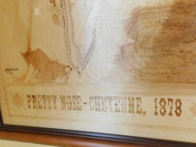 Wood Crafted Framed Art Portrait of Pretty Nose - Cheyenne Signed by Artist
