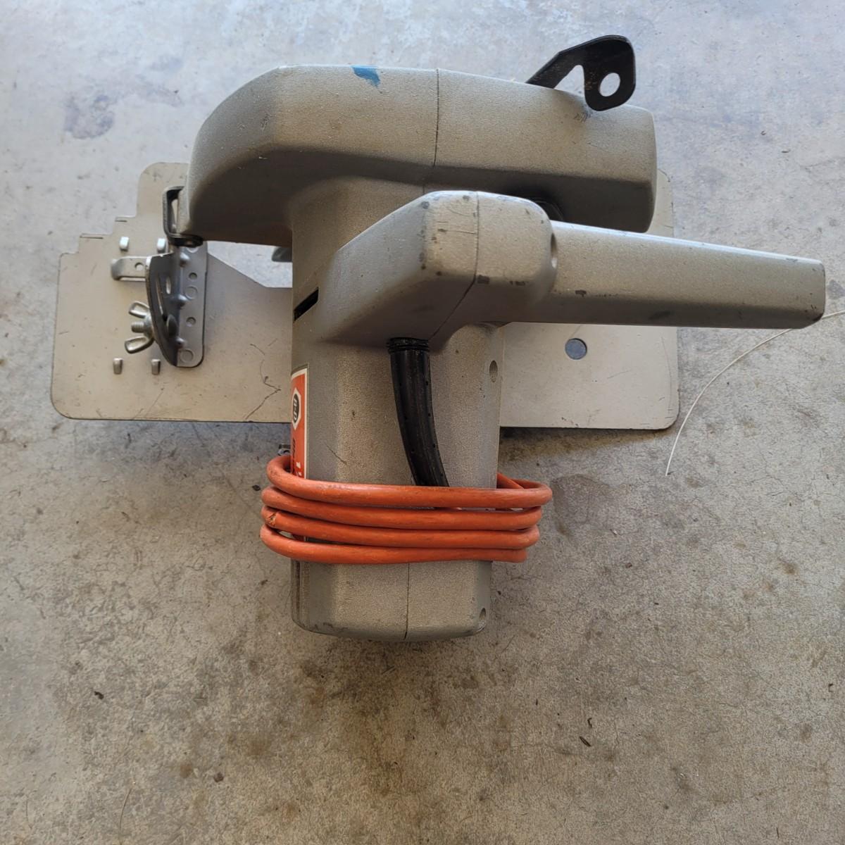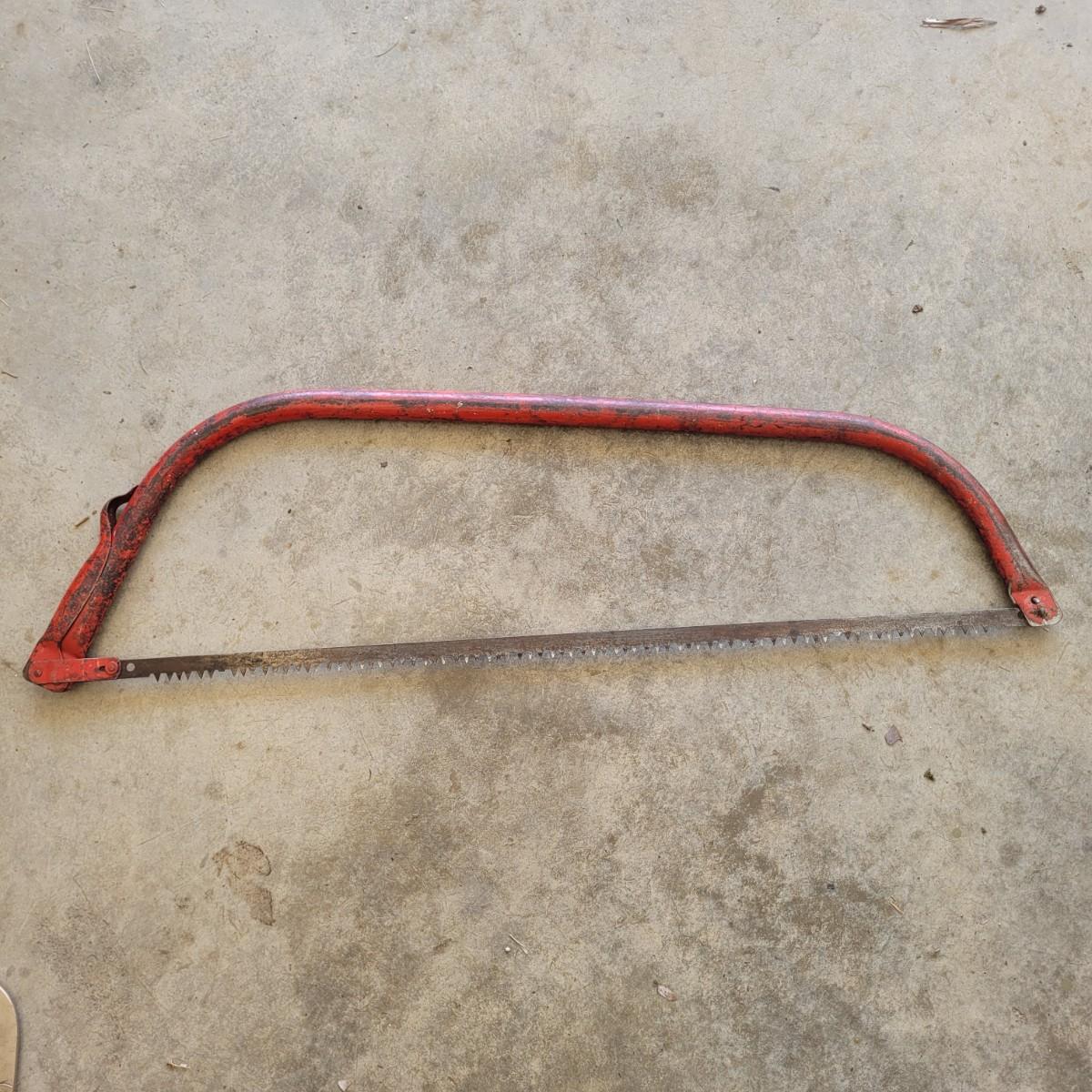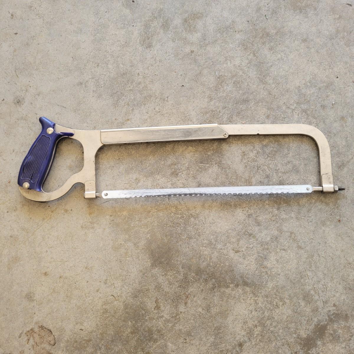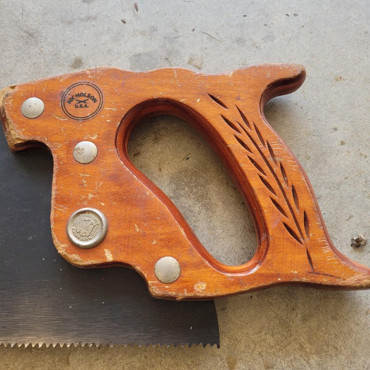 This lot includes multiple saws and wood Cutting tools. Included in this lot: a corded Black and Decker brand circular saw, four hand saws, a metal square tool, and a 12" mitre box for angled cuts. The power saw is 7-1/4" and turns on when plugged in. Three of the hand saws appear to be for wood, while one is for metal. The metal square is labeled as a rafter angle square. The mitre box includes box, but has been opened and used.