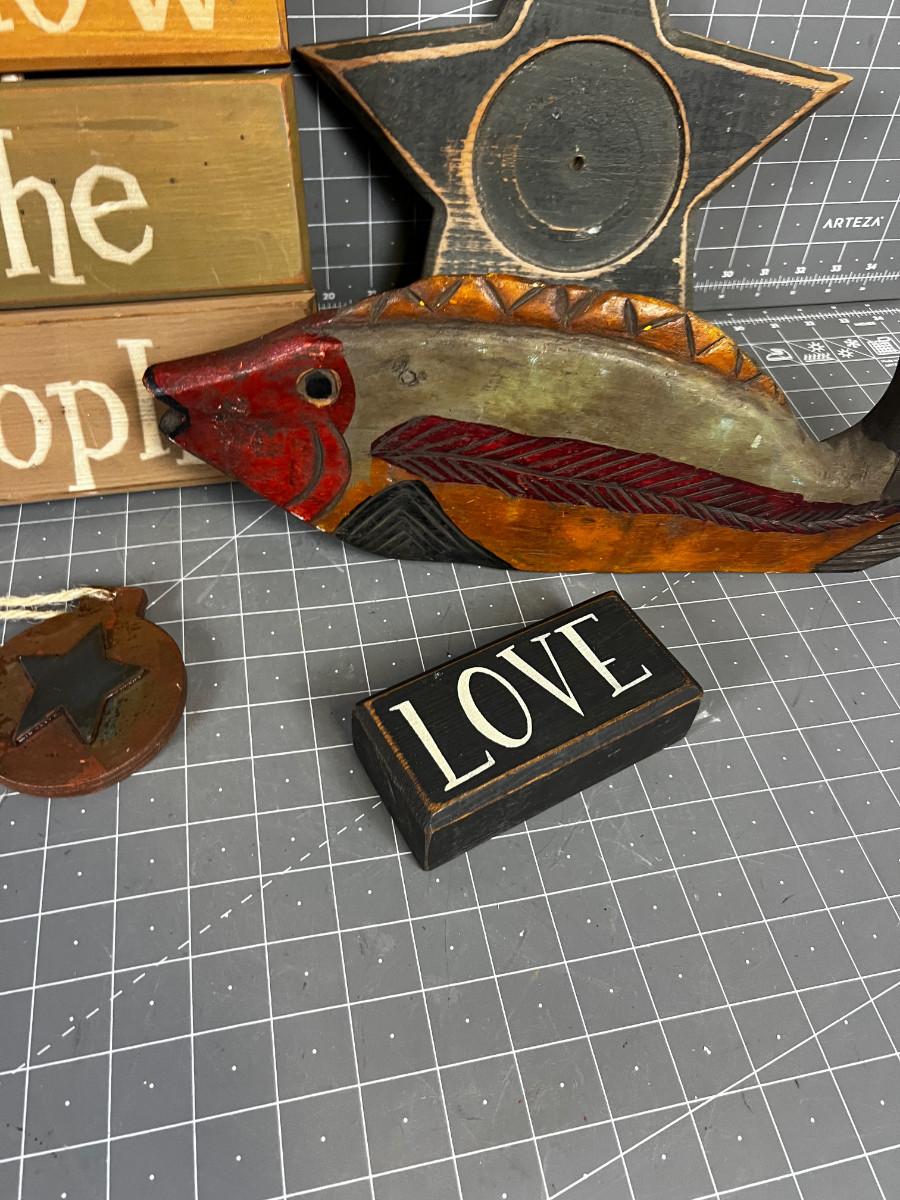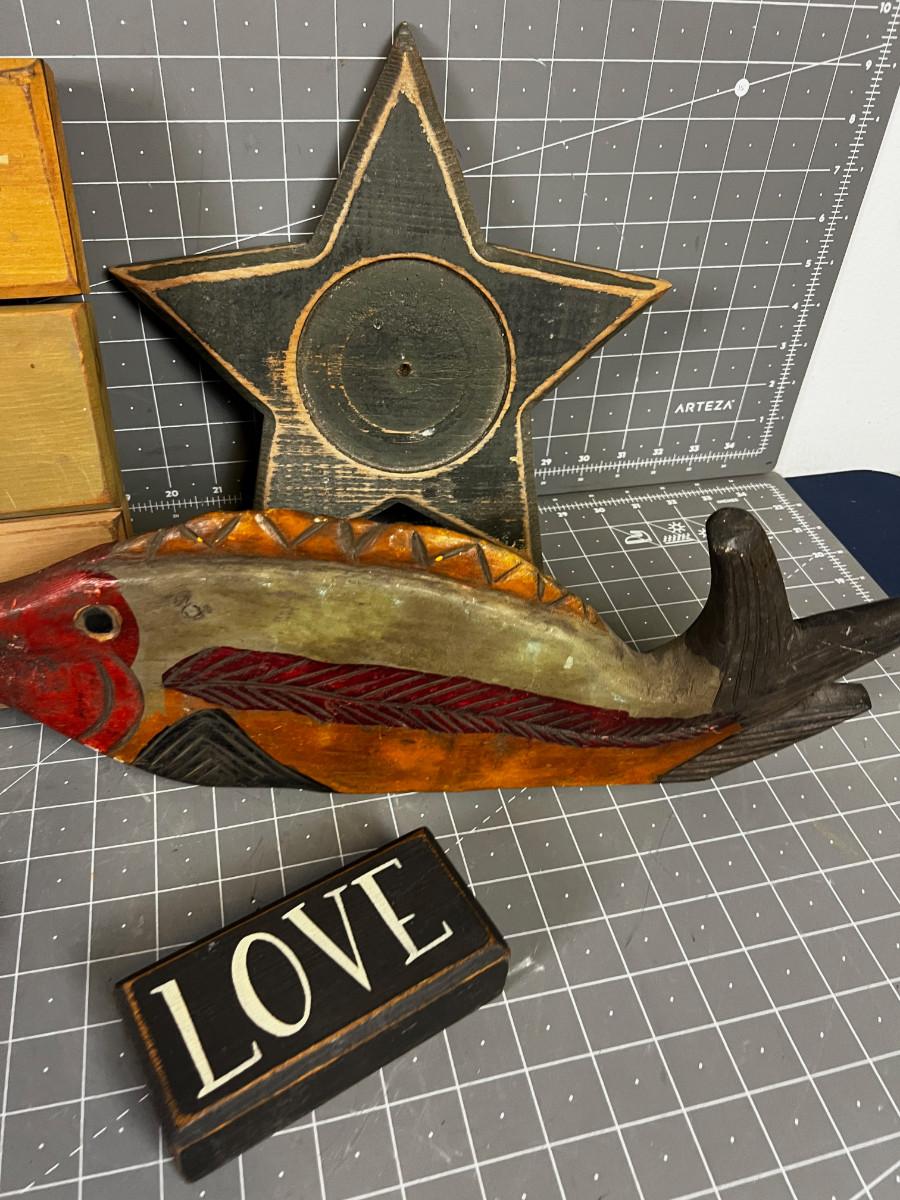 Wood Decor' Items (5 pieces; Fish, Star “🦆)