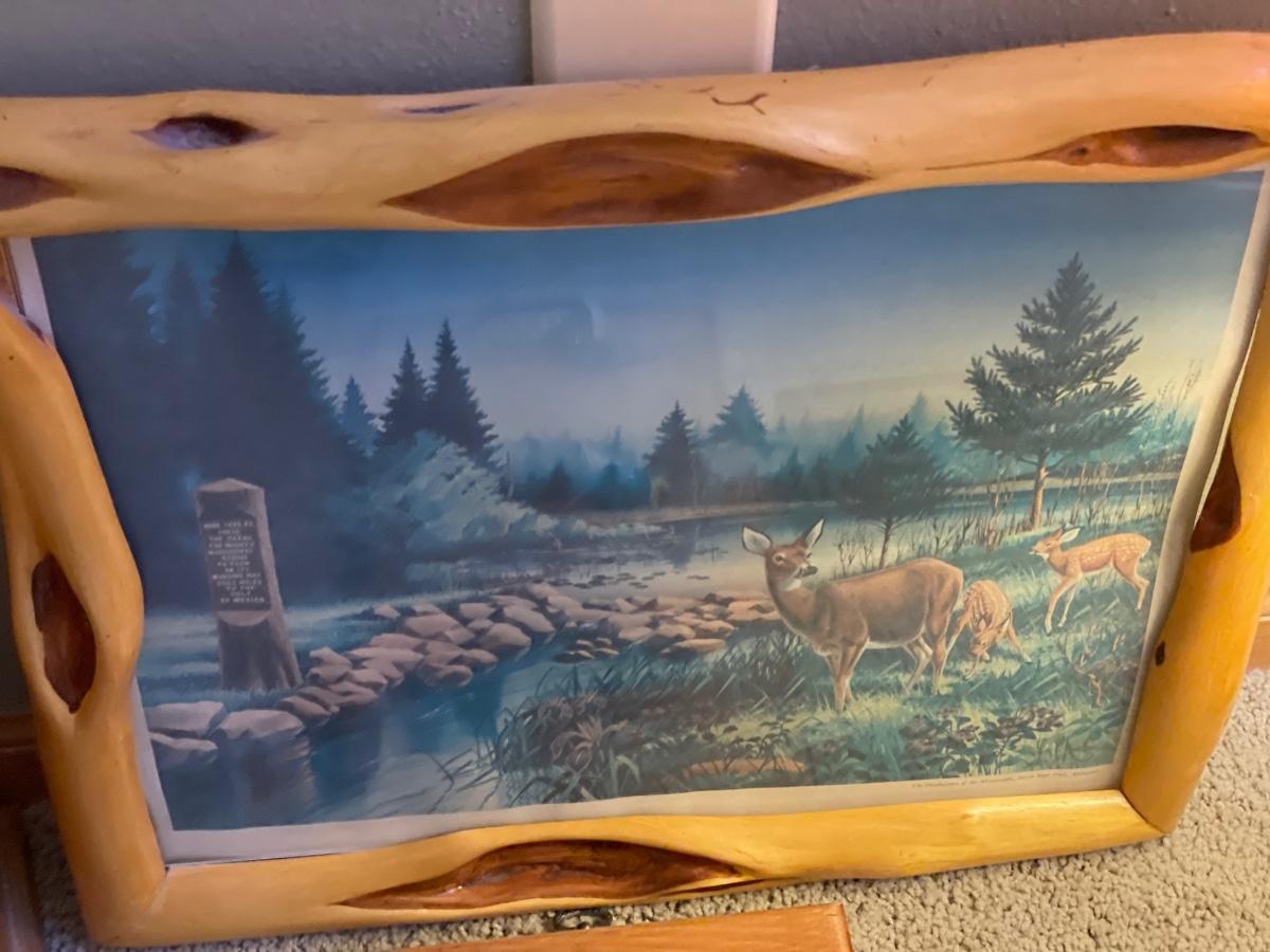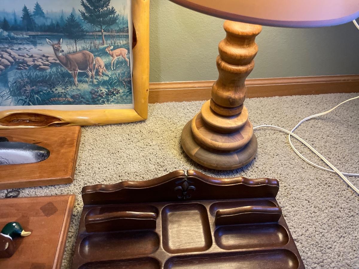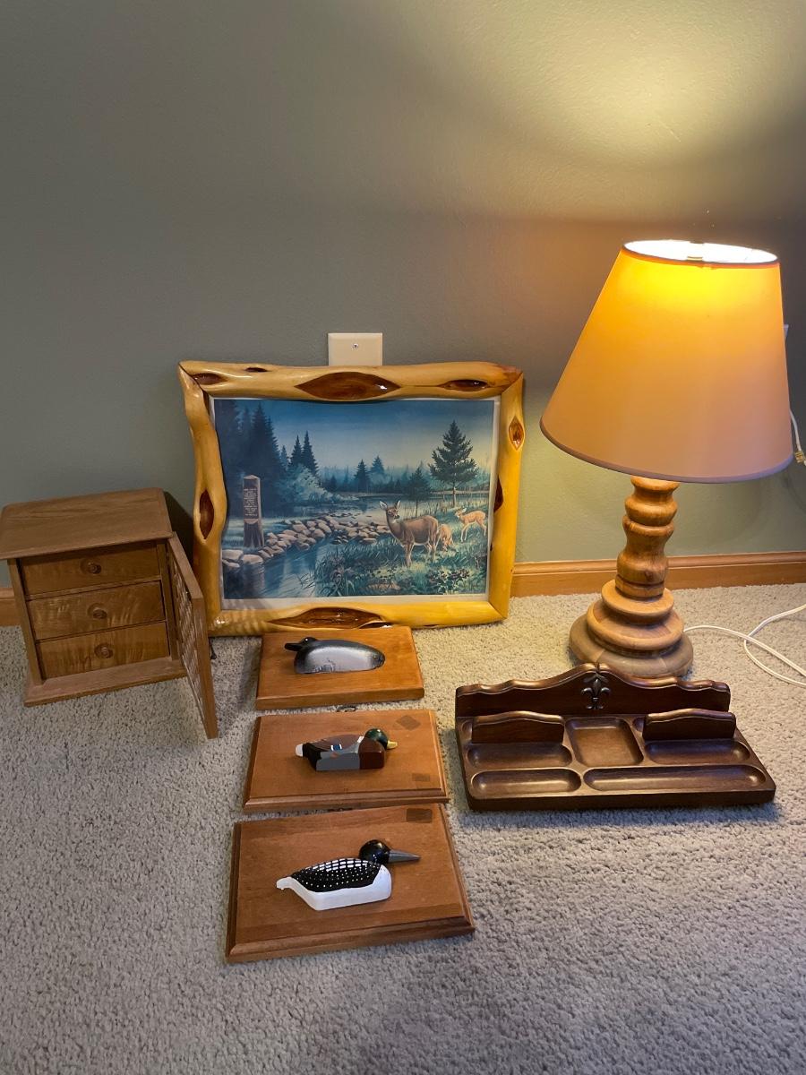 Lamp, framed pic, 3 duck pics, jewelry box and organizer tray