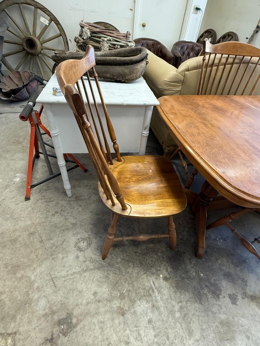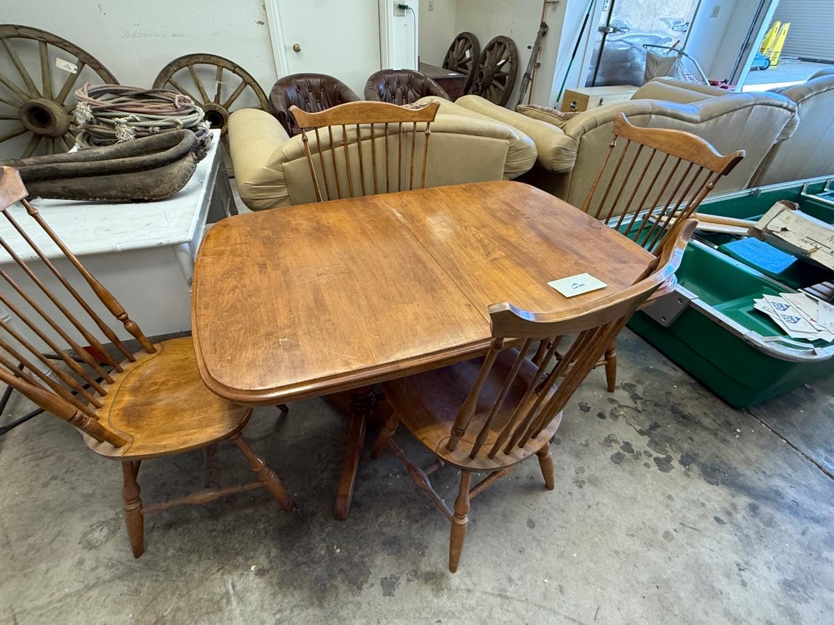 Vtg. Wood 35”w x 50”l Dining Set w/Leaf 4 Chairs