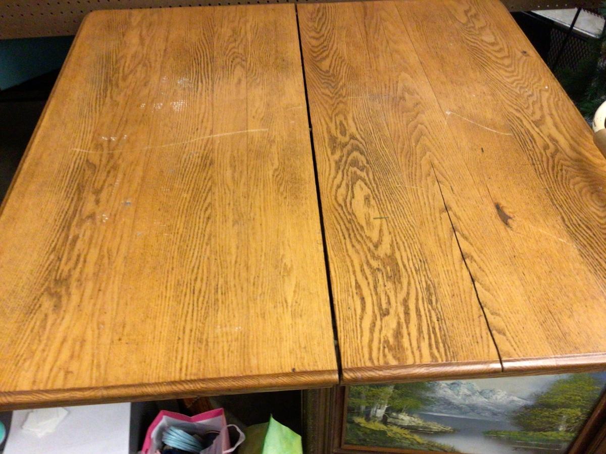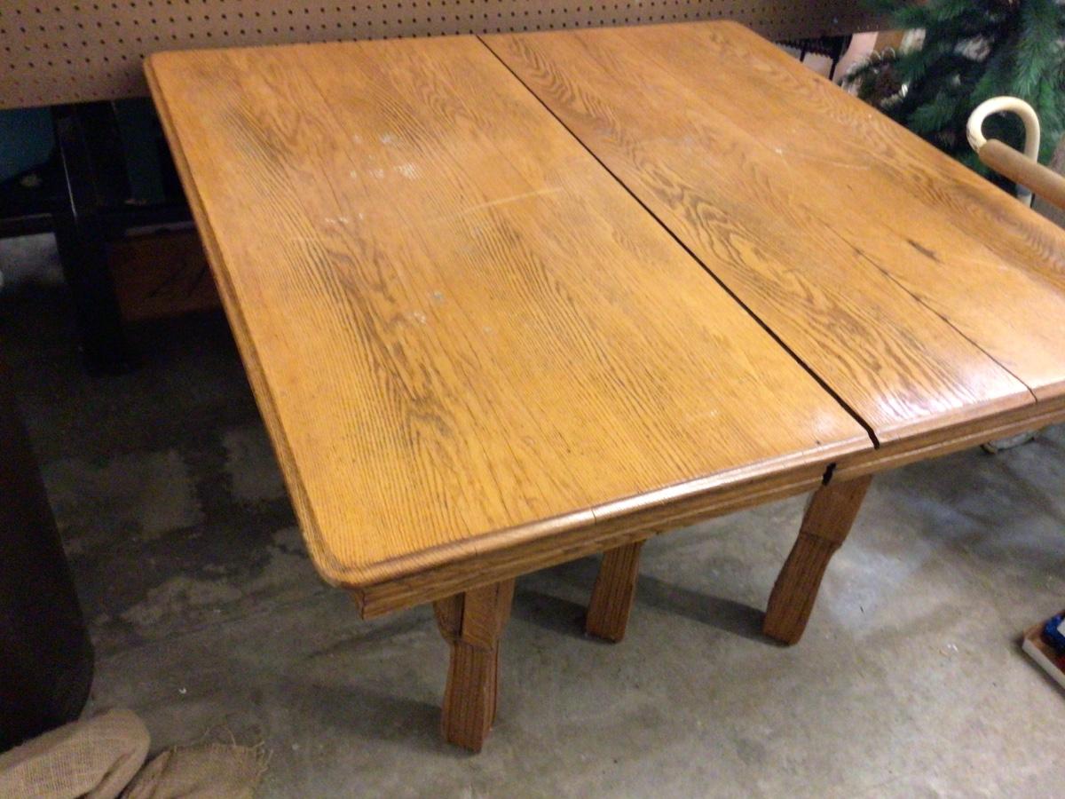 Wood table with three leaves. Needs a little TLC but very study. The leaves are in a handy create.