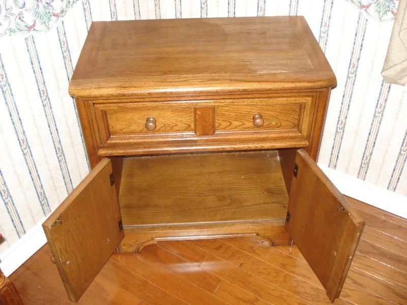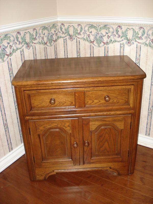 Wood 30" tall x 19" deep x 30" wide cabinet with one drawer and doors that open under that. Top has been in Sun and faded on part of it, a good rub down and oil would help, otherwise in very good condition.