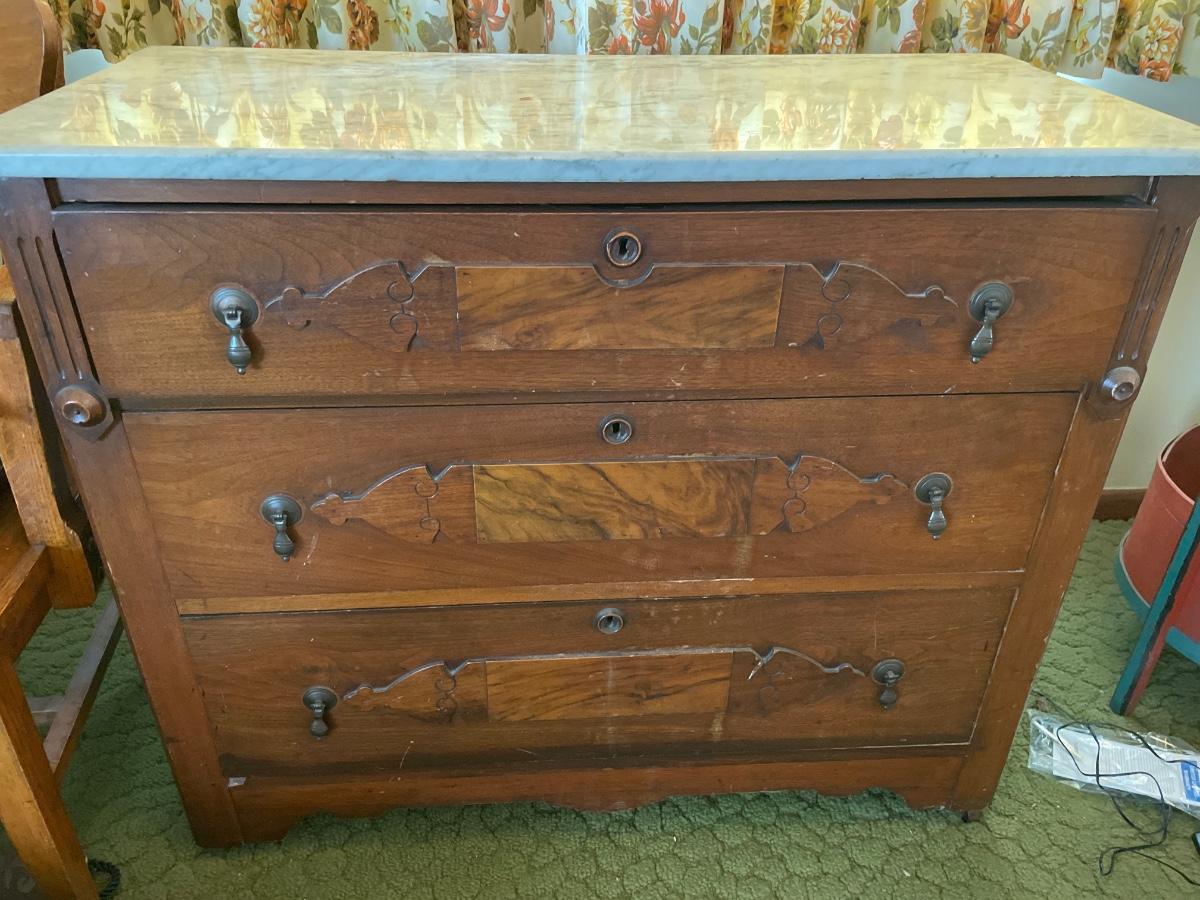 Wood dresser with marble top
