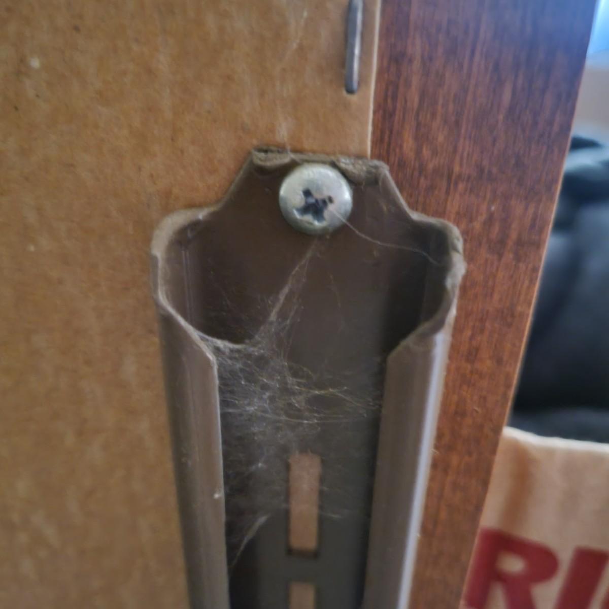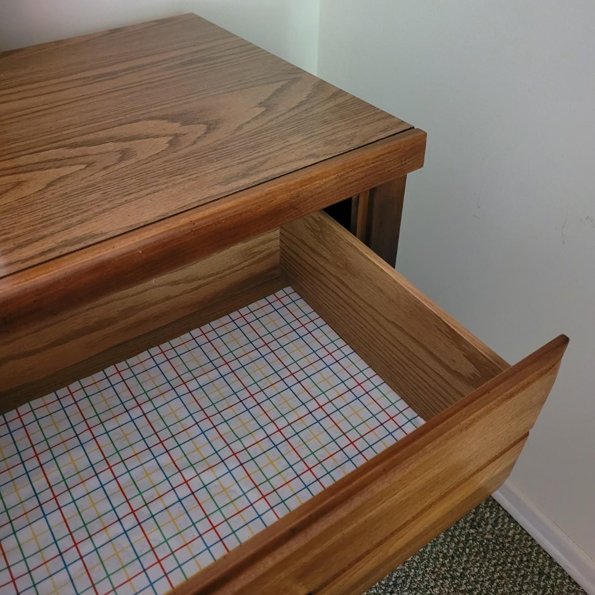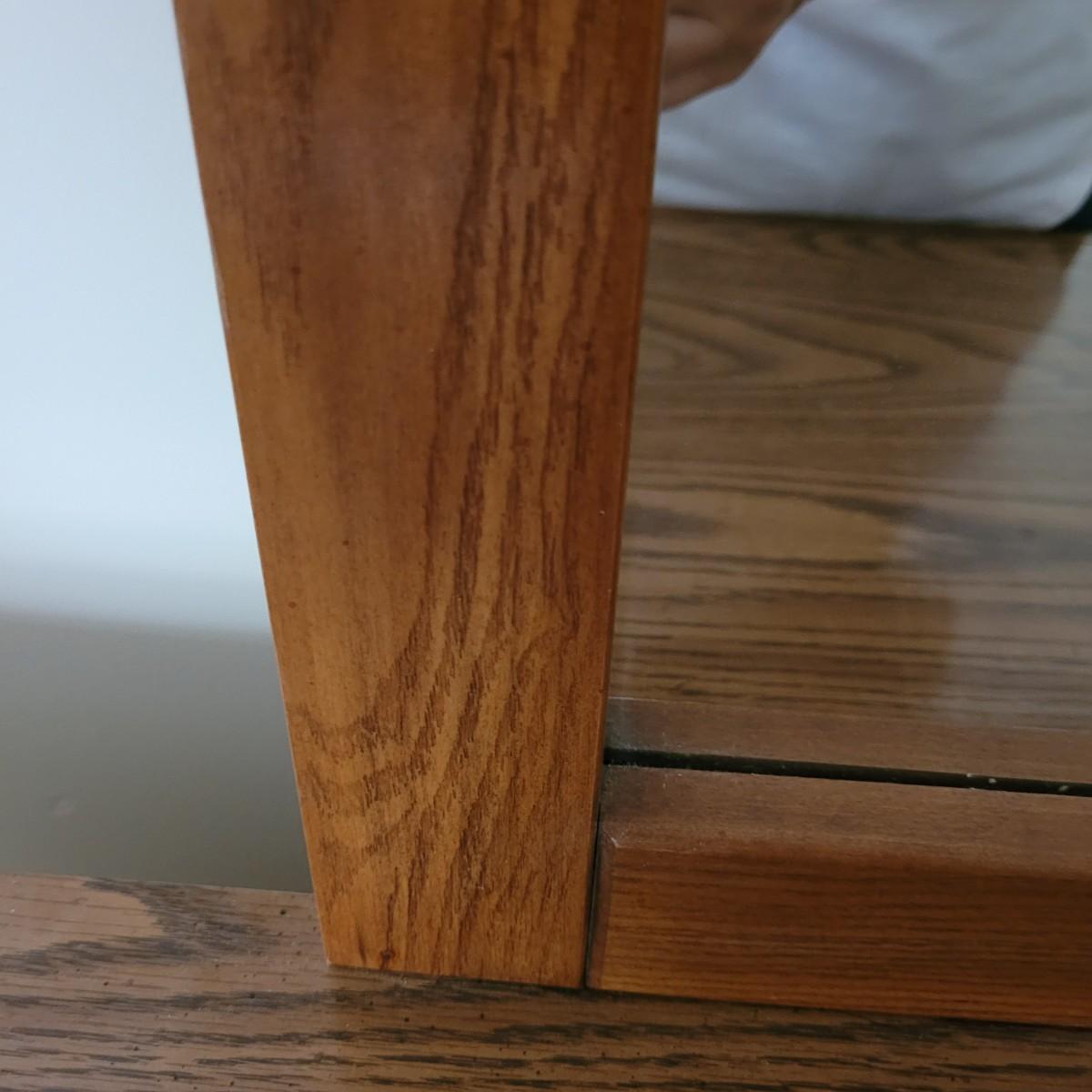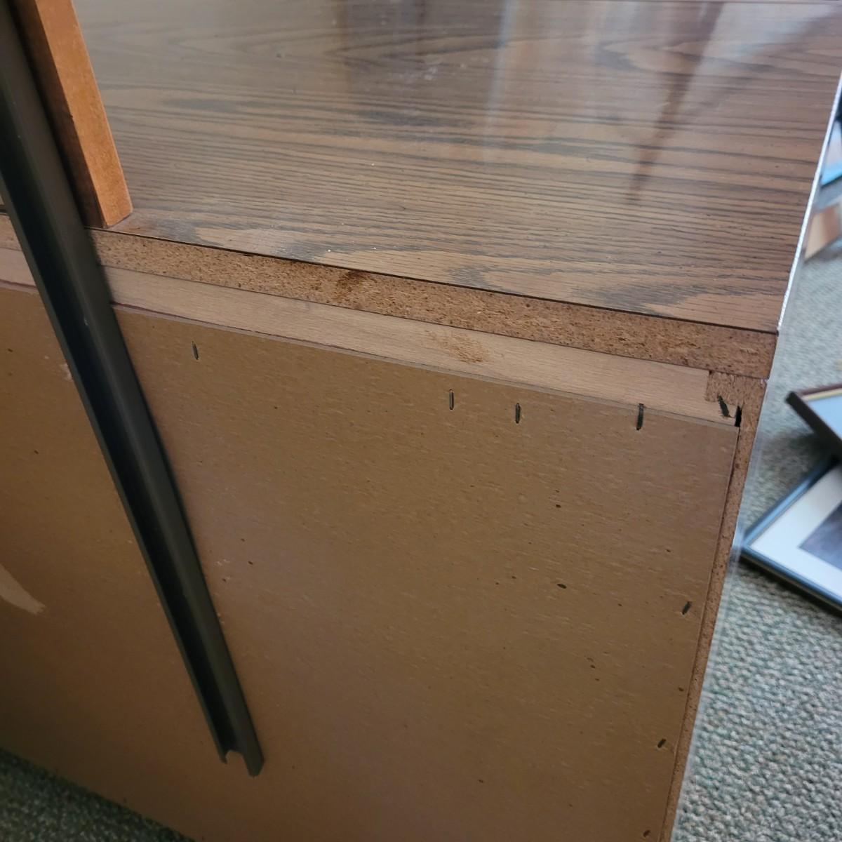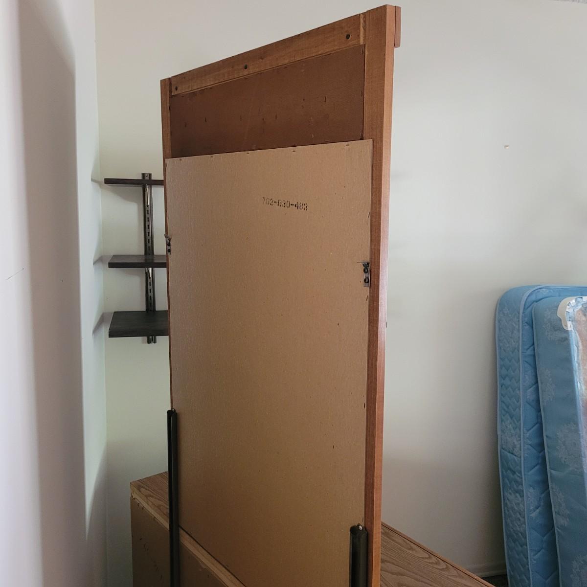 This six drawer wooden dresser has a veneer top and sides. Mirror is attached securely, but can be removedwith a philipshead screwdriver. This piece matches a Lea Furniture dresser in the auction, but doesn't have any identifying markers. Dresser measures approximately 52” x 18” x 30”H, mirror 30” x 45.5”, drawer height 5.5.”