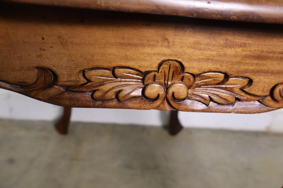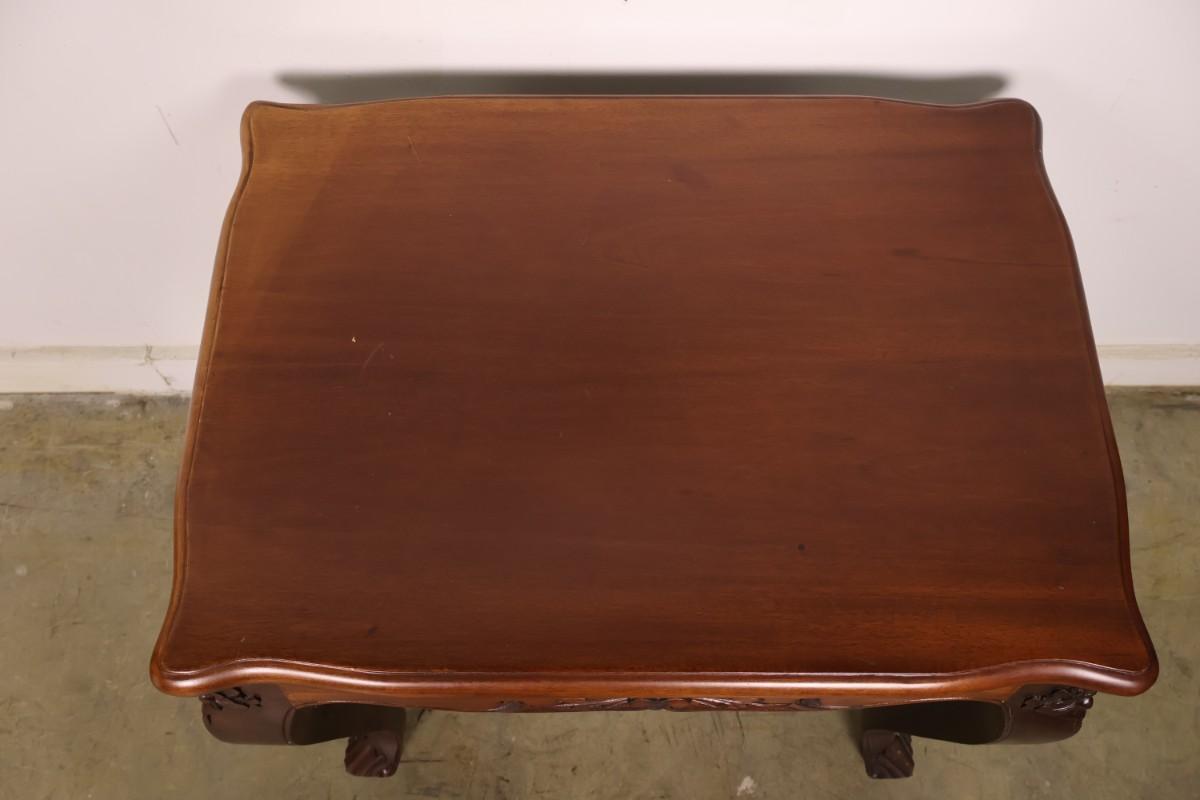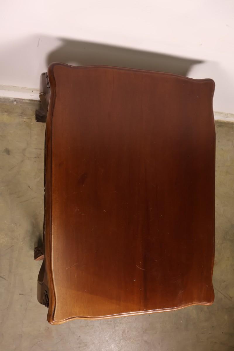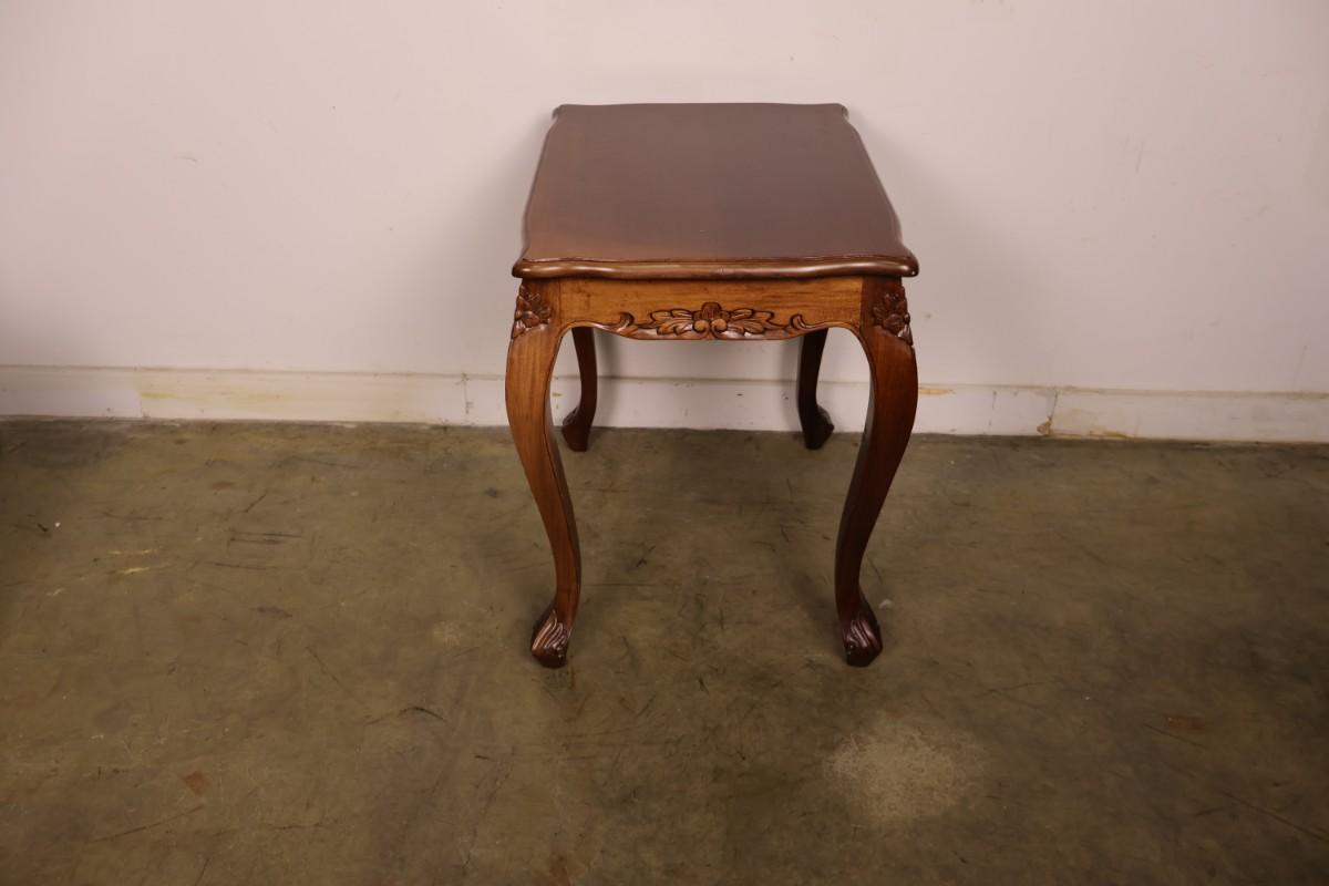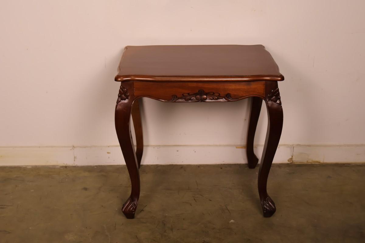 Wood end table with cabriolet legs. 23" x 17" x 23". Good condition with little signs of wear.