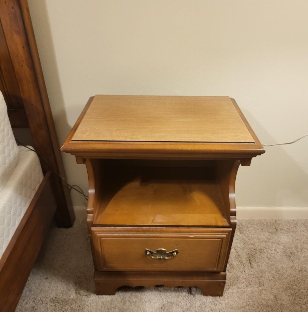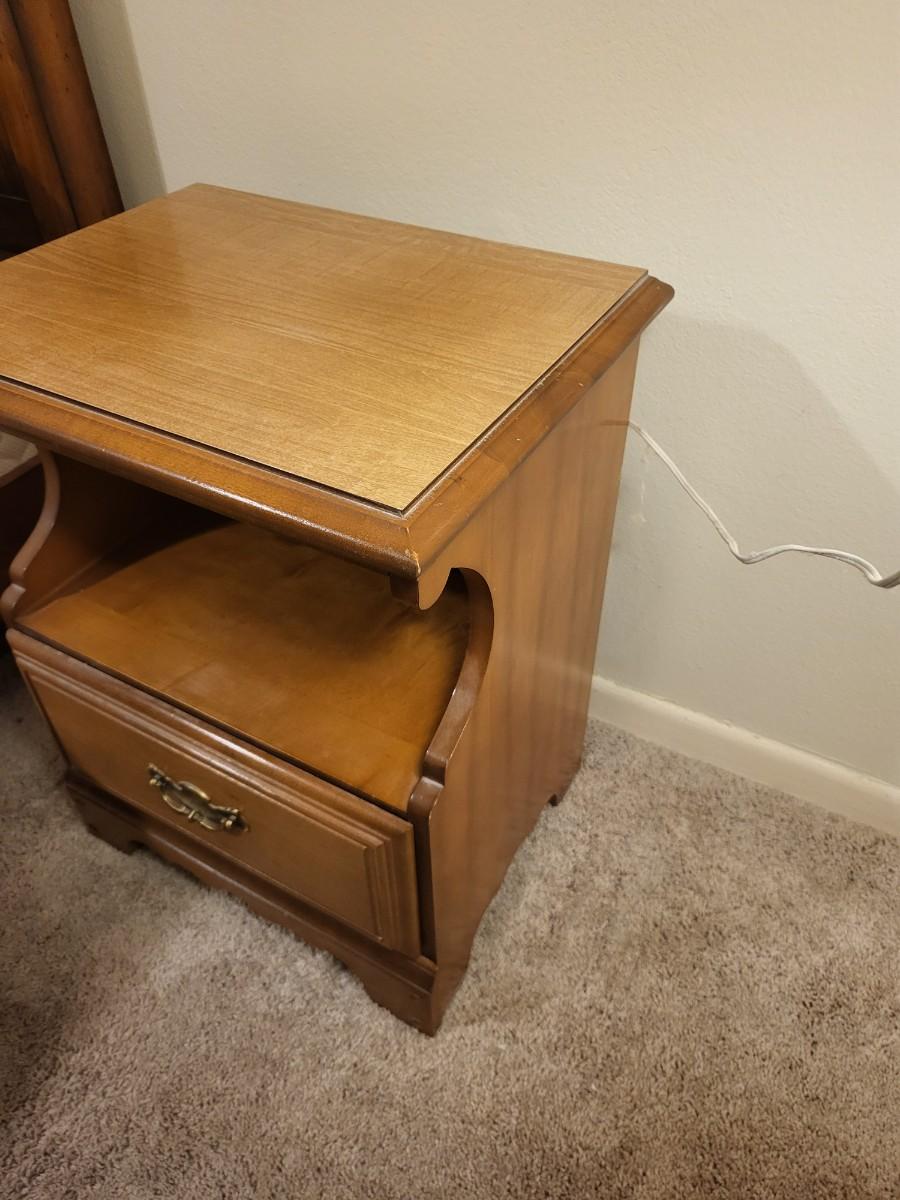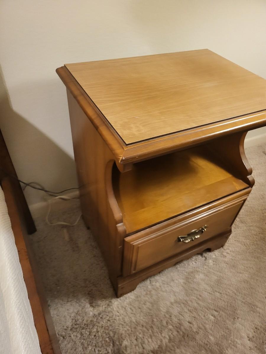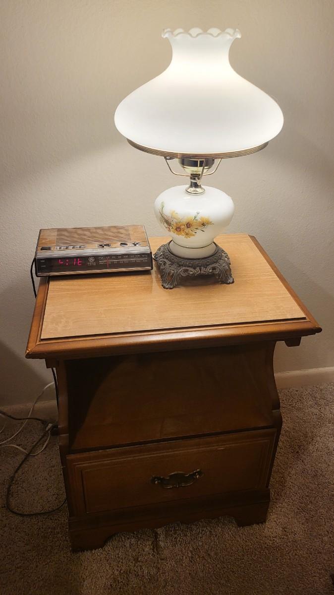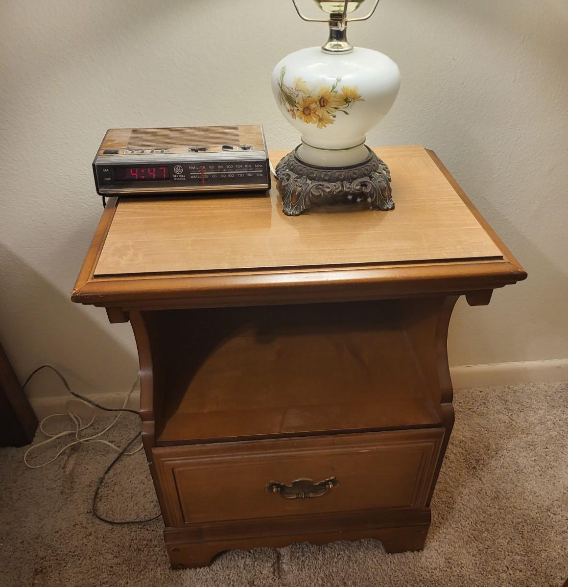 Wood End Table with Radio and Lamp