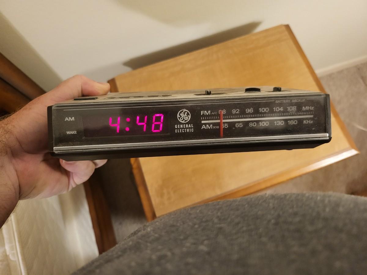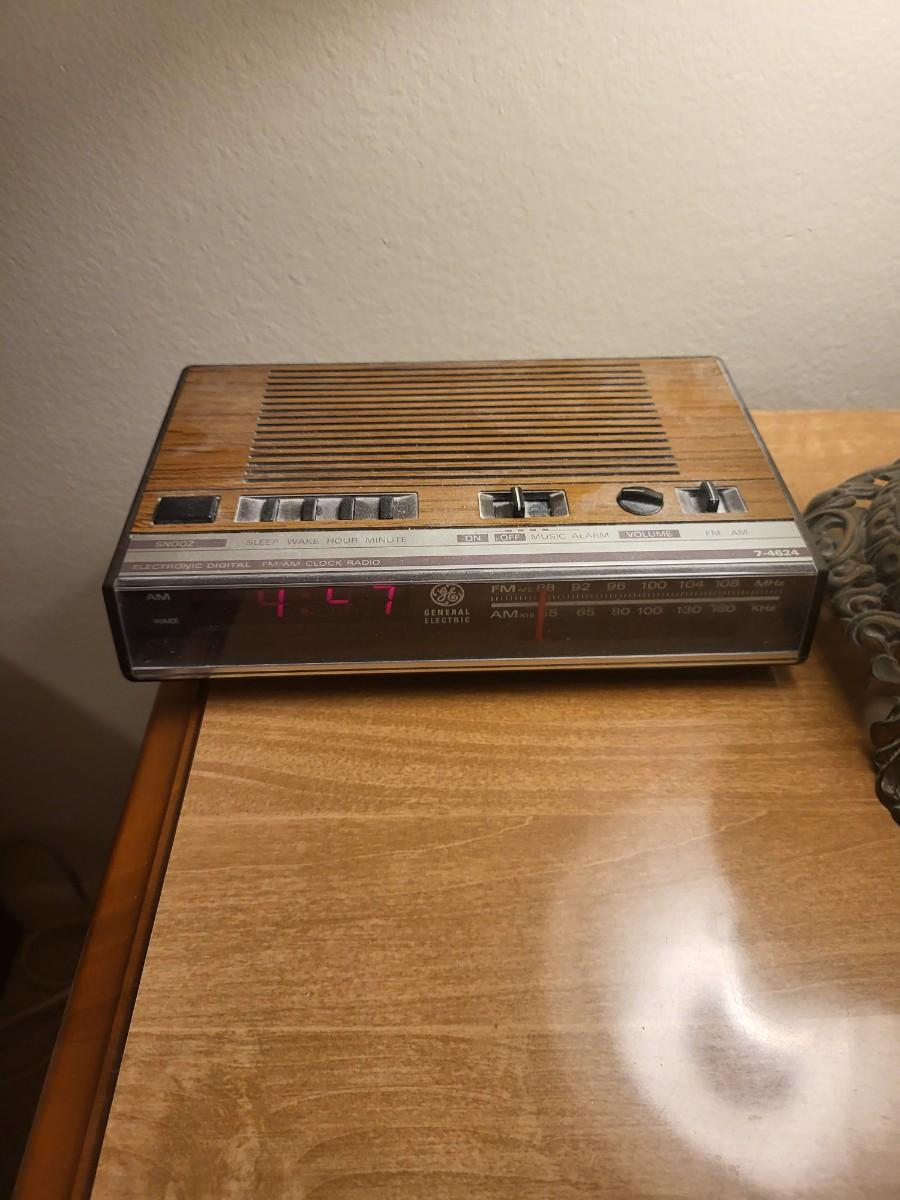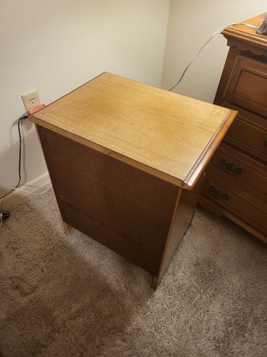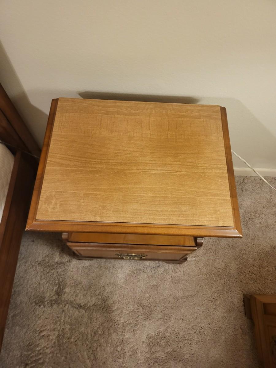 Wood End Table with Radio and Lamp