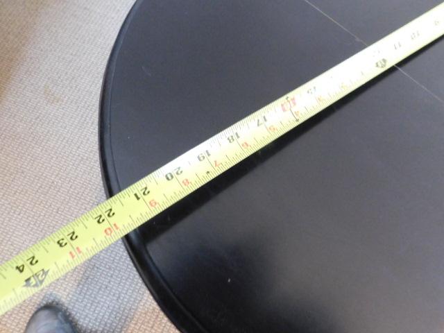 Wood Finish Black Lacquer Pedestal Table Choice Two 22"x25" has some wear to finish on surface as shown upstairs
